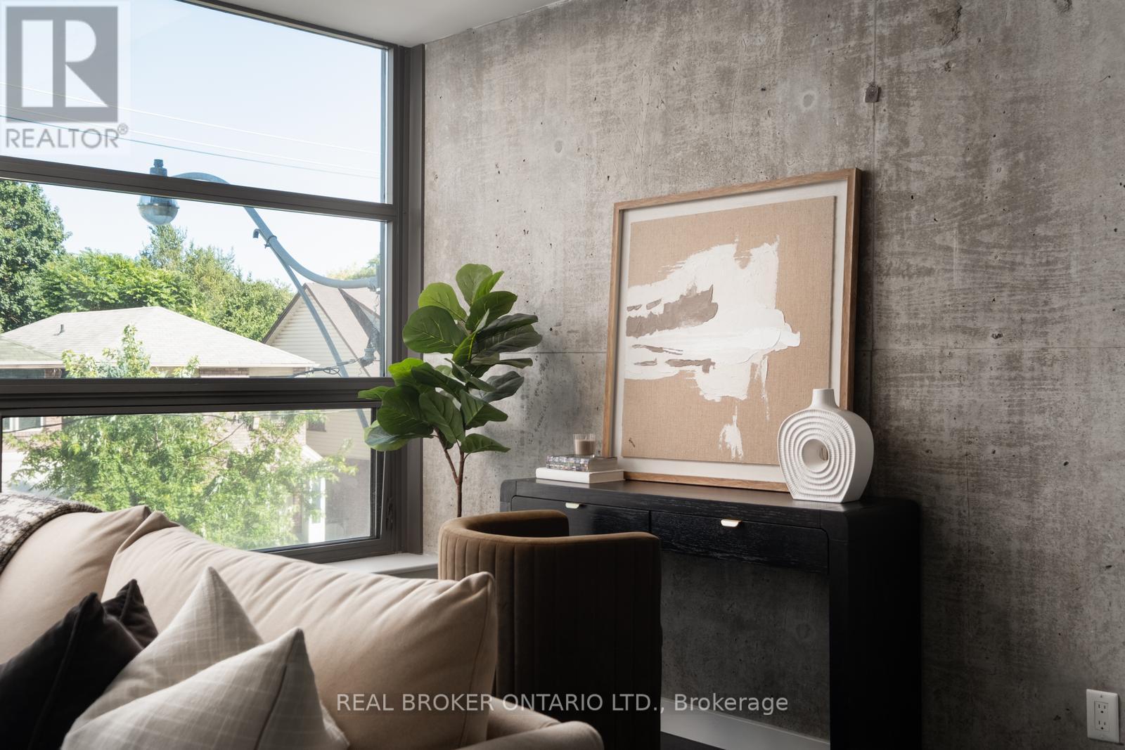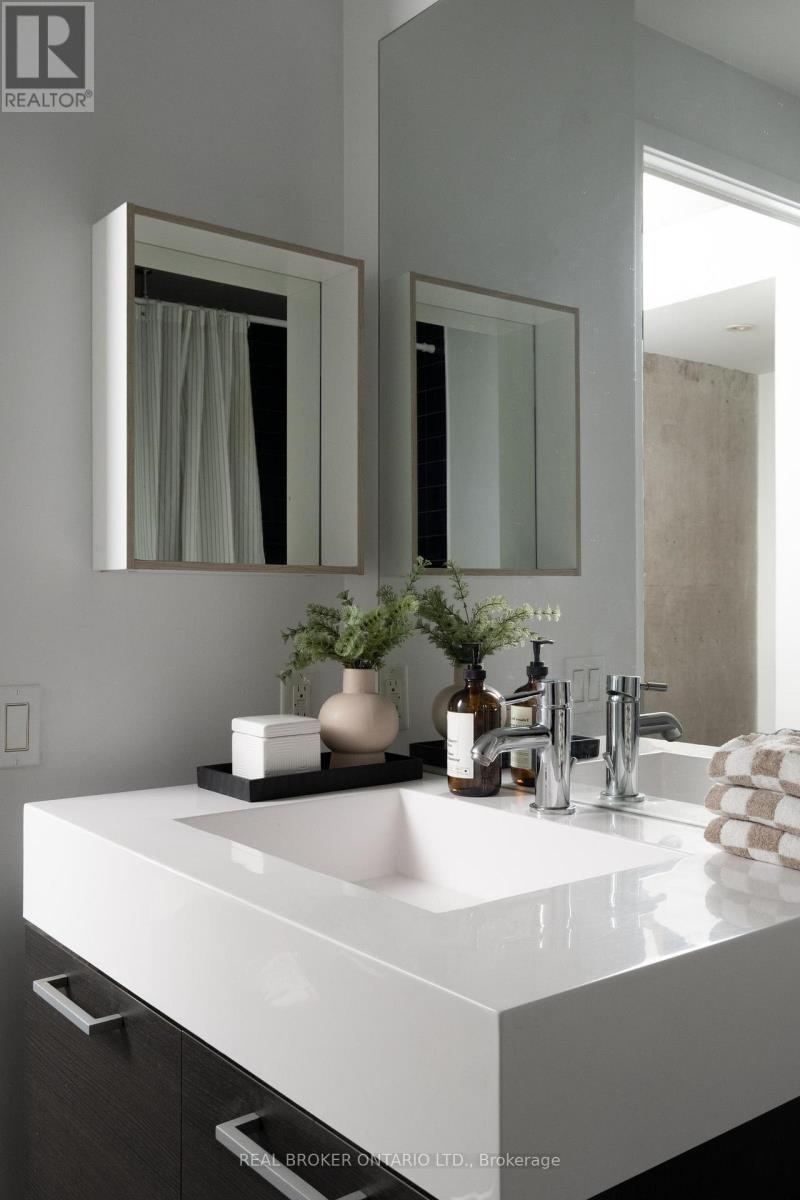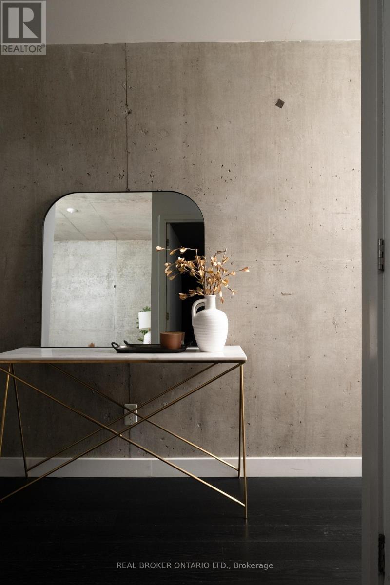 Welcome to The Ninety, a boutique loft residence where contemporary design meets authentic urban character. This thoughtfully designed 1+den suite showcases exposed concrete walls and ceilings, hardwood flooring, stainless steel appliances, and a seamless open-concept layout ideal for modern living.The generous den offers exceptional flexibility-perfect as a second bedroom, home office, or creative space-while expansive wall-to-wall windows flood the living area with natural light, enhancing the home's bright, airy atmosphere. Renowned as one of Toronto's most sought-after boutique loft buildings, The Ninety blends historic charm with modern finishes and offers desirable amenities including a landscaped courtyard terrace, party room, and concierge service. Ideally located in the heart of Riverside/Leslieville, you're just steps from Queen Street East's cafés, restaurants, shops, parks, and trails, with convenient access to transit and major highways. (id:4555)