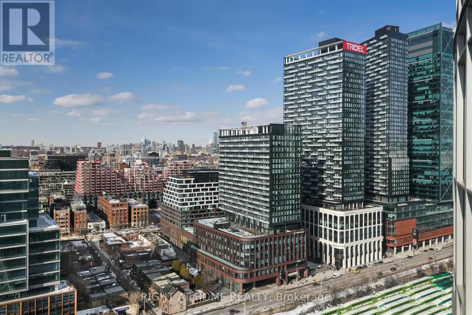 Stylish 1-bedroom condo in the heart of City Place featuring parking and a locker - a rare and valuable find in the area. Freshly painted and move-in ready, this suite offers a modern updated kitchen with quartz countertops, a sleek contemporary backsplash and stainless steel appliances. Floor-to-ceiling windows flood the space with natural light and lead to a private balcony showcasing stunning city and sunset views. Enjoy full access to the luxurious Parade Club with resort-style amenities including a 24-hour concierge, indoor pool, fully equipped gym, yoga studio, squash courts, ping-pong & billiards, theatre room, party room, rooftop terrace with BBQs, guest suites, kids' play area, and ample visitor parking. Unbeatable downtown location steps to the TTC, Sobeys, the Toronto Waterfront, Rogers Centre, CN Tower, Union Station, and PATH. Surrounded by some of downtown Toronto's best restaurants, cafés, and shops, with easy access to the Gardiner and nearby waterfront trails. Perfect for end users or investors seeking comfort, convenience, and vibrant urban living. (id:4555)