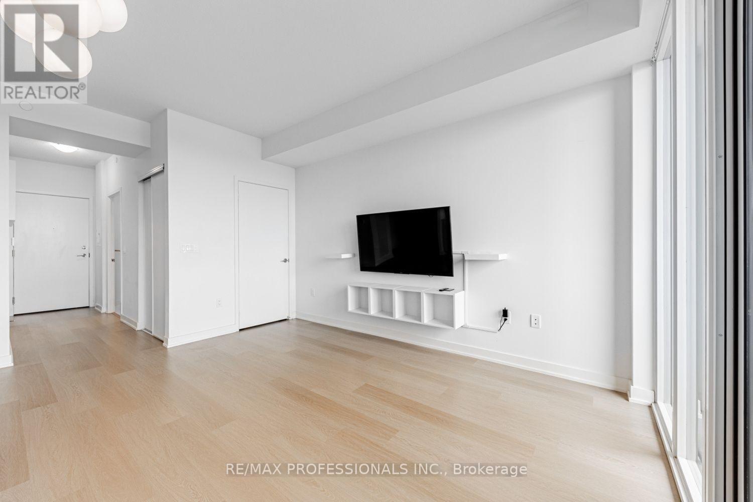 Boutique contemporary living at 859 West Condos. This thoughtfully designed 1+1 bedroom, 2 bathroom suite offers approximately 692 SF of interior space plus a private balcony with unobstructed south-facing views of the Toronto skyline and Lake Ontario. Sun-filled throughout the day, the layout is ideal for both everyday living and working from home. The versatile den easily functions as a home office or dining space, while two full bathrooms provide added privacy and flexibility. Nine-foot ceilings enhance the open feel, complemented by wide-plank flooring, sleek quartz countertops, and stainless steel appliances in a modern, neutral palette. Residents enjoy a full suite of upscale amenities including a fully equipped gym, yoga studio, lounge with designer kitchen and private dining area, media and games room with wet bar and billiards, children's play area, 24/7 concierge, and a beautifully landscaped courtyard with BBQs, outdoor cabanas, and lounge areas. Perfectly positioned in the heart of The Queensway, this location offers exceptional convenience. Steps to grocery stores, cafes, restaurants, Cineplex, Tim Hortons, Starbucks, Costco, and more. The waterfront is just minutes away, with quick access to TTC, Mimico GO Station, the Gardiner Expressway, Highway 427, Sherway Gardens, Pearson Airport, and downtown Toronto. Includes one underground parking space and one locker. (id:4555)