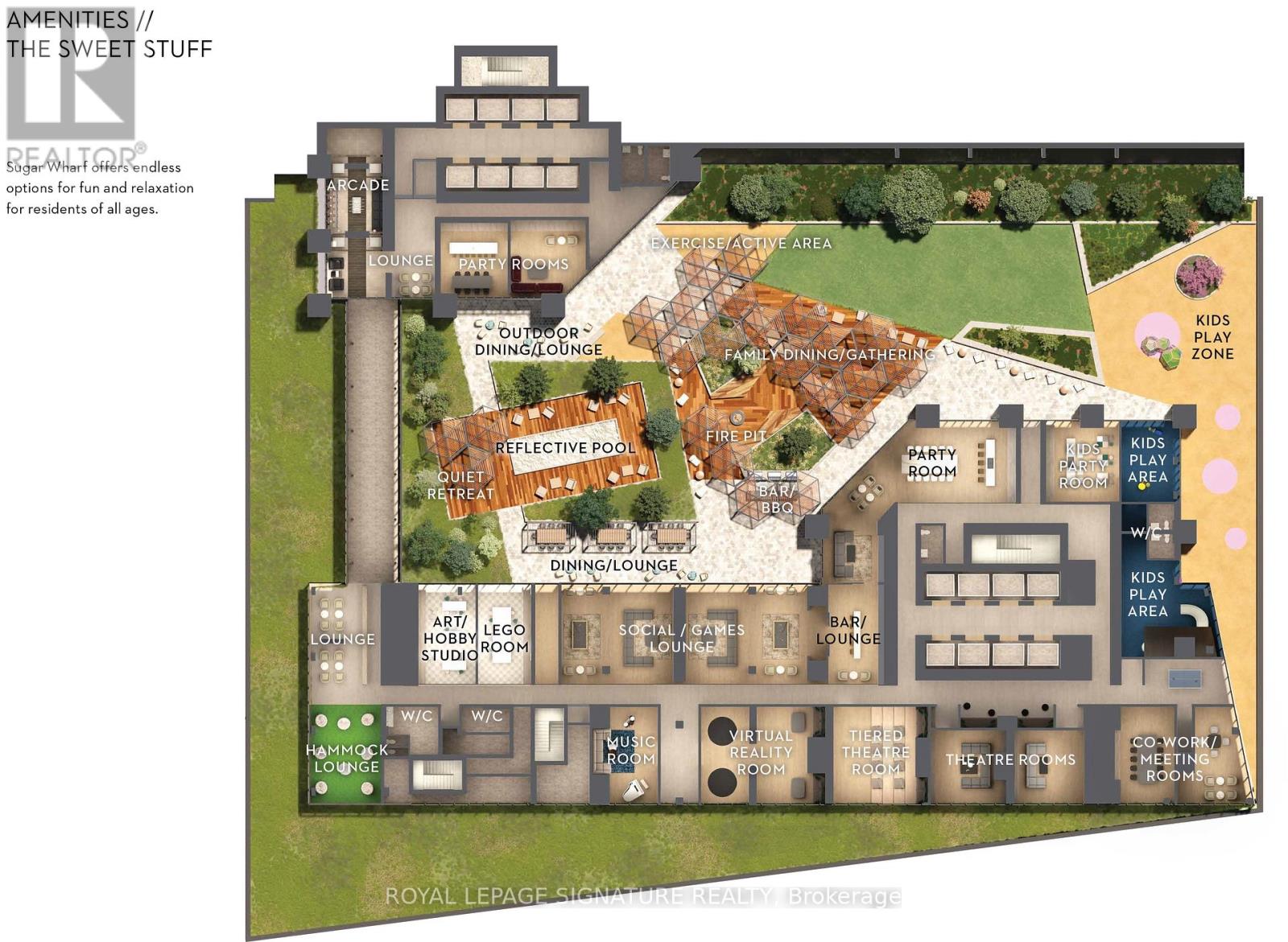 The Sugar Wharf Residences - quality built Menkes building with arguably the best amenities in the city core. At over 800 total square feet, this 1+den condo is perfect for roommates or a small family. With a spacious and functional floor plan, this unit is part of the upgraded collection with luxury finishes - Miele appliances, integrated kitchen cabinetry, and engineered wood flooring throughout. Unobstructed city views from the full length balcony. The primary bedroom is bright and comfortable with a full 4-piece ensuite bathroom. The oversized den is tucked away for privacy and can easily function as a second bedroom/nursery/office. The second bathroom is a 3-piece with a shower and extra storage space. Ultra convenient location close to Gardiner/DVP, Union Station, Harbourfront, Sugar Beach, Loblaws, Farm Boy, & LCBO flagship retail store at doorstep.Building amenities include 24hr concierge, indoor pool, basketball court, and state of the art fitness facilities (studios, cardio room, weight room). Exceptional entertainment facilities include a party room, bar/lounge, outdoor dining, theatre, art/lego/music/VR rooms, kids play area etc! (id:4555)