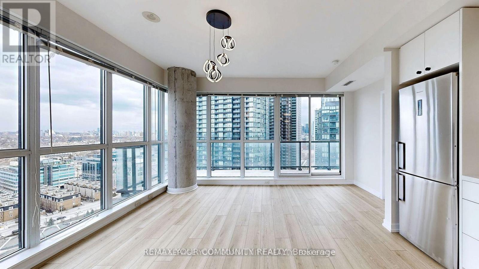 This condo unit and building amenities will absolutely impress you! Freshly painted, sun-drenched comer unit, 777 sq ft, offers 2 spacious bedrooms and 2 full bathrooms, with a smart split-bedroom layout that provides both comfort and privacy. The open-concept living and dining area features wall-to-wall, floor-to-ceiling windows that flood the space with natural light and offer unobstructed north and northeast views of Toronto's iconic skyline. Step outside to your private balcony, perfect for enjoying your morning coffee or relaxing after a long day. The renovated kitchen is a true highlight, complete with a brand-new stove, modern countertop, a stylish backsplash, and an upgraded faucet. Throughout the unit, new vinyl plank flooring and lighting adds warmth and modern appeal. The primary bedroom is a true retreat with a walk-in closet and ensuite bathroom featuring a glass stand-up shower. The second bedroom is equally spacious and located next to the second full bathroom, making it ideal for guests or roommates. This unit comes with a parking spot and locker, offering exceptional value in a sought-after neighbourhood. Residents of the building enjoy a wide array of luxury amenities, including a fully equipped gym, relaxing steam rooms, a seasonal outdoor lap pool and jacuzzi, an aqua-massage centre, media and games rooms, stylish party and meeting rooms, guest suites, a rooftop terrace with BBQs, and 24-hour concierge service. Located just steps from Metro, coffee shops, restaurants, Liberty Park, and the waterfront, this condo places you in one of Toronto's most vibrant communities. With TTC streetcars, Exhibition GO Station, boutique fitness studios, and scenic walking trails all nearby, convenience is at your doorstep. Whether you're looking to entertain, relax, or explore, this condo has it all. Move in and experience the best of Liberty Village living. (id:4555)