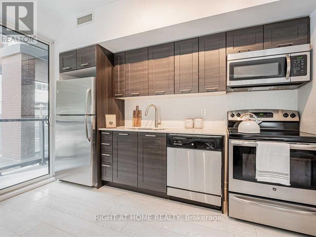 Incredible Downtown Living at The Yards. Move in ready. 1 Bed & 1 Bath suite. Features Modern Finishes include Laminate Throughout , S/S Appliances, Large Patio Size Balcony with two Walkouts, Ensuit Laundry, Interior Storage/Den, Rollup Blinds, Sliding Mirror Door Closets. Building Features Excellent Amenities.24 Hrs Concierge. Gym, Sauna, Theatre room, Party room, Rooftop Terrace with BBQ. Visitors Parking. Guest Suites. Steps To The Lake, Loblaws & LCBO, & TTC at Your Doorstep. Best Restaurants & More. ( Furnished Option Available At Additional Cost ) (id:4555)