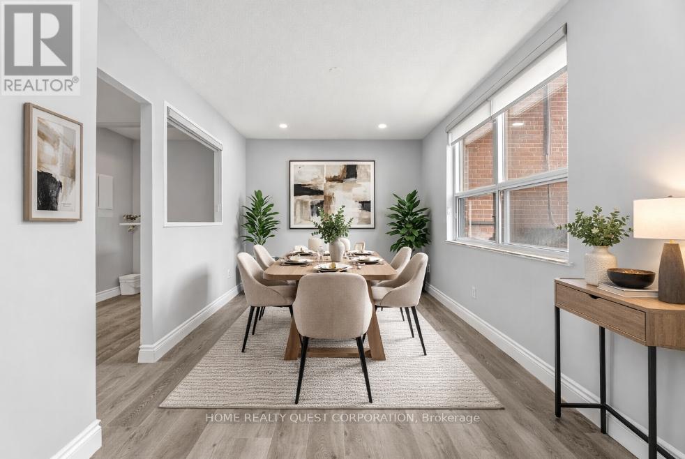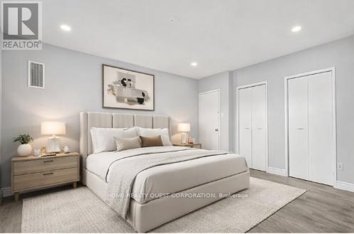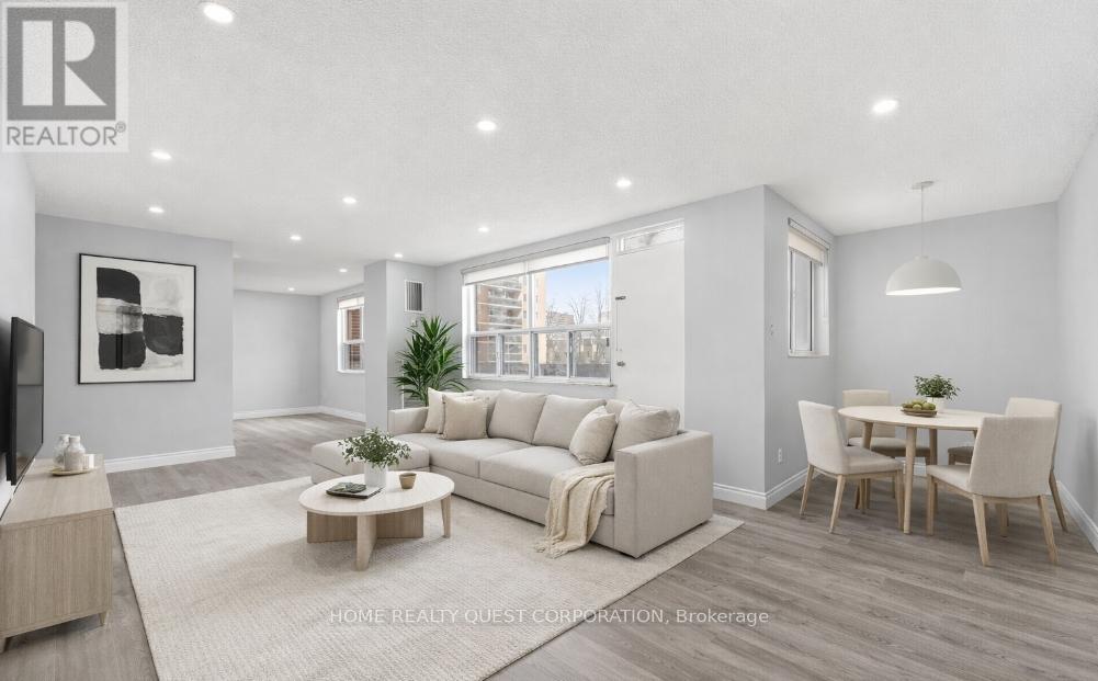 Rare 1,710 sq. ft. two-level condo offering the space of a home with the ease of condo living!This bright and spacious 3-bedroom, 2 full bath layout features an open-concept main floor, ensuite laundry, and oversized bedrooms rarely found in condo units.Professionally painted (February 2026), with brand new vinyl flooring (February 2026) and New recessed lighting throughout - Completely move-in ready. Enjoy two private entrances, a private balcony with beautiful views, and a highly functional layout ideal for large families or shared living. Heat, A/C, water and parking included for exceptional value. Located in a quiet, family-oriented building steps to parks, schools, shopping, hospital, Humber College, and the newly opened Finch West LRT. Includes 1 underground parking space and 1 large storage locker. (id:4555)