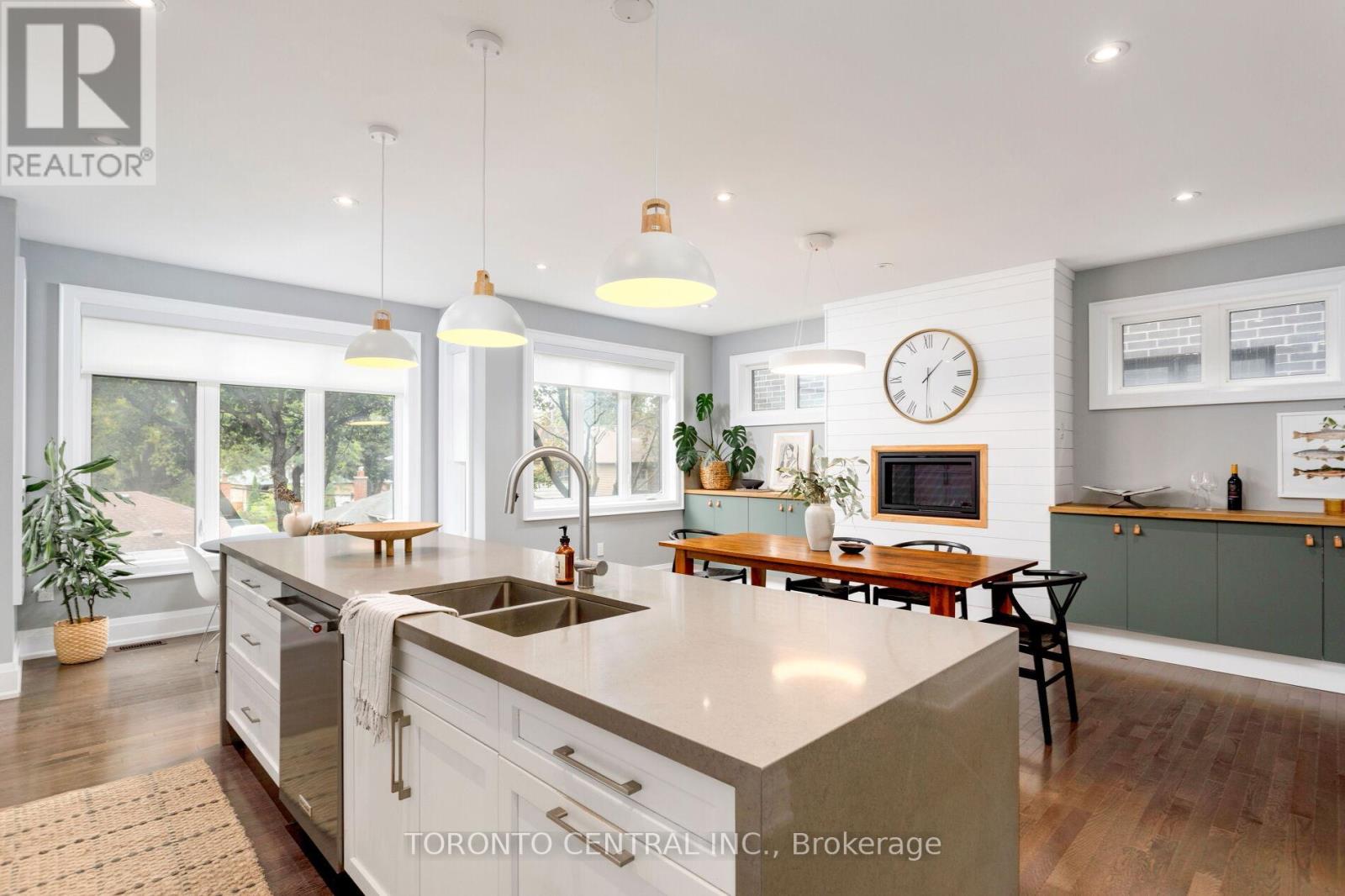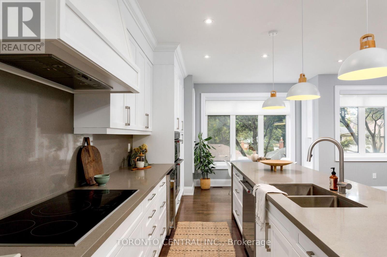 Welcome to 9 Chimney Swift Court, nestled in one of Etobicoke's most sought-after communities. This beautifully upgraded 3-storey detached Minto home offers approximately 3,500 sq. ft. of refined living space, featuring 5 bedrooms and 4 bathrooms, situated on a premium 30' 118' lot. A rare and desirable offering in the neighbourhood, the home perfectly combines luxury, functionality, and thoughtful design. Step into a grand foyer with soaring 15-ft ceilings, setting the tone for the homes modern sophistication. The main level features 9-ft ceilings, hardwood floors, and a custom KitchenAid appliance package including an integrated cooktop, built-in wine fridge, and quartz countertops that extend seamlessly into a dramatic fireplace feature wall. The open-concept layout achieves a perfect balance between integrated living and well-defined spaces. Upstairs, the primary suite impresses with multiple walk-in closets and a spa-inspired ensuite complete with a soaker tub and oversized shower. Two additional bedrooms share a 3-piece bathroom, with direct access from the spacious second bedroom. Upper-level laundry adds everyday convenience. The ground level includes a large bedroom with ensuite bath, an oversized mudroom, and a bright family room with a walk-out to a private backyard patio, ideal for relaxing or entertaining. The partially finished lower level adds even more versatility, featuring a wet bar, an office/bedroom, and an additional optional bedroom, den, office, or gym perfect for guests, recreation, or work-from-home needs. Additional highlights include an HRV system, tankless water heater, and parking for 3 cars (1in the garage + 2 on the driveway). Located within the coveted St. Gregory Catholic and Rosethorn Junior School districts, this turnkey, move-in-ready home offers every modern upgrade in a premium, family-friendly neighbourhood. Don't miss this rare opportunity! (id:4555)