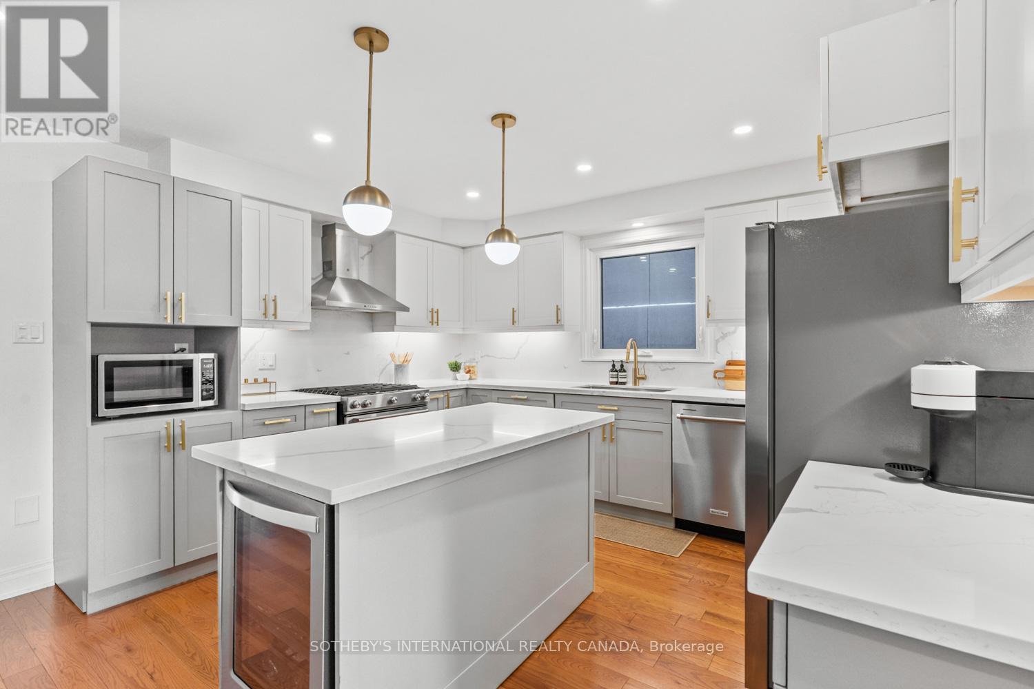 In a market where detached options at this level are increasingly scarce, this home delivers what matters most: sunlight, parking, and functional family space without compromise. Set on a 20.33 x 135 ft lot with a south-facing rear yard, it offers over 2,000 sq ft of total living space across three well-defined levels. The main floor unfolds with intention. A large-scale renovation in 2021 upgraded the kitchen and key interior finishes, centering the space around a substantial island ideal for the home chef and equally suited to gathering. It opens seamlessly into the rear family room with walk-out to the garden, while the separate living and dining room allows flexibility for daily life and larger occasions alike. Upstairs, three well-proportioned bedrooms include a primary suite with a dedicated ensuite bathroom and a walk-in closet. The additional bedrooms are served by a hall bathroom of their own, a meaningful distinction in this segment. A skylight above the upper landing introduces natural light that can be felt upon entry, drawing sunlight down the staircase and into the interior throughout the day. The finished lower level provides further versatility with a recreation room, four-piece bathroom, laundry, and direct garage access. Built in 1986 and upgraded where it counts, with four-car parking and side yard access, this is a measured entry into long-term detached ownership - well suited to the next chapter. (id:4555)