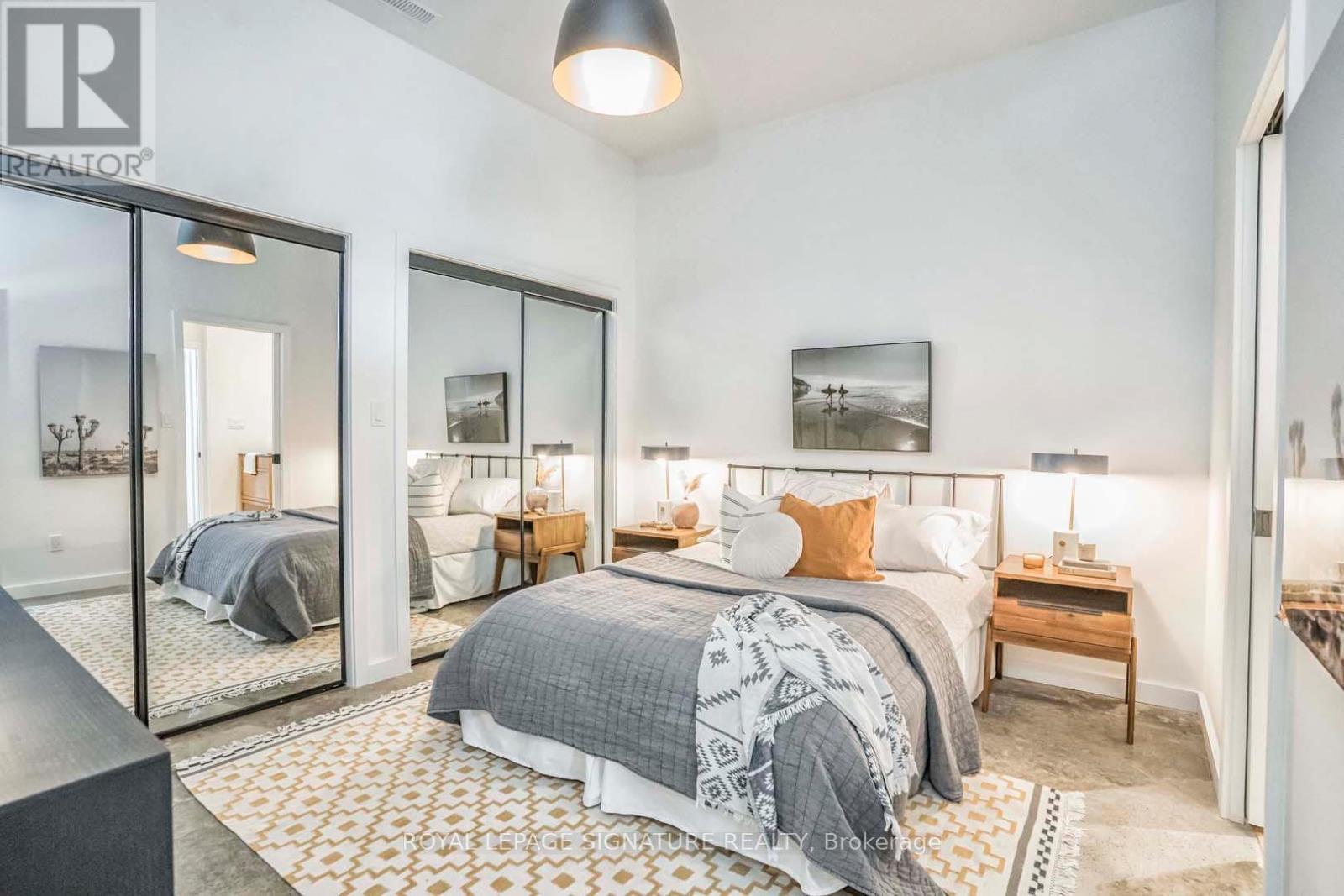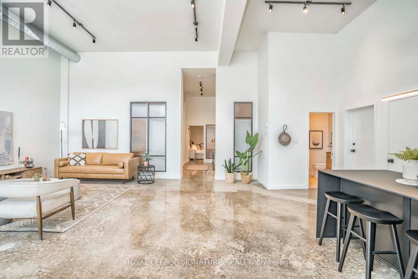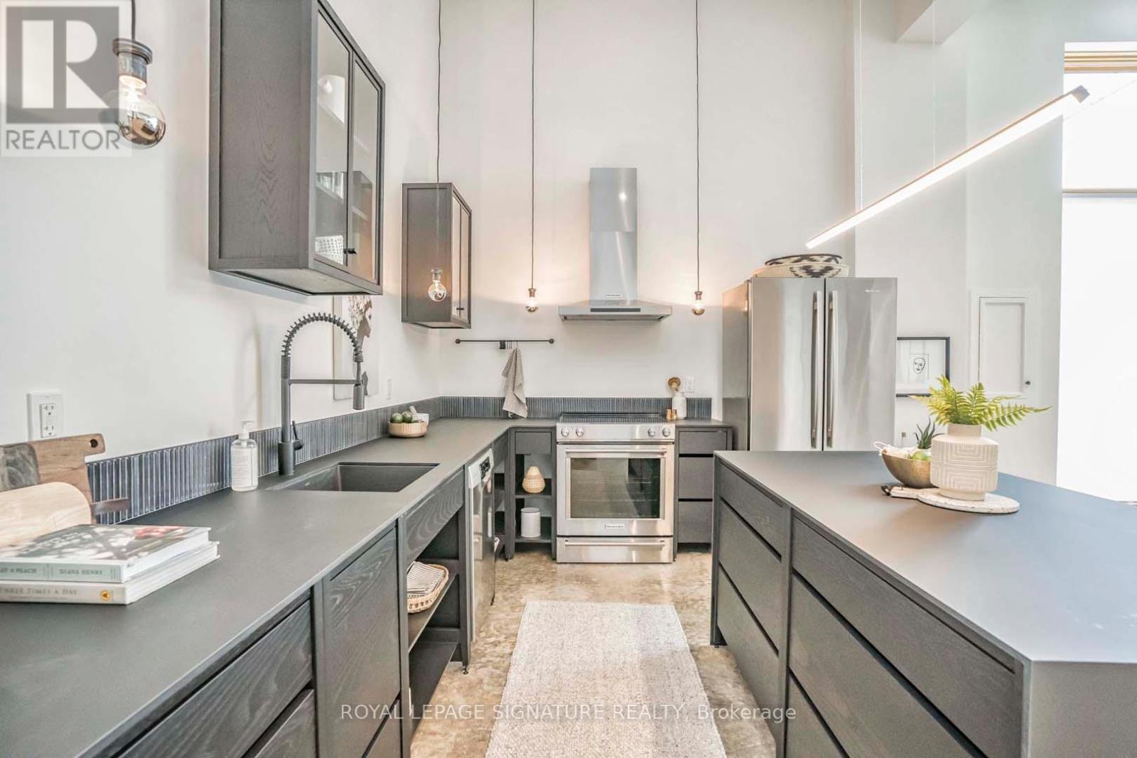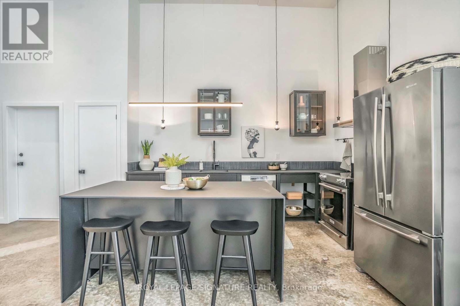 Experience sophisticated loft living on hip Geary Ave, where contemporary design meets expansive industrial architecture. This remarkable 2,000+ sq ft residence offers 3 bedrooms and 3 bathrooms within a dramatic open-concept layout defined by soaring 14-foot ceilings, polished concrete floors, and exposed ductwork- hallmarks of true urban loft design. Floor-to-ceiling windows flood the interior with natural light, enhancing the scale and airiness of the space while creating a seamless connection between living, dining, and kitchen areas. The sleek, modern kitchen is thoughtfully designed with high-end stainless steel appliances, Fenix countertops, and a striking waterfall island, providing both visual impact and functional workspace ideal for everyday living and entertaining.The primary suite offers a spacious retreat featuring a walk-in closet and a spa-inspired 4-piece ensuite, complete with a deep soaking tub and separate glass-enclosed shower. Two additional bedrooms provide flexibility for guests, home offices, or creative spaces, each supported by well-appointed bathrooms with contemporary finishes. Additional conveniences include a 30 sq ft storage locker and first-come-first-serve bicycle racks, adding practical functionality to this exceptional property. Situated in one of the city's most dynamic and creative neighbourhoods, this residence combines industrial character, modern finishes, and generous proportions to deliver a truly distinctive urban space. (id:4555)