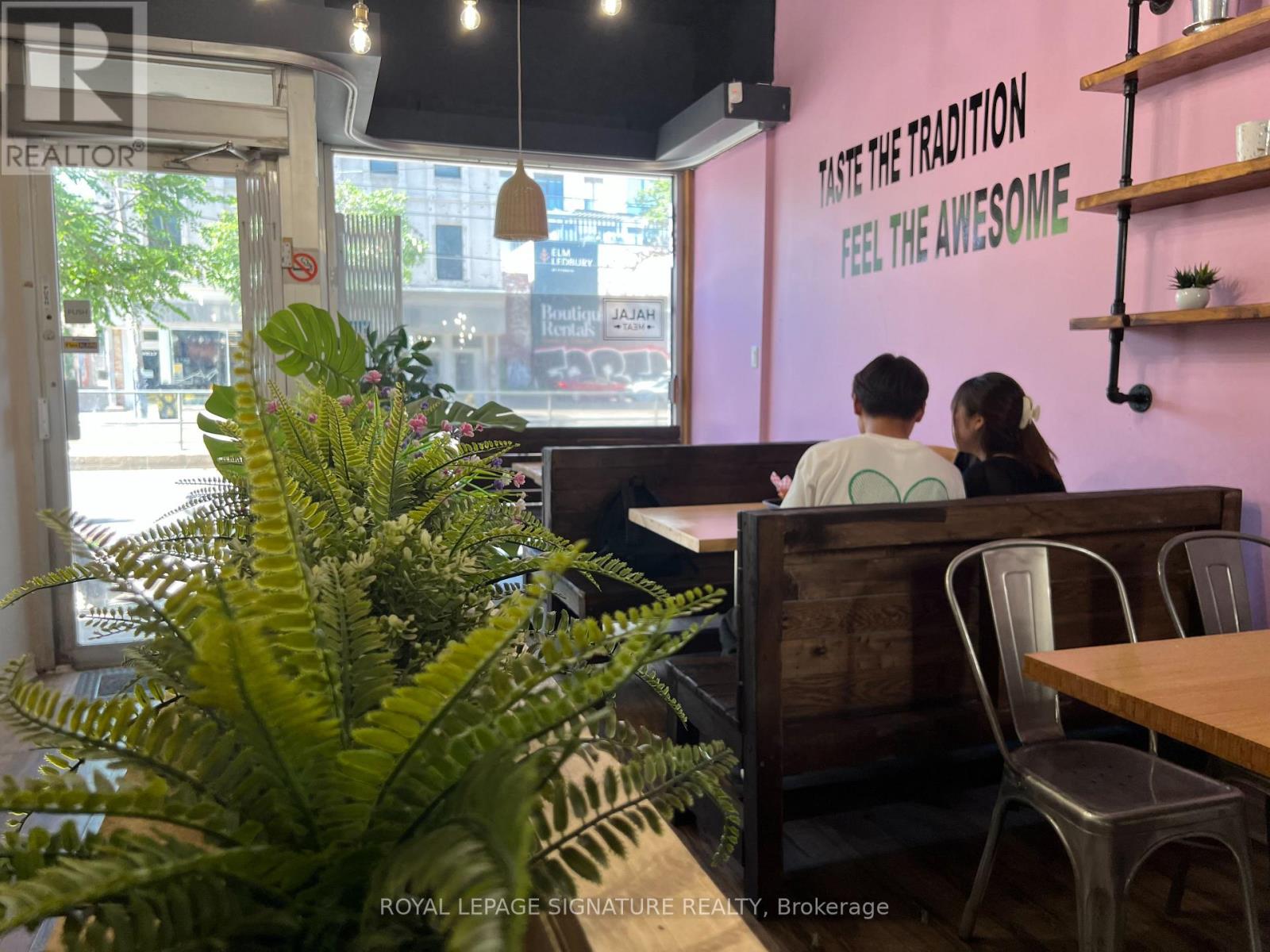 Charming restaurant in the heart of downtown's busy College & Spadina corridor. This corner location has excellent street presence and consistent foot traffic day and night. Currently operating as Awesome Tteokbokki, this space has already reached profitability in under a year. A rare find for an owner-operator or investor looking for a turnkey opportunity in a high-demand neighbour hood. Well maintained and easy to manage, this is a tightly run operation that functions with minimal staff. Ideal setup for bubble tea, dessert, coffee, or pizza slice shop. The full basement offers ample storage space and added functionality for back-of-house needs. $5,900 gross rent including TMI, with 4 + 5 years remaining on the lease. Seating for30, with two washrooms and one parking space included. No demolition clause and no usage restrictions. Fully built-out and profitable unit that requires very little hands-on oversight. Please do not go direct or speak to staff. (id:4555)