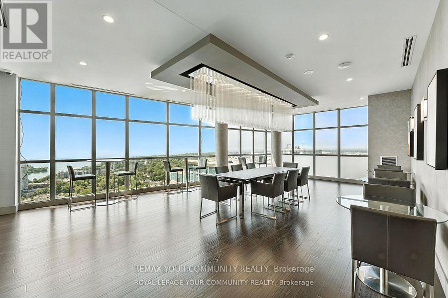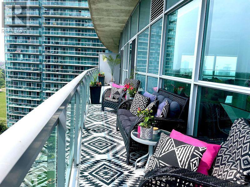 Enjoy Resort-style living in the City; elegant and impressive 2 bedroom, 2 bathroom corner suite featuring lofty 10 ft ceilings and almost 1000 square feet of beautifully designed living space. This suite features an expansive open-concept kitchen, living and dining area which includes a large mirrored credenza - perfect for entertaining; walk-out to oversized (195 square ft) balcony. Take in the fabulous south-east panoramic cityscape and Lake Ontario view - luxury living on Toronto's vibrant waterfront! This unit includes 2 Large Side by Side Lockers. The primary bedroom, which can accommodate a king size bed, has a terrific walk-in closet as well as a large custom mirrored closet! Both bedrooms have walkouts to the balcony., each showcasing stunning unobstructed lake views; Residents enjoy access to World-Class Amenities including a rare find outdoor pool, indoor pool, BBQ areas, 2 gyms with one located on the roof-top; yoga/fitness studio offering free classes; 3 Hot Tubs, 2 Saunas, Badminton/Volley Ball Court; Squash Court, Table Tennis, Theatre Room; Billiards, Library, 2 Lounge/Party Rooms with amazing lake & city views - all this just steps from shops, lakefront, parks, and dining. For boaters, conveniently located near Etobicoke Yacht Club and Marinas, and just a short walk from Mimico Go Station - an easy and efficient 10 minute commute to the Downtown Core; The new adjacent Grand Avenue Park includes a free running/walking track, soccer field, splash pad, large dog park, rental bikes, and a new playground; very close to Gardiner Expressway, QEW, Lakeshore Blvd., Sherway Gardens Shopping Centre and downtown Toronto! Convenient parking spot near the elevator and EV Charging Available; 2 Large mirrored custom built-in storage units; 24 Hour Concierge & Security - Pet Friendly Building! (id:4555)