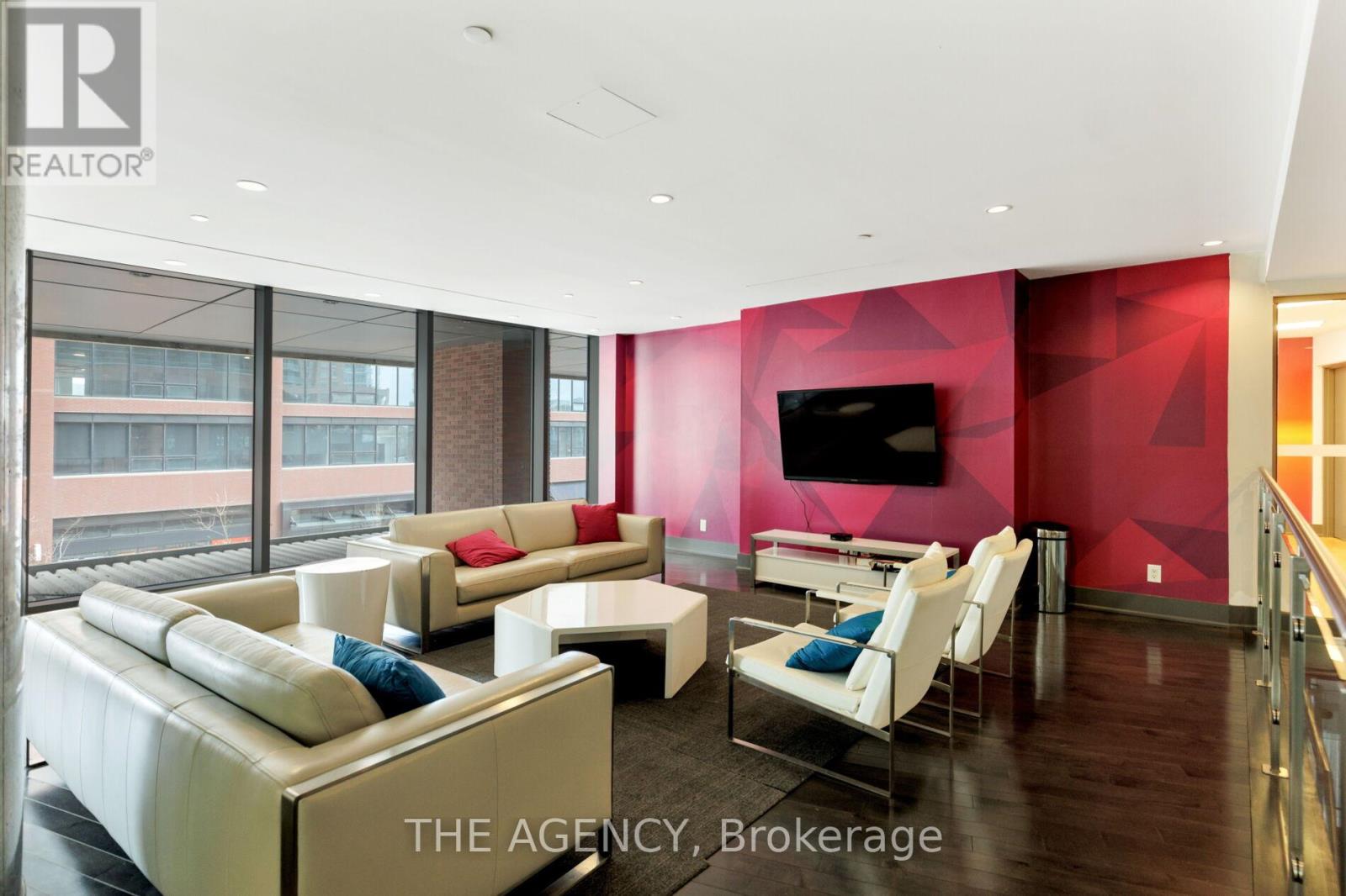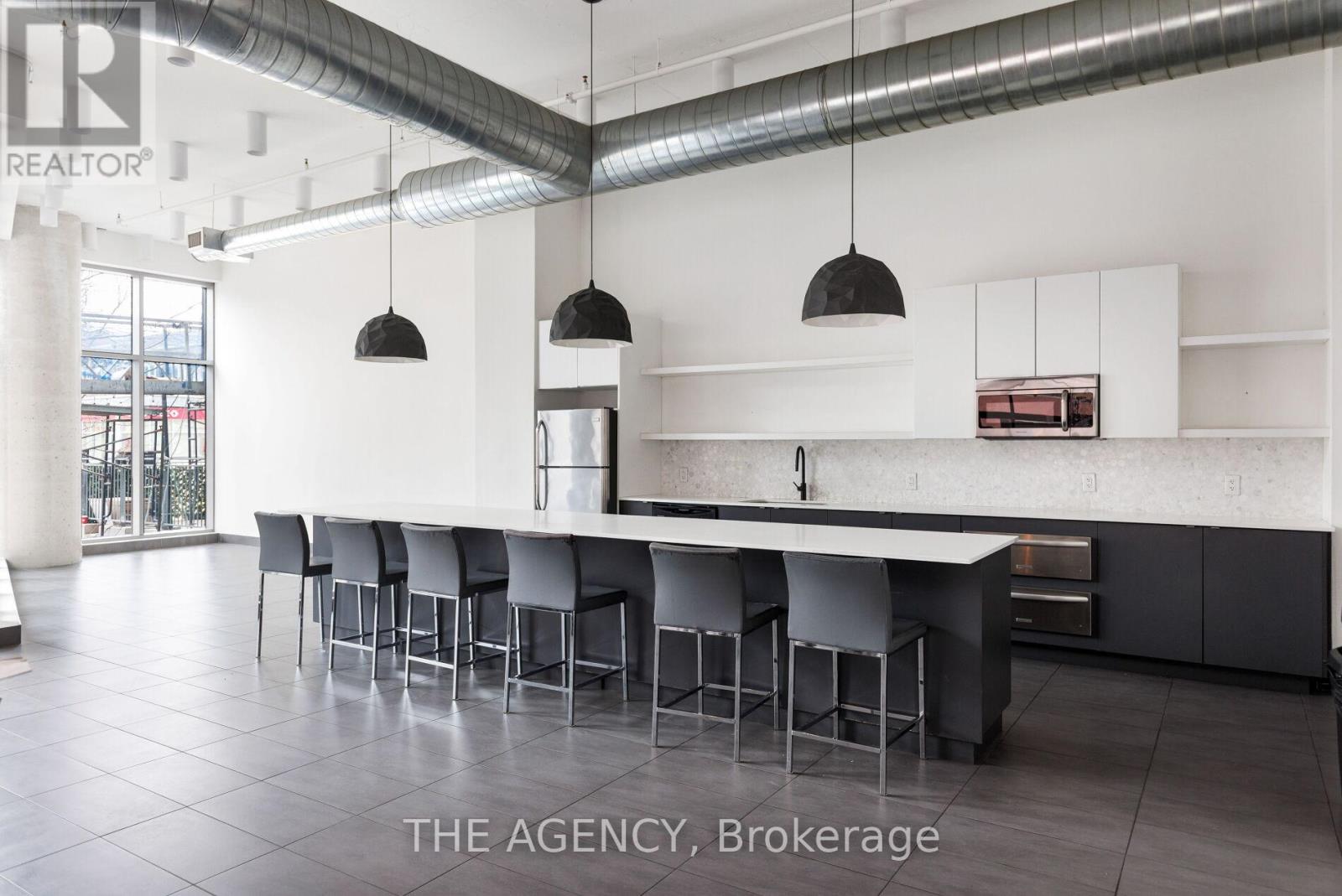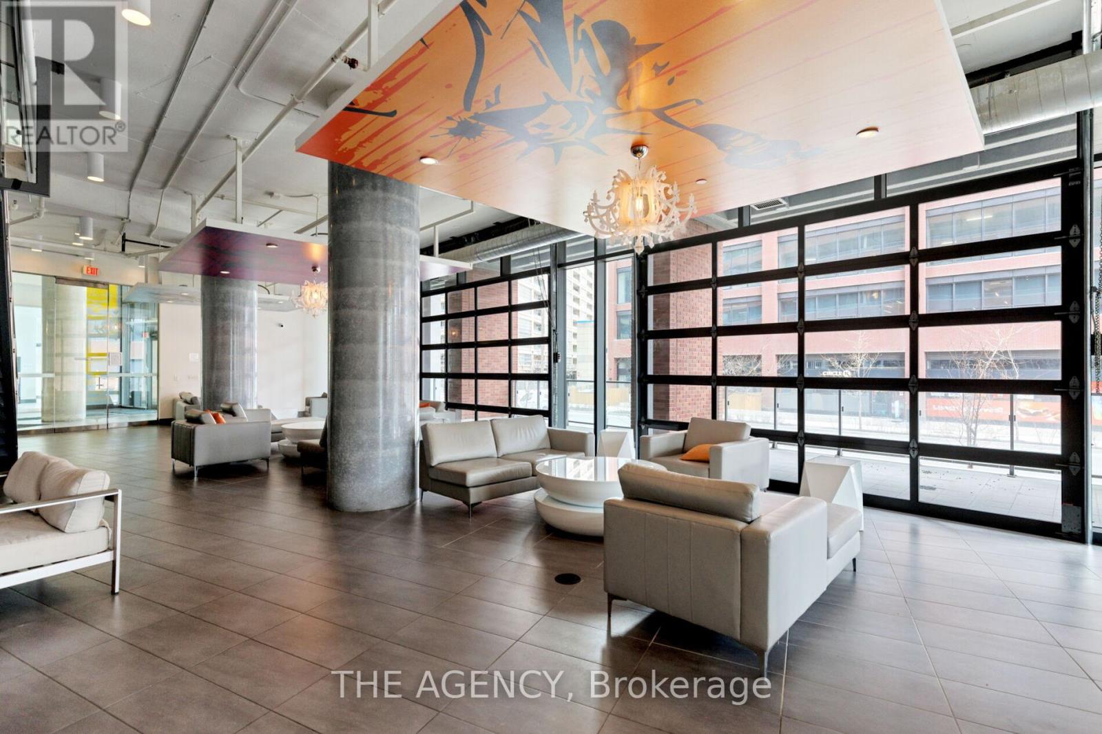 Step into this beautifully designed corner unit featuring two full bathrooms and a layout that blends modern style with urban convenience in one of Toronto's most dynamic neighborhoods. This rare suite offers a generously sized den, currently equipped with a Murphy bed, providing the perfect space for a home office, guest suite, or creative studio. Enjoy rich hardwood floors throughout, newly painted living room walls, a spacious kitchen with a large island and breakfast bar, and stylish high end finishes. The chef's kitchen is equipped with stainless steel appliances, including a premium Fisher & Paykel fridge. The parking spot is conveniently located just steps from the elevator, making daily living effortless. A private locker is also included and is perfectly positioned as the first door to the left; it truly couldn't be better placed for easy and direct access. Live just steps from Liberty Village's best shops, cafés, parks, and transit. You're moments from Liberty Village Park, offering the perfect green space for walking your dog or enjoying nature. Chiang Mai and Metro are just steps away for effortless grocery runs, and visitors will appreciate easy parking in front of the park. Surrounded by countless restaurants and everyday conveniences, this is city living at its finest. (id:4555)