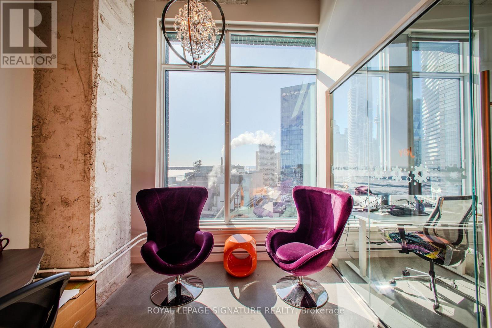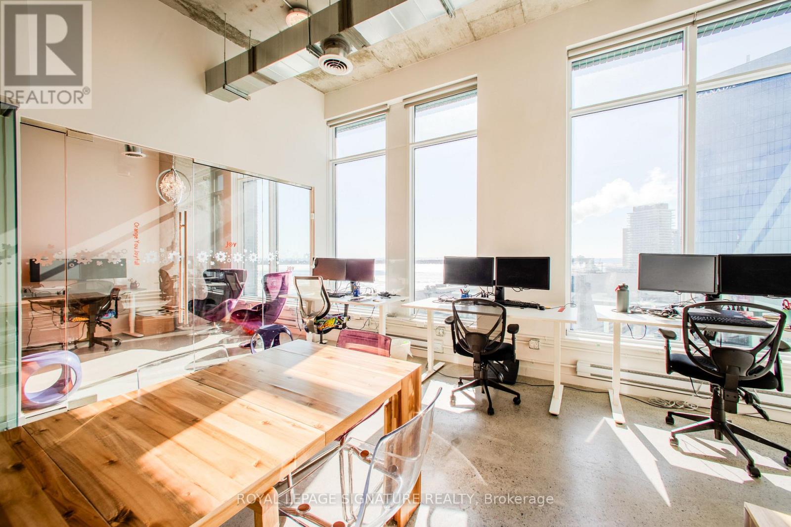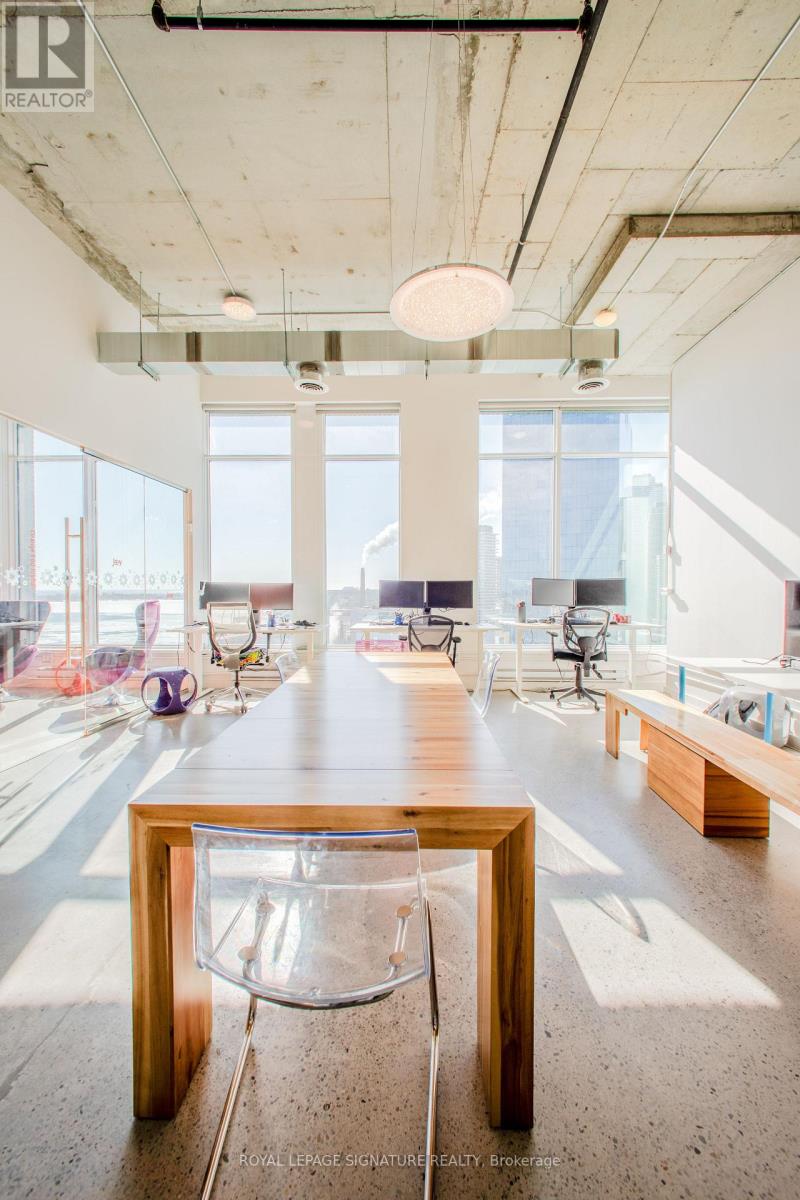 An exceptional opportunity to own a premium office suite in the heart of Toronto's South Core, offering unobstructed west-facing city views through expansive floor-to-ceiling windows. This professionally designed space boasts an impressive 12-foot-11-inch ceiling height, polished concrete floors, and exposed architectural elements, creating a modern, sophisticated work environment.Approximately $150,000 was invested in the custom build-out, delivering a true turnkey opportunity for both owner-users and investors. The efficient layout features four enclosed private offices, a spacious open collaborative area ideal for team workstations, a dedicated kitchenette, and a welcoming foyer entrance that makes a strong first impression on clients and guests.Located in a premium building with exceptional amenities, including a rooftop terrace, state-of-the-art boardrooms, and additional shared amenities on the 9th floor (East Tower). Just steps from Sugar Beach, Union Station, St. Lawrence Market, and major highways, this prime South Core address offers unmatched convenience, connectivity, and long-term value in one of Toronto's most sought-after office nodes. (id:4555)
