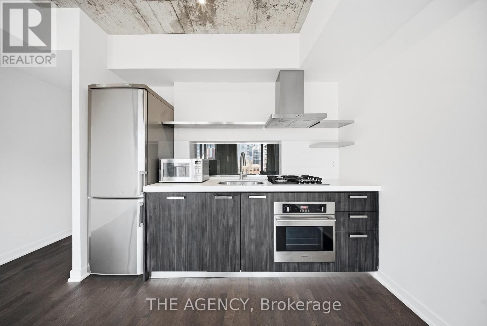 Balcony sunsets, rooftop swims, and the best of King West at your doorstep! This refreshed and turnkey one bed, one bath suite in Toronto's Fashion District is your gateway to loft living in an unbeatable location of downtown Toronto. Soaring ceilings with exposed concrete (no noise from your neighbour above) and floor-to-ceiling windows fill the open living space with natural light. The modern kitchen features a gas stovetop and stainless steel appliances, while the balcony offers unobstructed east-facing city views, including the CN Tower - complete with a rare BBQ gas connection for summer entertaining. One storage locker included for. Enjoy your summers on the iconic rooftop pool with sweeping skyline views as well as a fully equipped gym-perfect for staying fit without leaving home (and if you do, Solis Movement is right next door). Step outside and you'll never be bored. King West is packed with great dining, drinks, cafés, and nightlife within minutes on foot. Savour Italian favourites at Gusto 101, small plates and wine at Cibo Wine Bar, Spanish flavours at Beso by Patria, or contemporary comfort at Oretta. Grab morning coffee at Jimmy's Coffee, and enjoy cocktails at Baro, Bar Hop, or Lavelle's rooftop lounge. Casual eats and drinks await at fun-loved spots like King Taps, Earls and Ruby Soho.Weekend strolls through Trinity Bellwoods Park, and concerts or games at Rogers Centre complete the lifestyle. TTC streetcars at your doorstep make exploring the rest of the city effortless.Perfect for young professionals, urban foodies, first-time buyers, or investors seeking a vibrant live-work-play lifestyle in one of Toronto's most walkable and dynamic downtown neighbourhoods. (id:4555)
