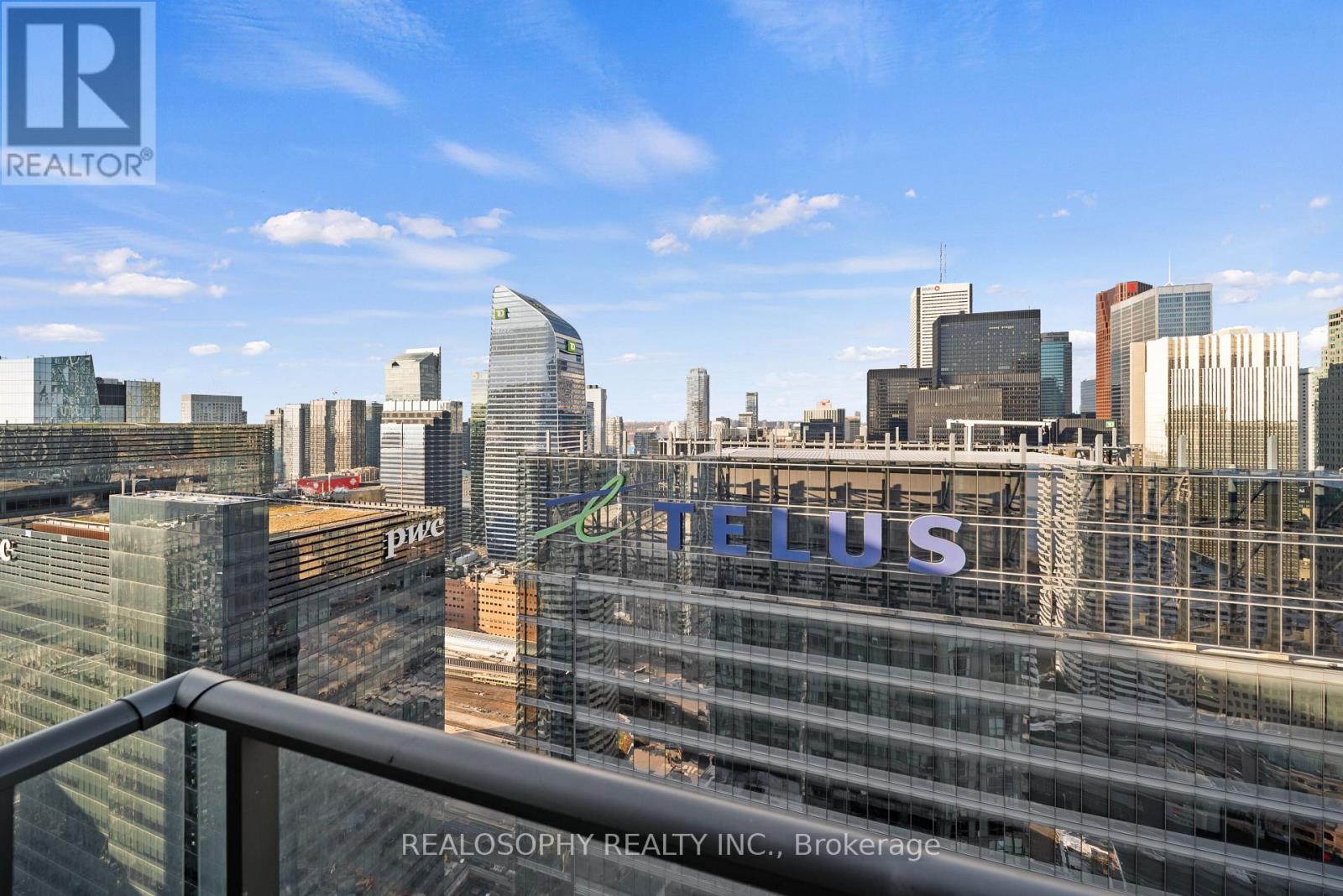 Welcome to this stunning 2-bed, 2-bath corner-unit condo in the heart of downtown Toronto-where comfort, convenience, and lifestyle come together beautifully. Perfectly situated just steps from the Scotiabank Arena, Rogers Centre, Union GO Station, Harbourfront, the CN Tower, and an endless selection of shops and restaurants, this home places you in the centre of everything the city has to offer.Inside, you're greeted with a bright and airy open-concept layout enhanced by expansive windows that fill the space with natural light. The spacious kitchen is designed for both cooking and entertaining, featuring full-sized appliances, ample counter space, a breakfast bar, and seamless flow into the living and dining areas. From here, walk out to the first of two private balconies-ideal for morning coffees, fresh air, or simply taking in the northern city views, including a clear sightline of the iconic CN Tower. The thoughtfully designed floor plan offers privacy and functionality. The primary bedroom acts as a serene retreat with soft carpet for added comfort. It is complete with a walk-in closet, a private 4-piece ensuite bathroom, and its own dedicated balcony. The second bedroom is generously sized, and easy access to the second full 4-piece bathroom. Additional conveniences include an ensuite laundry room with extra storage, making day-to-day living smooth and efficient. Hardwood floors run throughout the main living areas, adding warmth and refinement, while the corner-unit layout provides exceptional natural light and northern city views. Modern living, unbeatable walkability, and captivating views-this is Toronto living at its finest. (id:4555)