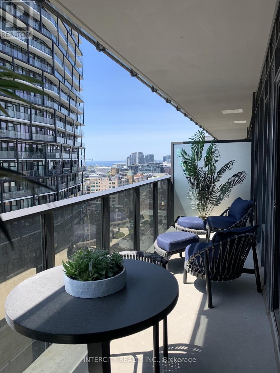 Located on the 25th floor in the heart of Toronto's Entertainment District, this spectacular model suite at 330 Richmond St. W showcases Greenpark Homes' award-winning craftsmanship and signature attention to detail. Professionally furnished with high-end luxury furniture and designer decor, the residence blends sophistication with functionality in every corner. The open-concept living area has been brilliantly reimagined with a floor-to-ceiling glass wall, creating a flexible second bedroom-perfect as a private guest room or home office-without sacrificing natural light or openness. Expansive windows flood the suite with daylight, highlighting the wide-plank hardwood floors and elegant finishes that make the home completely move-in ready. Bell high speed internet included. The gourmet kitchen is equipped with sleek modern cabinetry, quartz countertops, and premium integrated appliances. A spacious den adds further versatility, while the private balcony offers sweeping city views. Residents enjoy an array of first-class amenities, including a rooftop pool and Sky Lounge with panoramic vistas, a fully equipped fitness and yoga studio, media room, and 24-hour concierge service. Steps from theatres, fine dining, the Financial District, and transit, this model residence offers the ultimate downtown lifestyle-luxurious, flexible, and impeccably curated. (id:4555)