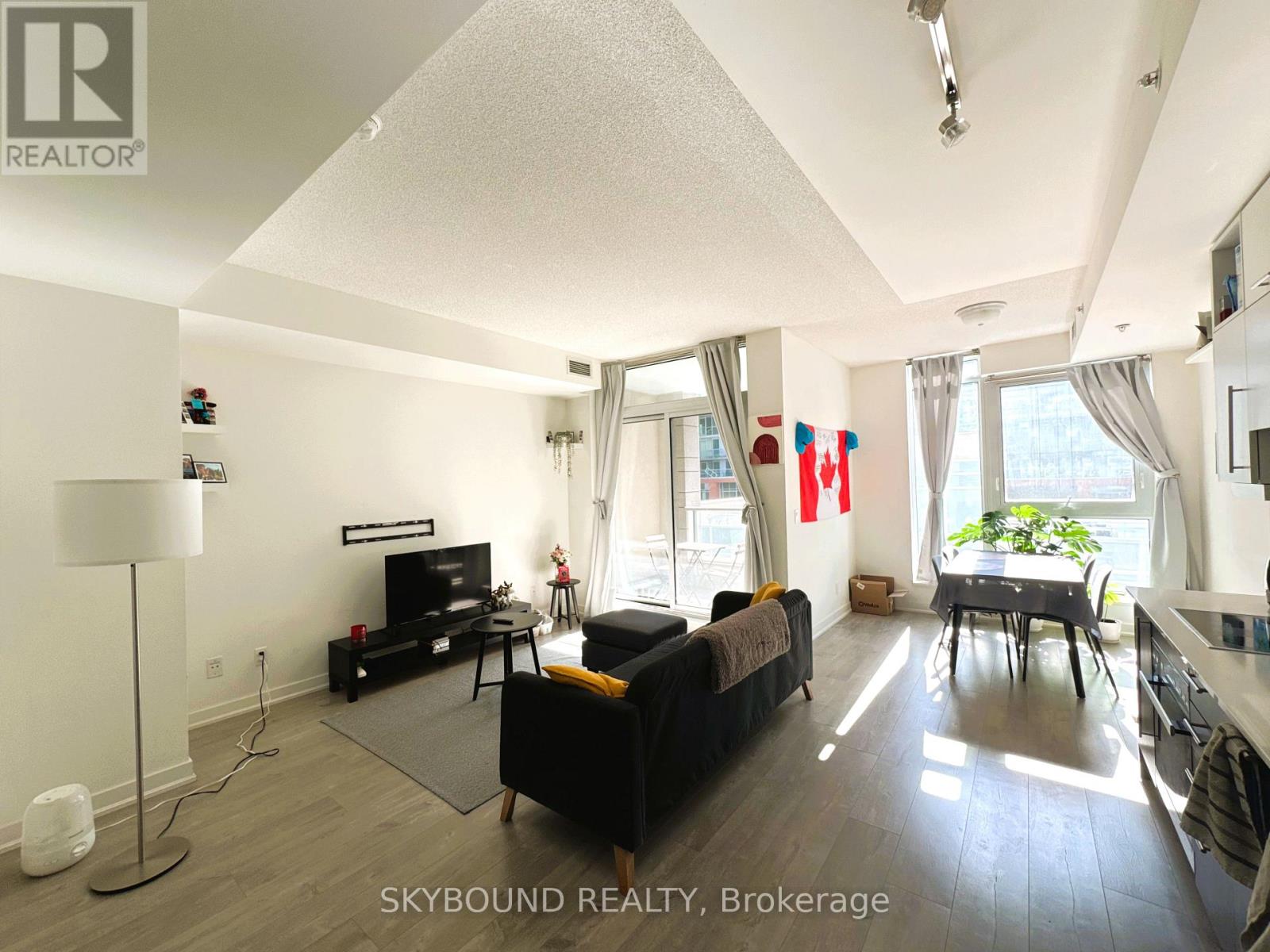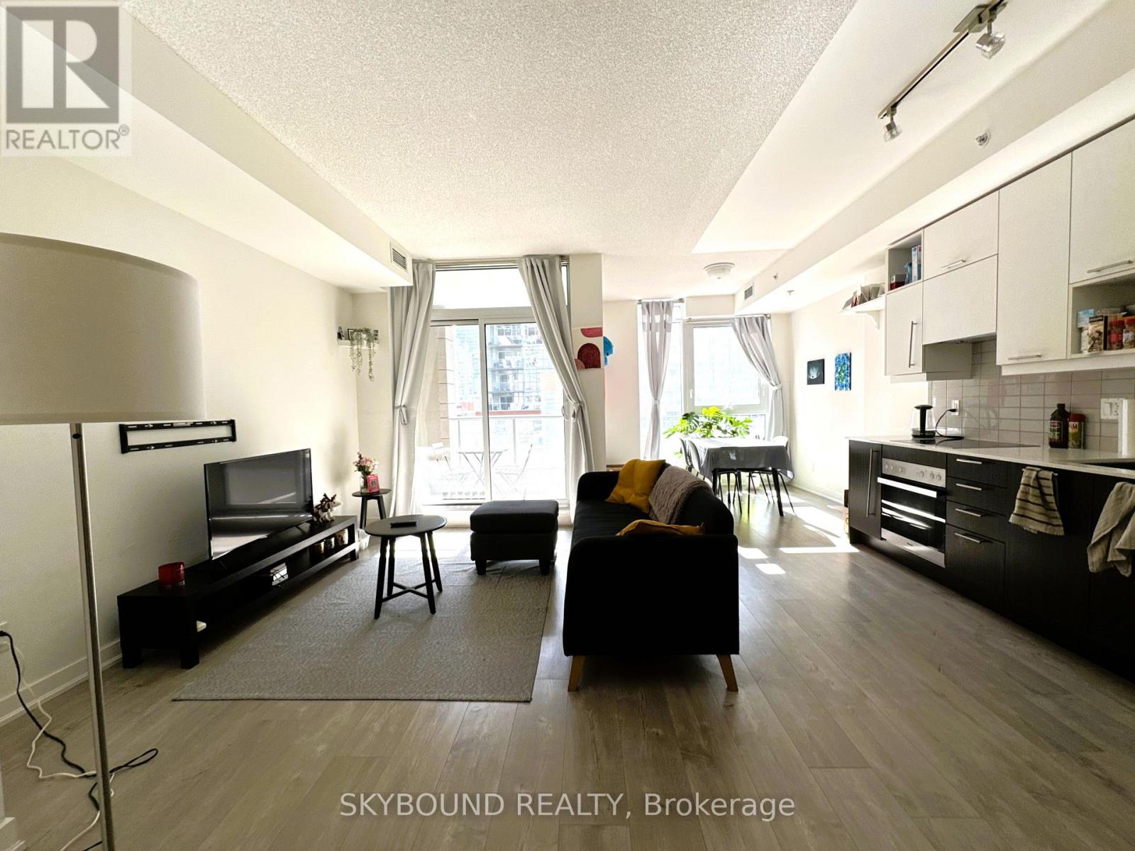 Welcome to Studio on Richmond, a modern condo residence in the heart of Toronto. This bright, south-facing, 1 bedroom plus den unit features over 700 sq. ft. of functional living space, 9ft ceilings with natural sunlight throughout the day, Miele appliances, and ensuite laundry! Den can be used as a second bedroom or office (fits a queen bed). The private balcony overlooks a quiet courtyard (no shared divider walls with neighbours).Highly desirable neighbourhood with all of life's necessities within a 1km radius. Steps to Osgoode and St. Andrew TTC Stations, Queen and King streetcars, Financial District, PATH, Eaton Center, Chinatown, theatres, hospitals, restaurants, grocery stores, U of T, TMU, OCAD, waterfront, and more. This location will not disappoint. Also enjoy a full range of building amenities such as 24-hour concierge, indoor gym, sauna, party room, rooftop patio with jacuzzi and BBQs! (id:4555)