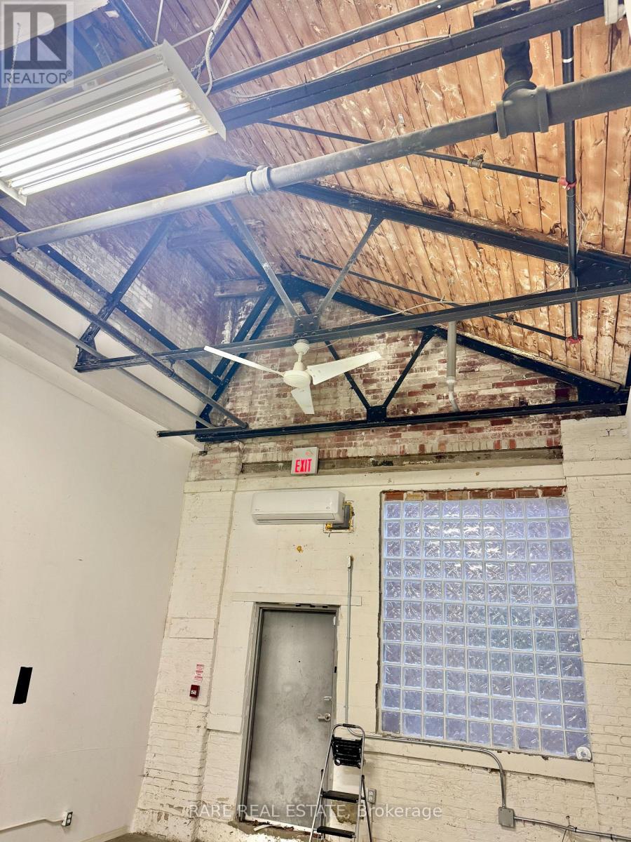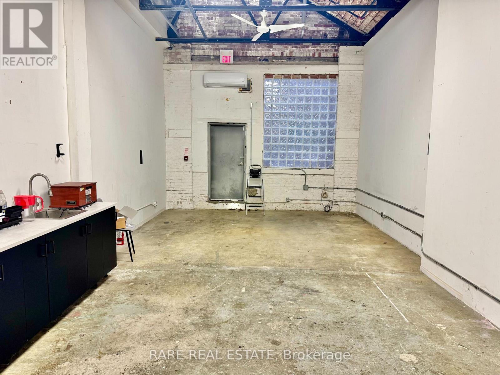 Bright and character filled brick and beam retail or office space available on vibrantSterling Road. This rectangular layout offers excellent flexibility for a variety of creative or professional uses, with some light industrial uses also considered.The space features impressive 16 foot 8 inch ceiling height with exposed industrial structure, a glass brick wall allowing for beautiful natural light, and double entry doors ideal for moving large items or equipment. There is a self contained temperature control system, air conditioning, a ceiling fan to keep air circulating, and a dedicated 125 amp electrical panel with 10 receptacles throughout.Additional features include a kitchenette with sink and faucet, an emergency exit door leading directly to the exterior, and access to communal washrooms within the building.Located just steps from Bloor GO Station, UP Express, and the subway, this is an idealopportunity for businesses seeking style, functionality, and exceptional transit connectivity in one of the city's most dynamic pockets. (id:4555)