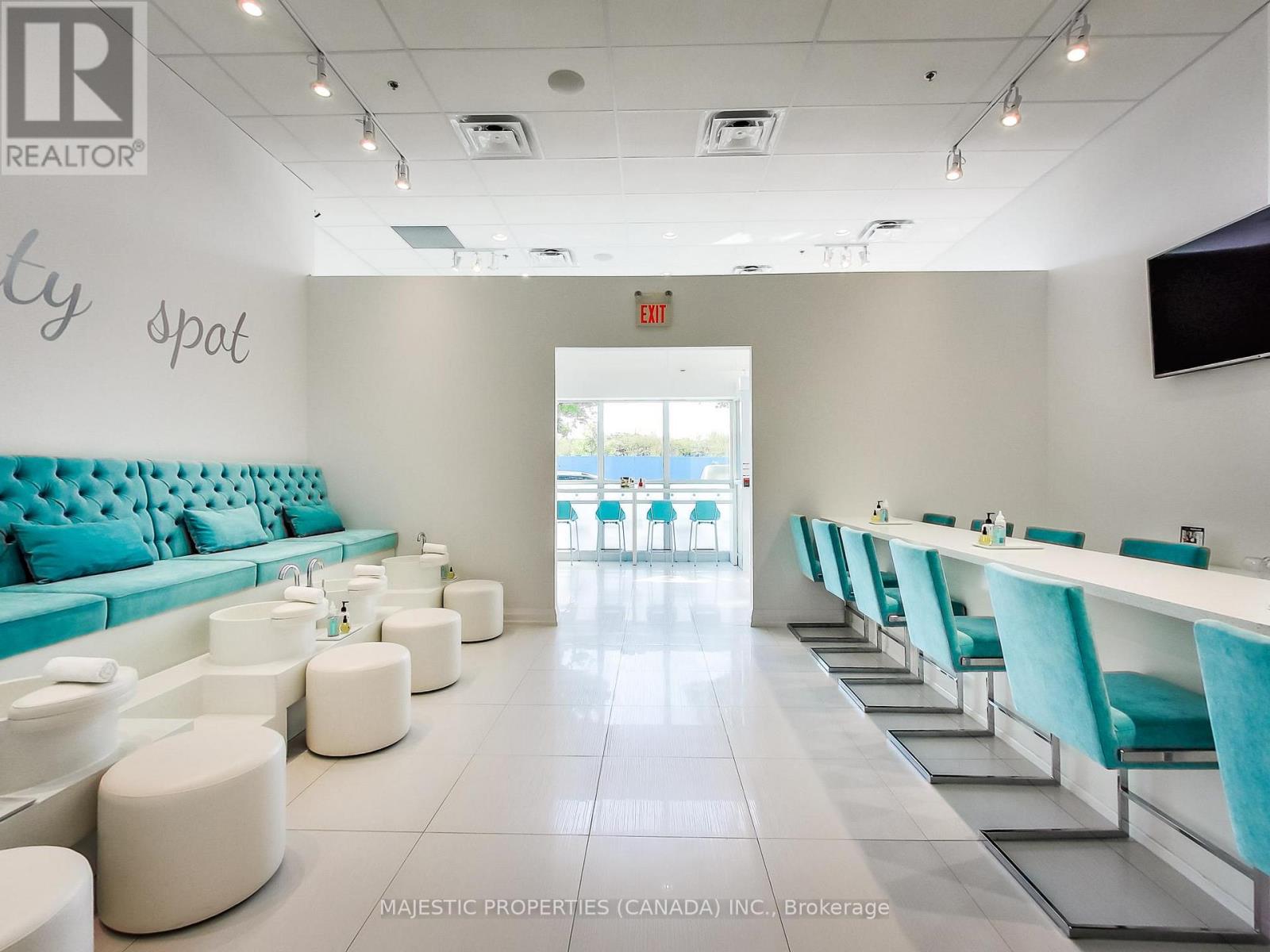 An exceptional opportunity to acquire a beautifully designed luxury commercial space in the heart of Mimico's prestigious Park Lawn & Lakeshore community. This 1,125 sq. ft. commercial condo unit features a meticulously built-out, high-end spa environment with dramatic 17-foot ceilings and a bright, open-concept layout. Expansive floor-to-ceiling windows flood the space with natural light, creating the serene, upscale atmosphere. The sophisticated build-out allows for immediate occupancy, minimizing startup costs, making it equally appealing to owner-operators and investors seeking a strong, established commercial presence. Strategically positioned along Manitoba Street, the unit offers excellent visibility, steady pedestrian traffic and unparalleled access to one of Toronto's fastest-growing residential hubs. Surrounded by luxury condominium towers and just steps from Mimico GO and waterfront, it benefits from exceptional demographic density and a clientele aligned with premium personal care and wellness services.The soaring ceilings provide the rare opportunity to add a mezzanine or second level, significantly increasing functional square footage and long-term investment value. This space comes with a proven operating history: the current business has been successfully operating in this space for the the past 11 years, demonstrating the location's strong revenue potential. A rare chance to secure a polished, income-generating commercial asset in a thriving lakeside community with continued growth and development. Business is not listed for sale; all inquiries regarding current lease, business acquisition or related opportunities can be discussed directly with LA. (id:4555)