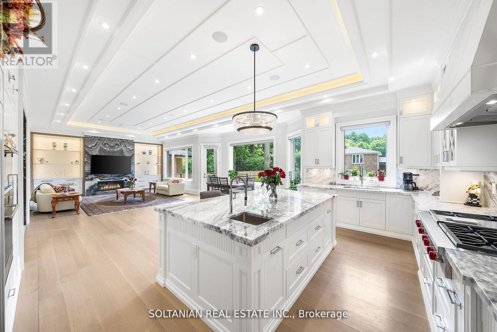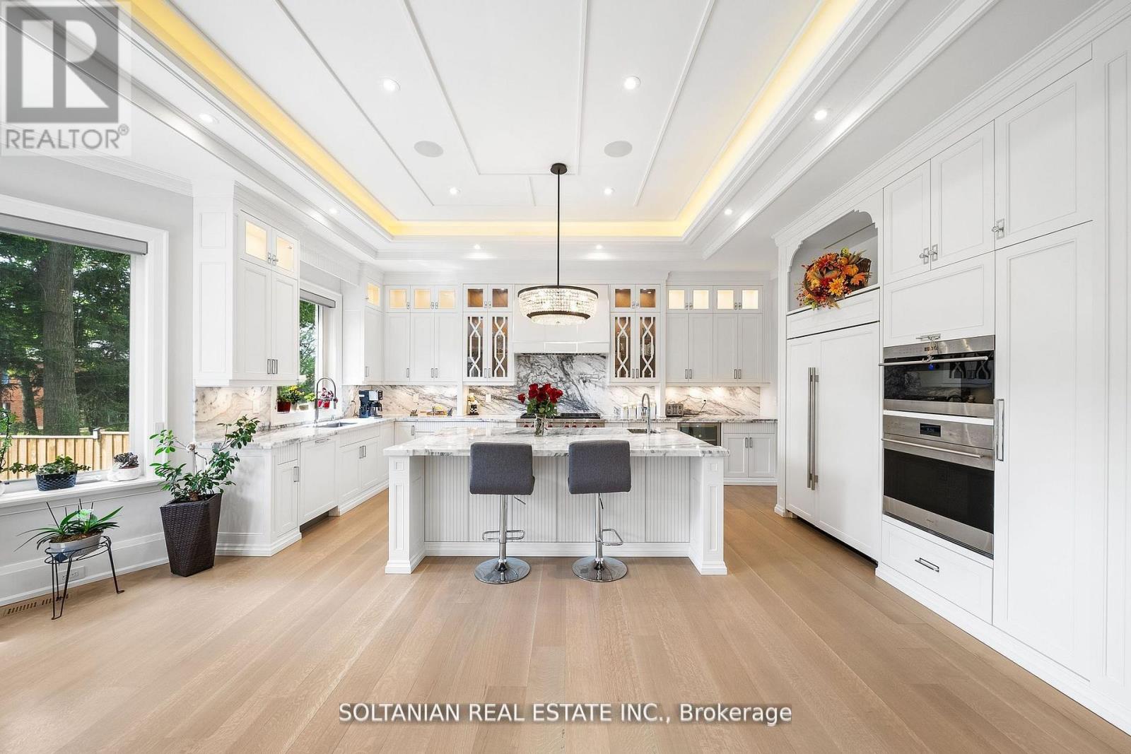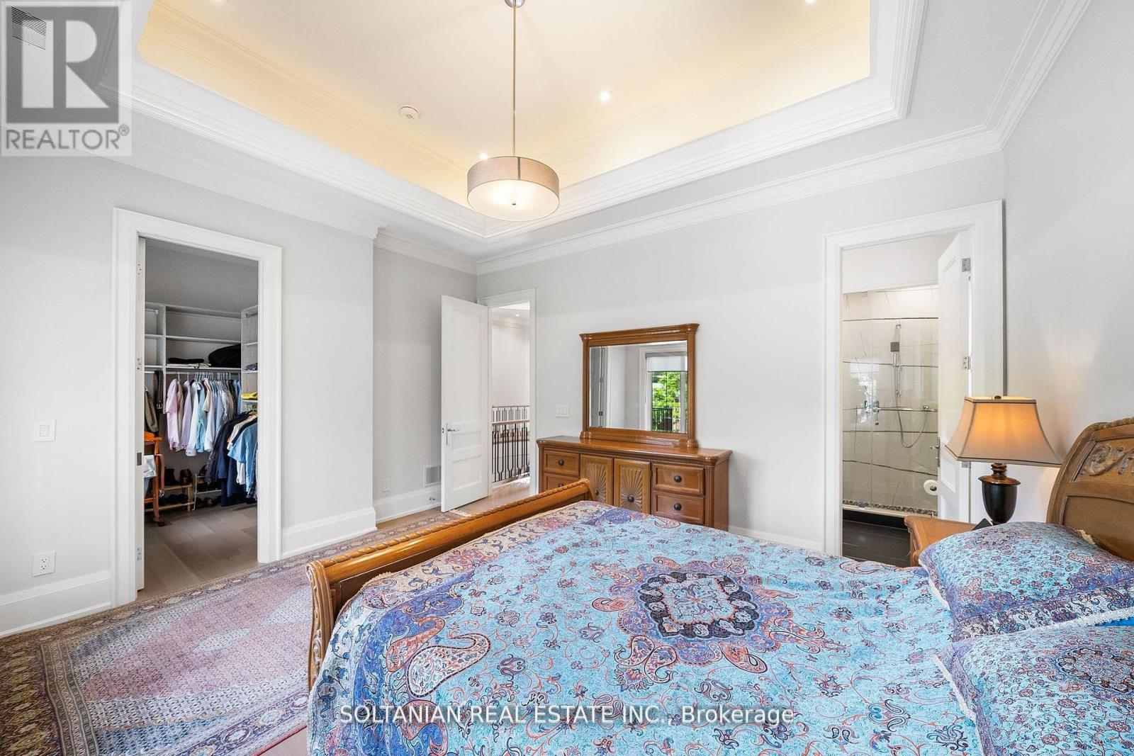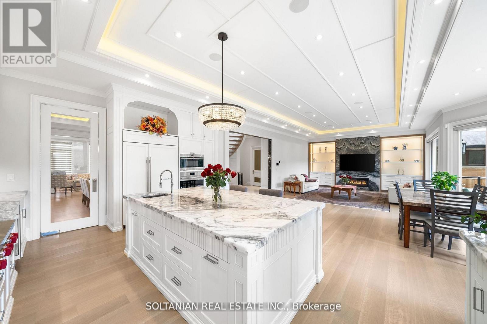 Luxurious living awaits in this newly built 5-bedroom,each with an ensuite for ultimate convenience and privacy. This custom-built home is nestled on a serene court in North York.Featuring exquisite craftsmanship and modern amenities throughout,this residence offers a foyer with skylights and a circular grand foster with musky lights,flooding the main floor with natural light.The living and family rooms' fireplaces set the stage for elegant gatherings. The gourmet kitchen boasts marble countertops,a Wolf gas-burning stove,and a SubZero fridge/freezer.The second floor features coffered ceilings and impressive 11 and 13-foot heights, enhancing the spacious feel of the home.The fully finished basement includes a wet bar,additional bedrooms,a wine cellar,and heated floors.Enjoy the convenience and entertainment of the Control4 smart home system, motorized blinds, built-in speakers, and a dual comfort system.The heated floors extend to the garage! (id:4555)