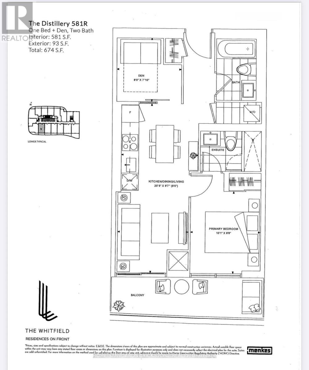 Brand new south-facing 1 Bed +Den w/ 2 Full Bath suite at The Whitfield, built by renowned Menkes, ideally located at Front St E & Sherbourne in the heart of downtown Toronto. This well-designed suite offers an efficient open-concept layout with floor-to-ceiling windows bringing in plenty of natural light. The den is a separate enclosed room with a sliding door, ideal for use as a home office or second bedroom. The modern kitchen features integrated appliances, quartz countertops, and sleek cabinetry, seamlessly connected to the living and dining area. Building amenities to be completed include a 24-hour concierge, fitness centre, co-working lounge, party room, media lounge, and outdoor terrace. Prime downtown location just steps to St. Lawrence Market, the Distillery District's cafés, boutiques and galleries, the waterfront, Financial District, George Brown College, Union Station, groceries, restaurants, and everyday conveniences (id:4555)