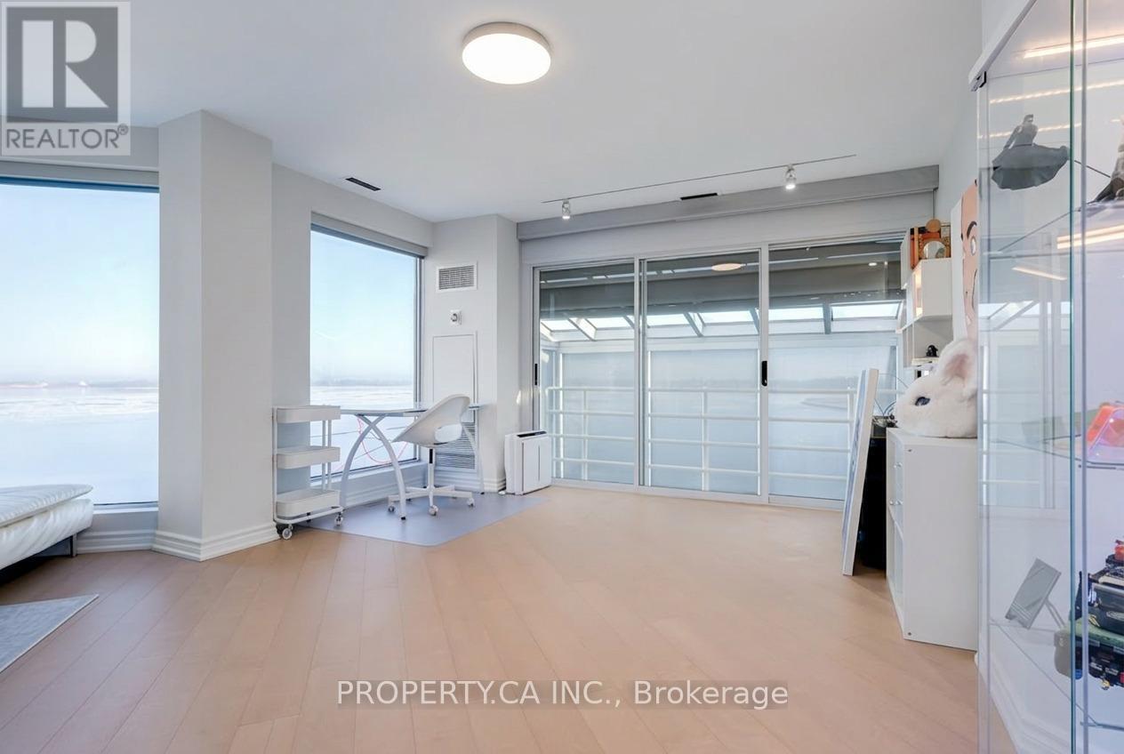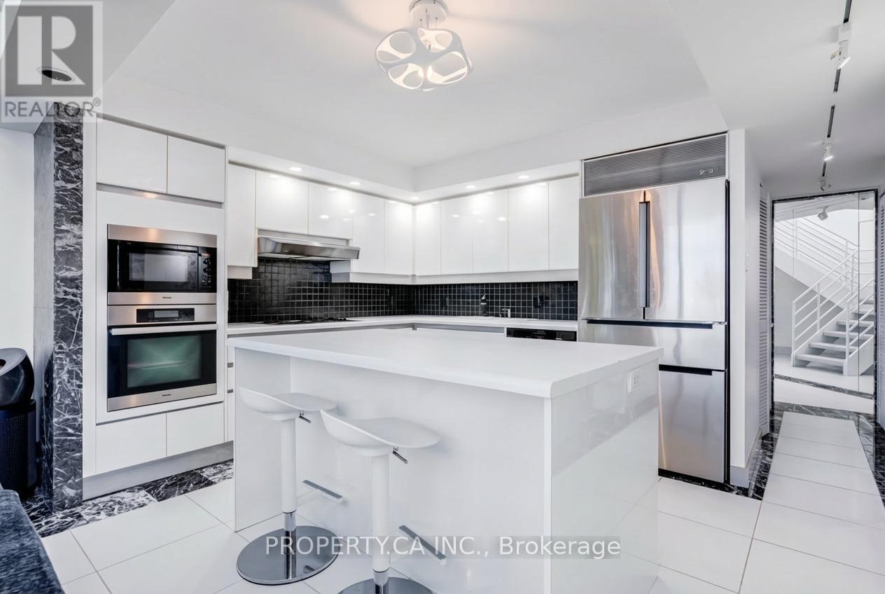 Welcome to this exceptional two-storey, 2 bedroom, 1,837 sq ft corner suite with a 218 sq ft balcony at the award winning "Harbour Terrace". Offering an impressive blend of space, natural light, and waterfront living, this rare loft-style residence features expansive principal rooms, fireplace, soaring ceilings, skylight, and floor-to-ceiling windows showcasing stunning lake and CN Tower views. Thoughtfully designed for both everyday living and entertaining, the generous two-level layout includes two separate entrances and offers remarkable scale and privacy. Enjoy your private 218 sq ft balcony retreat overlooking the vibrant waterfront setting. Residents enjoy resort-style amenities including 24-hour concierge, indoor pool, fitness centre, rooftop terrace, and visitor parking. Building does not permit dogs on the 4th floor or higher. Ideally situated along the waterfront, steps to Harbourfront, TTC, parks, restaurants, and the downtown core, this is a rare opportunity to live in a truly unique suite in one of the city's most sought-after communities. (id:4555)
