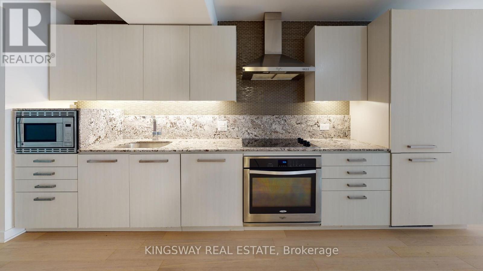 This exceptional three-bedroom residence features a thoughtfully designed open-concept layout with a highly functional floor plan, ideal for larger families, students, or roommates seeking a stylish shared living space. Each bedroom is generously sized and complemented by soaring 9-foot ceilings and high-quality finishes throughout.The gourmet kitchen is a standout feature, showcasing sleek granite countertops and beautifully crafted cabinetry. Rich engineered hardwood flooring flows seamlessly throughout the unit, creating a warm and sophisticated setting perfect for both everyday living and entertaining.Situated in an intimate boutique building, this residence offers an unbeatable downtown location just steps from the Financial District, Toronto Metropolitan University (formerly Ryerson), the University of Toronto, subway access, Scotiabank Arena, and some of Canada's finest dining establishments. A perfect blend of comfort, convenience, and urban sophistication. (id:4555)
