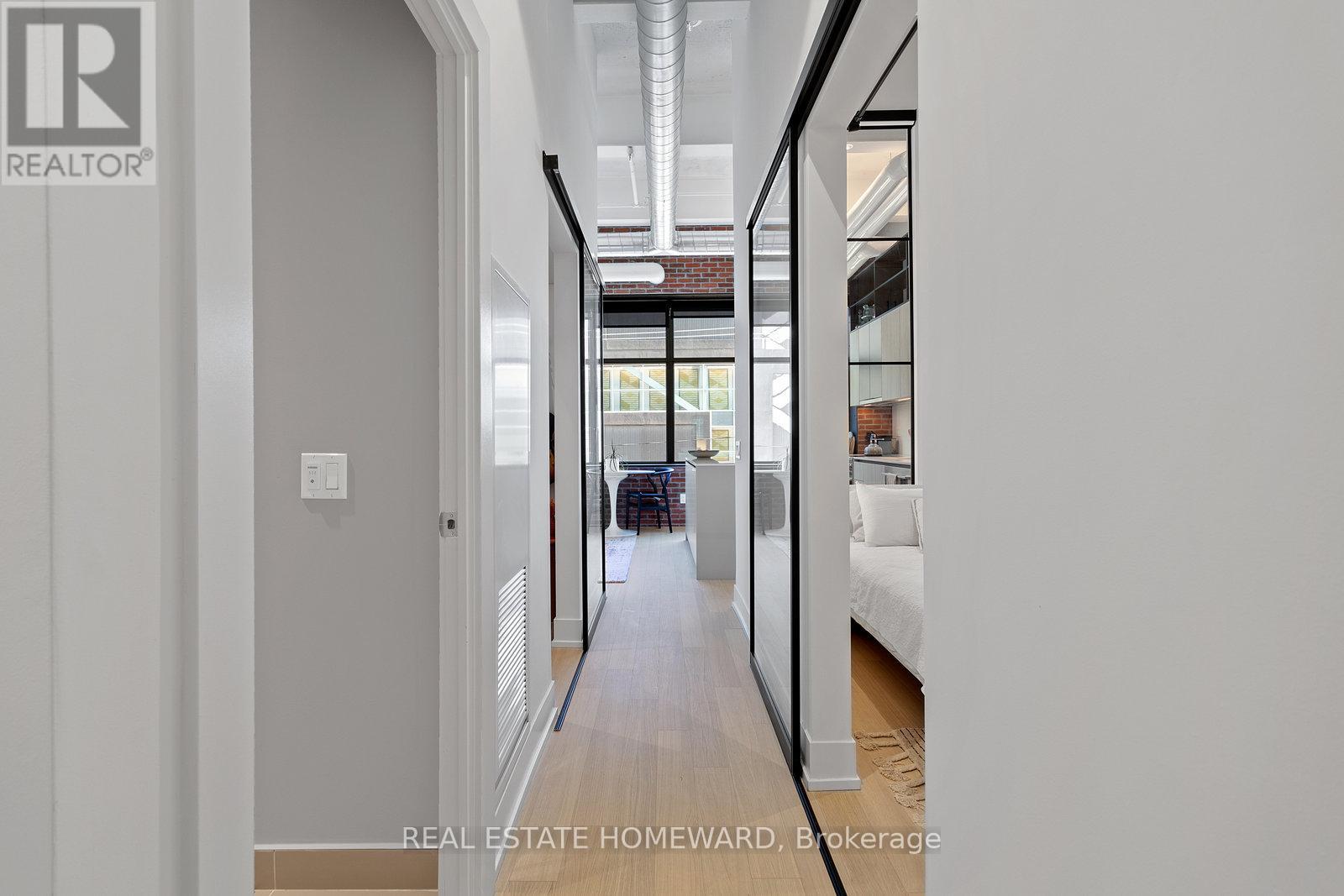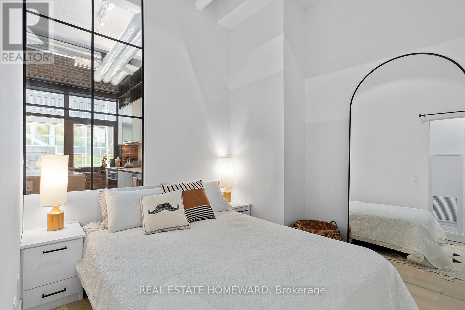 ** FULLY FURNISHED - Utilities Included - 6 Mo Minimum ** 1 Bedroom + Full Home Office ** Experience urban luxury at its best in this stunning Heritage Loft, perfectly situated in Toronto's vibrant east end. Once a historic bread factory, this beautifully reimagined south-facing residence combines industrial charm with high-end sophistication. Step into soaring 15-20 foot ceilings and bask in natural light through expansive industrial windows, outfitted with motorized sunshade and blackout blinds for ultimate comfort. The designer kitchen features premium Fisher & Paykel appliances, while the open-concept living and dining area includes a large table, a plush sleeper sofa (queen pull-out), and a 50" Smart TV-ideal for entertaining or relaxing in style. The primary bedroom offers a queen-size Posturepedic bed with a custom-built frame, spacious custom closets, and a luxurious ensuite with a deep soaker tub. The second bedroom, currently styled as a dedicated home office, includes a large desk and blackout blinds for focused work or peaceful sleep. A sleek powder room adds extra convenience for guests.Additional features include in-suite laundry, a grand entry foyer with soaring ceilings and ample storage, and access to top-tier building amenities like a fully equipped fitness centre, an expansive private rooftop terrace, and 24-hour concierge/security. Included in the Rental Rate: FULLY FURNISHED (including Pots/Pans, Dishes, Cutlery, and Linens) All Utilities (Heat/Ac, Hydro, Water, High-Speed Internet) Parking: 1 Parking Covered Garage (id:4555)