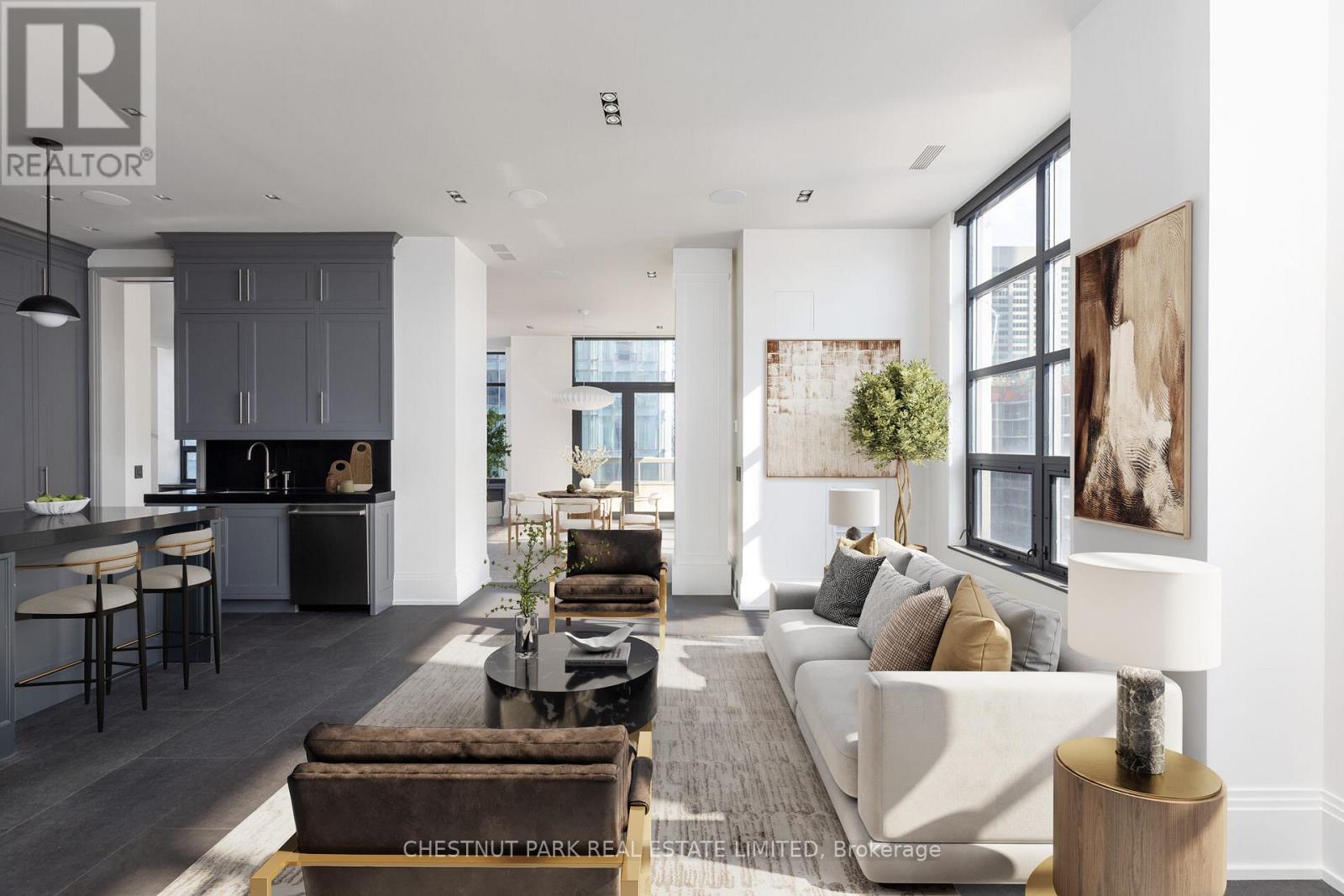 Welcome to Residence 1601 at The Regency, an intimate boutique residence of just 58 suites in the heart of Yorkville. Spanning approximately 2,671 sq ft, this meticulously maintained corner suite offers grand principal rooms, approx 10-foot ceilings without bulkheads, and exceptional natural light from its south-east and west exposures. Positioned on a floor with only two suites, the residence offers an exceptional level of privacy. Expansive living and dining areas open seamlessly to a sun-filled south-facing terrace overlooking Bay Street, while a second terrace captures southwest views down Yorkville Avenue - ideal for entertaining or enjoying quiet mornings above the city. The thoughtfully designed layout features generously proportioned bedrooms, including a luxurious primary retreat with a spa-inspired ensuite and double custom walk-in closets, complemented by refined finishes throughout. Recently refreshed with new paint and updated lighting, the suite presents beautifully and is move-in ready. Located steps from the Four Seasons Hotel, world-class dining, designer boutiques, galleries, and cultural institutions, residents enjoy valet parking, 24-hour concierge, fitness facilities, and the understated elegance of one of Yorkville's premier boutique buildings. Two side-by-side valet parking spaces and one large locker are included - a rare opportunity to lease a full-scale luxury residence in the heart of Yorkville. (id:4555)