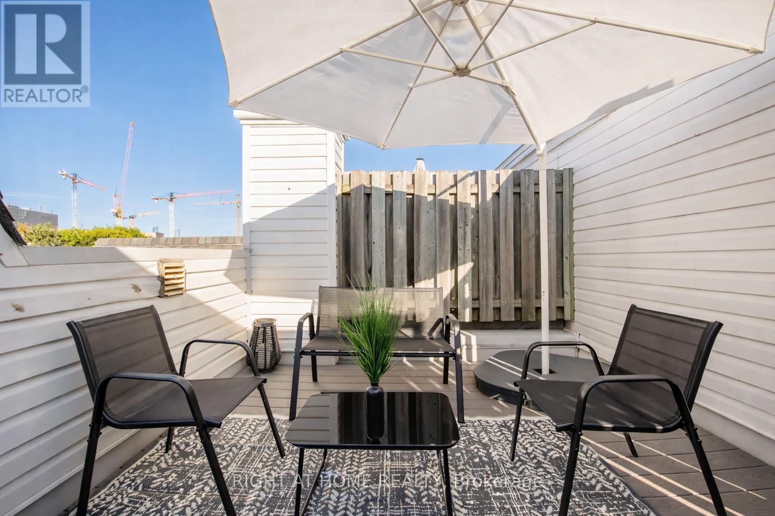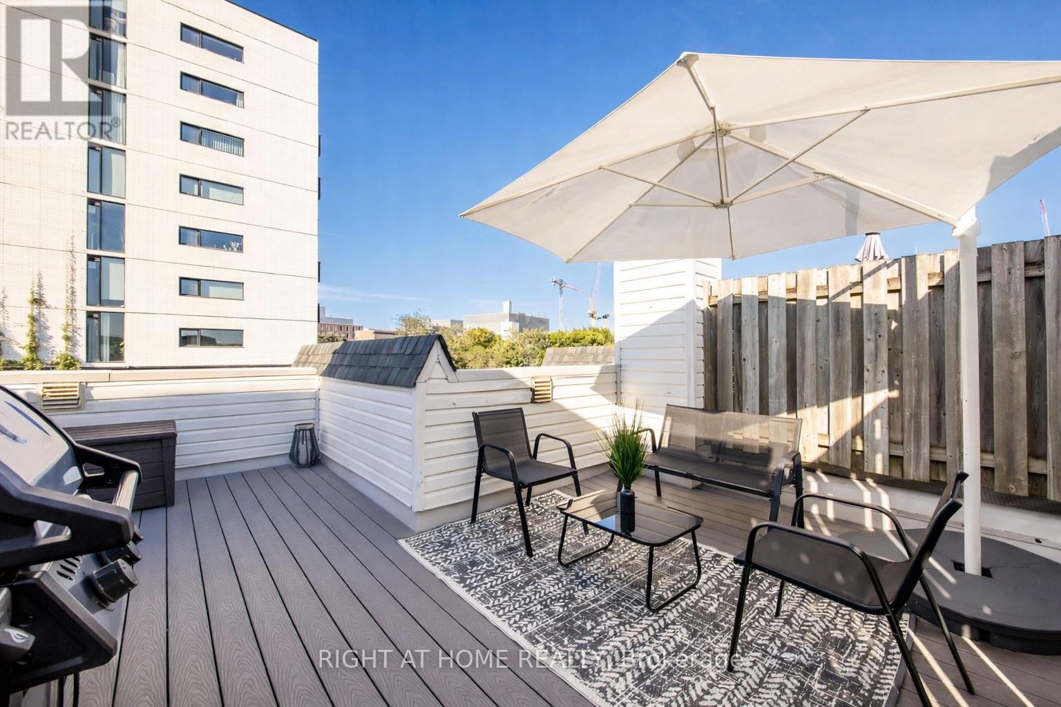 A showcase of modern design, this fully renovated 3-bedroom, 2-bathroom townhouse has been reimagined in 2024 with an eye for detail and style. The chef-inspired kitchen features sleek quartz countertops, a continuous backsplash, and black appliances that create a striking contrast against clean lines and open space. Bathrooms have been elevated to spa quality, including a hotel-inspired main bath with black fixtures, sophisticated tilework, and a calming aesthetic. New flooring (2024) runs seamlessly throughout, enhancing the flow of natural light and emphasizing the homes contemporary palette. The private rooftop terrace offers a perfect vantage point for iconic CN Tower views. Designed for both form and function, this home balances minimalist elegance with everyday livability. Private parking completes the package, ensuring convenience without compromise. A rare opportunity to own a thoughtfully curated residence that embodies a modern design ethos. * Some photos in this listing have been virtually staged. (id:4555)