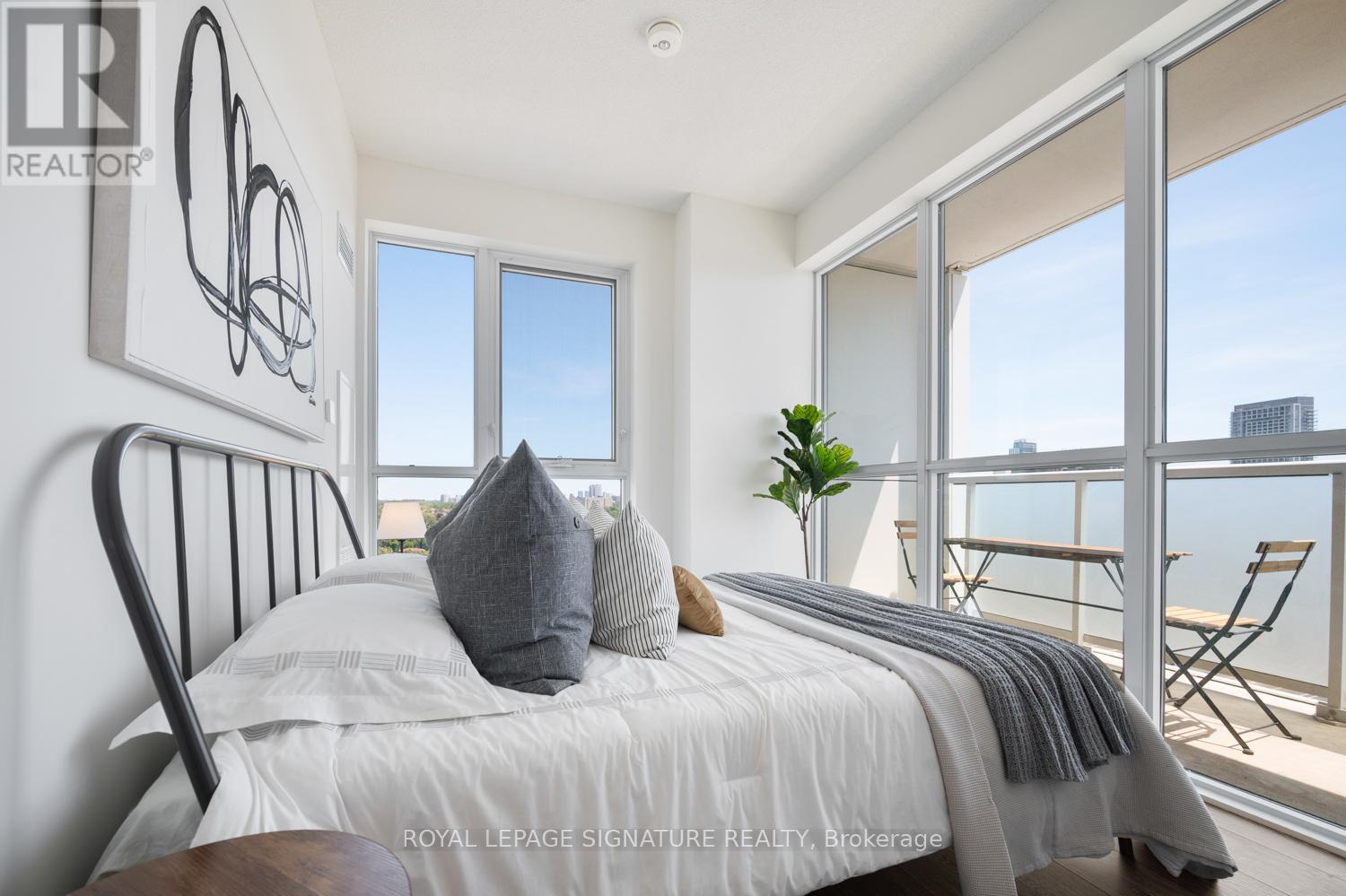 This is More Than a Fair View - It's Luxury Served with a Skyline Cue! Corner unit sunlight and CN Tower in sight... This place? It's got BDE - Big Dream Energy. Tired of cookie-cutter condos that feel meh? This sun-soaked 2yrs new premium suite with 2 full bedrooms is anything but ordinary with windows on two sides, grand 9-foot ceilings, and 2 balconies, it delivers serious light & space. The main terrace balcony flows across one whole side of the suite, from the living room to the bedroom, with clear south east facing 180 degree views on full display (and yes, that's the CN Tower making a cameo, just to flex your city status a little...) The second balcony is a private escape, ideal for sunrise coffee sips. Inside, despite being steps from the DVP & Don Mills Subway Station, the suite is shockingly quiet.... Like, did the city shut down? That quiet. The pretty kitchen is functional & clever, with sleek stainless steel appliances, a movable island that adapts to your lifestyle, with plenty of counter & storage space. Cooking, serving, or dancing around with a glass of wine, this space gets it. Perfect for WFH days, midday naps, or ignoring Slack with intention. And the building? No slouch. There's a modern gym, party room, rooftop terrace, & even a rec room for when your social battery hits 5%. The suite comes with a convenient storage locker to keep your seasonal gear out of sight but within reach. (Looking at you, inflatable paddle board.) You're also walking distance to everything you need & more -- Fairview Mall, groceries, cafes, parks & top-rated schools like Kingslake & Brian PS. With a Walk Score of 85 & Transit Score of 77, you're connected, mobile & always one step ahead of traffic. CN Tower in view, the energy's bright, come for the glow, stay for the life done right. (id:4555)