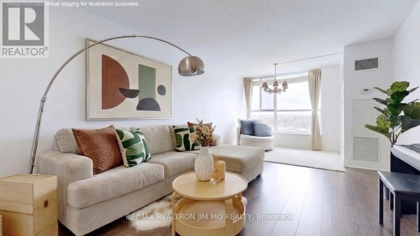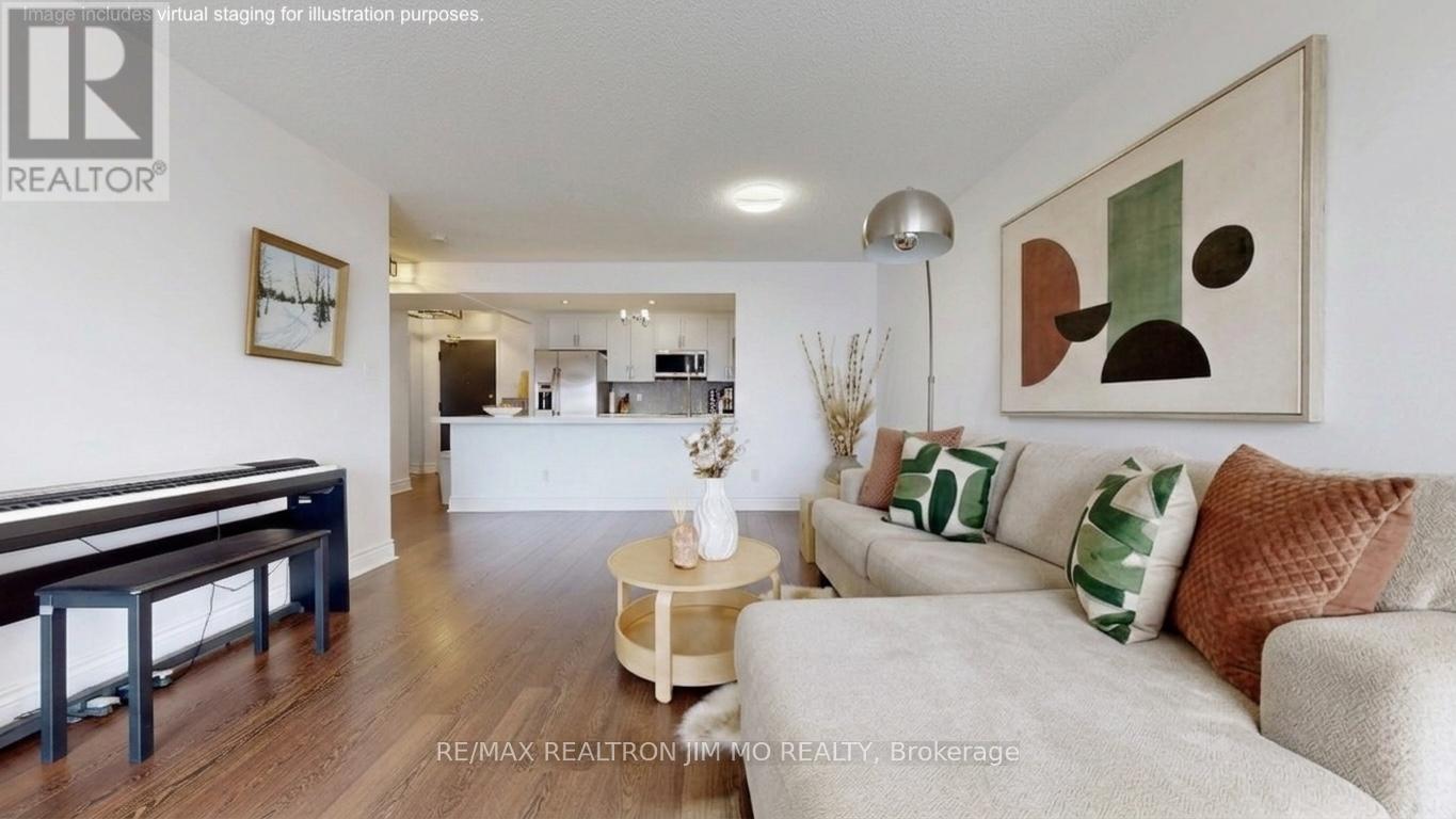 Well renovated spacious 1 bedroom suite with unobstructed views, an exceptional layout, and over 750 sqft of living area. Featuring a large modern kitchen with stainless steel appliances, expansive countertops, and a generous breakfast bar perfect for dining and entertaining. The open-concept living area is bright and inviting with large windows and plenty of natural light. The oversized bedroom easily accommodates a King bed, includes a large closet with built-in shelving, and a custom built-in makeup area with wardrobe, display shelving, and desk. Enjoy a stylish bathroom with large glass shower and ample counter space. Conveniently located close to restaurants, supermarkets, Eglinton GO, TTC, Kennedy Station, New Eglinton Crosstown LRT, STC. Includes 1 parking space and 1 locker for added convenience. A great opportunity for first-time buyers, small families, or down-sizers. Don't miss this chance to call it your home! (id:4555)