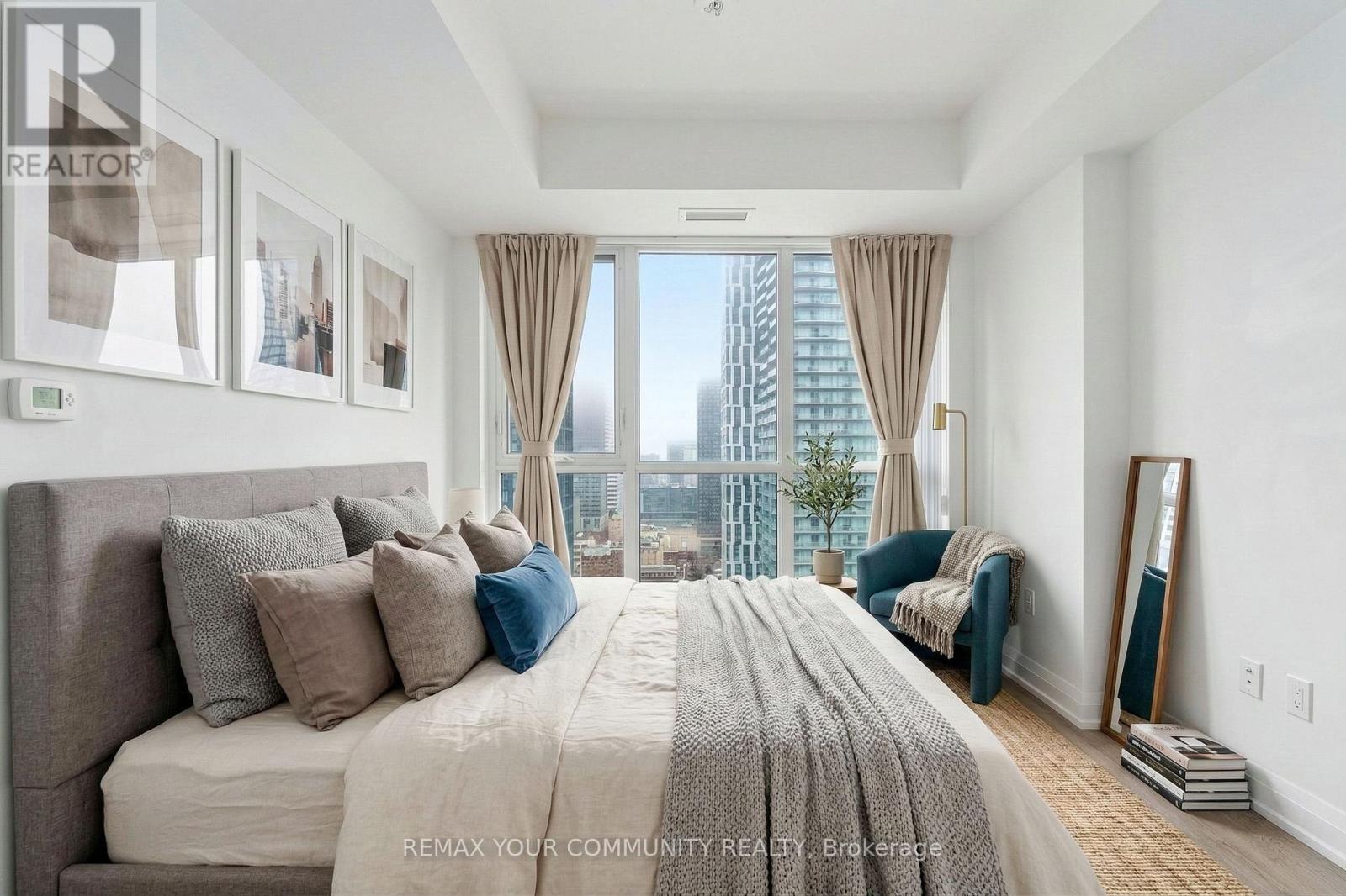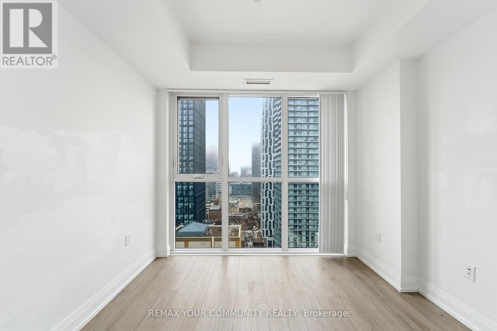 Live in the heart of downtown in this bright and functional l-bedroom, l-bath residence featuring stunning west-facing, unobstructed city and waterfront views through floor-to-ceiling windows. This well designed unit offers 9-foot ceilings, high quality laminate flooring throughout, and a modern open concept kitchen with built-in stainless steel appliances. Enjoy abundant natural light all day and step out onto a spacious balcony. Located just minutes from Yonge & Dundas subway station, TMU, George Brown College, Eaton Centre, Dundas Square, St. Michael's Hospital, and major transit routes. Residents enjoy exceptional amenities including a 24-hour concierge, fitness centre, yoga studio, party room, business and study lounges, TV & fireplace lounge and outdoor terrace. (id:4555)