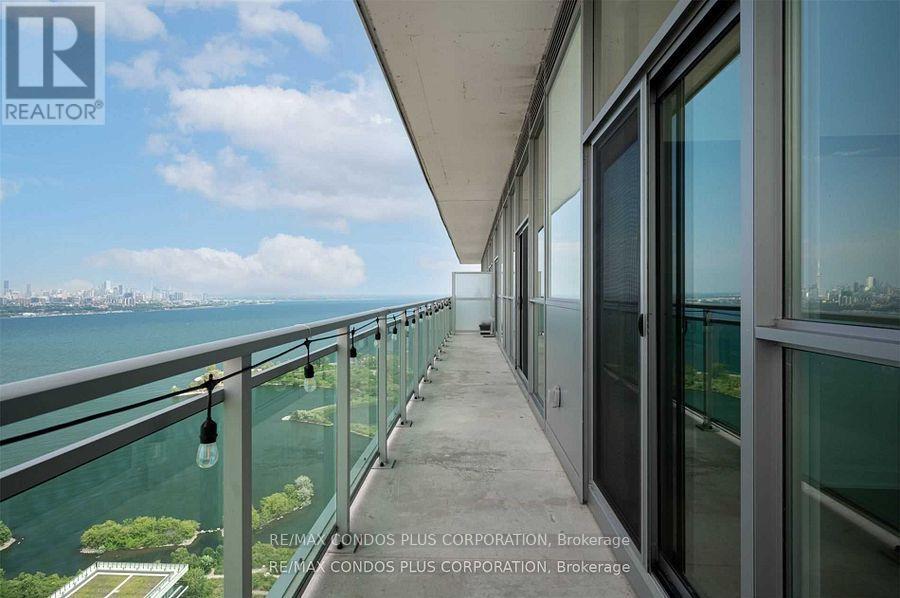 Discover the elegance of this 2+Den Penthouse Suite offering panoramic southeast lake views! The open-concept living area features soaring 10-foot ceilings and expansive floor-to-ceiling windows, creating an airy and light-filled space. The stylish kitchen is equipped with a breakfast bar, luxurious stone countertops, and top-of-the-line built-in appliances. The spacious primary bedroom comes with a walk-in closet and a 4-piece ensuite bathroom. The den offers versatile potential as a home office or third bedroom.Indulge in waterfront living at its finest, with an outdoor pool and hot tub overlooking the lake. Other fantastic amenities include a car wash station, yoga room, dog washing station, saunas, BBQ area with seating, ping pong table, billiards room, guest suites, and golf simulation. Situated in the vibrant Humber Bay Shores, you're just a short stroll from the lake, trendy shops, restaurants, cafes, parks, and picturesque walking and cycling trails. Public transit options such as TTC and Go Train are easily accessible, and you're only 10 minutes from downtown via the Gardiner! (id:4555)