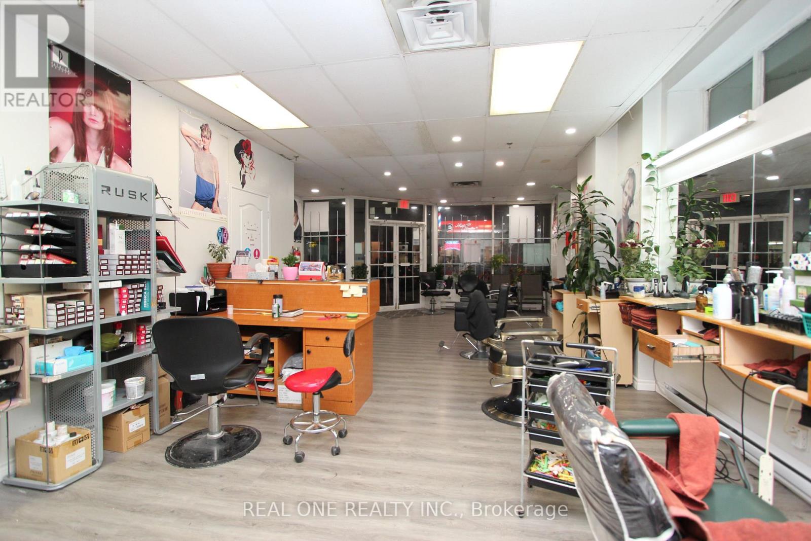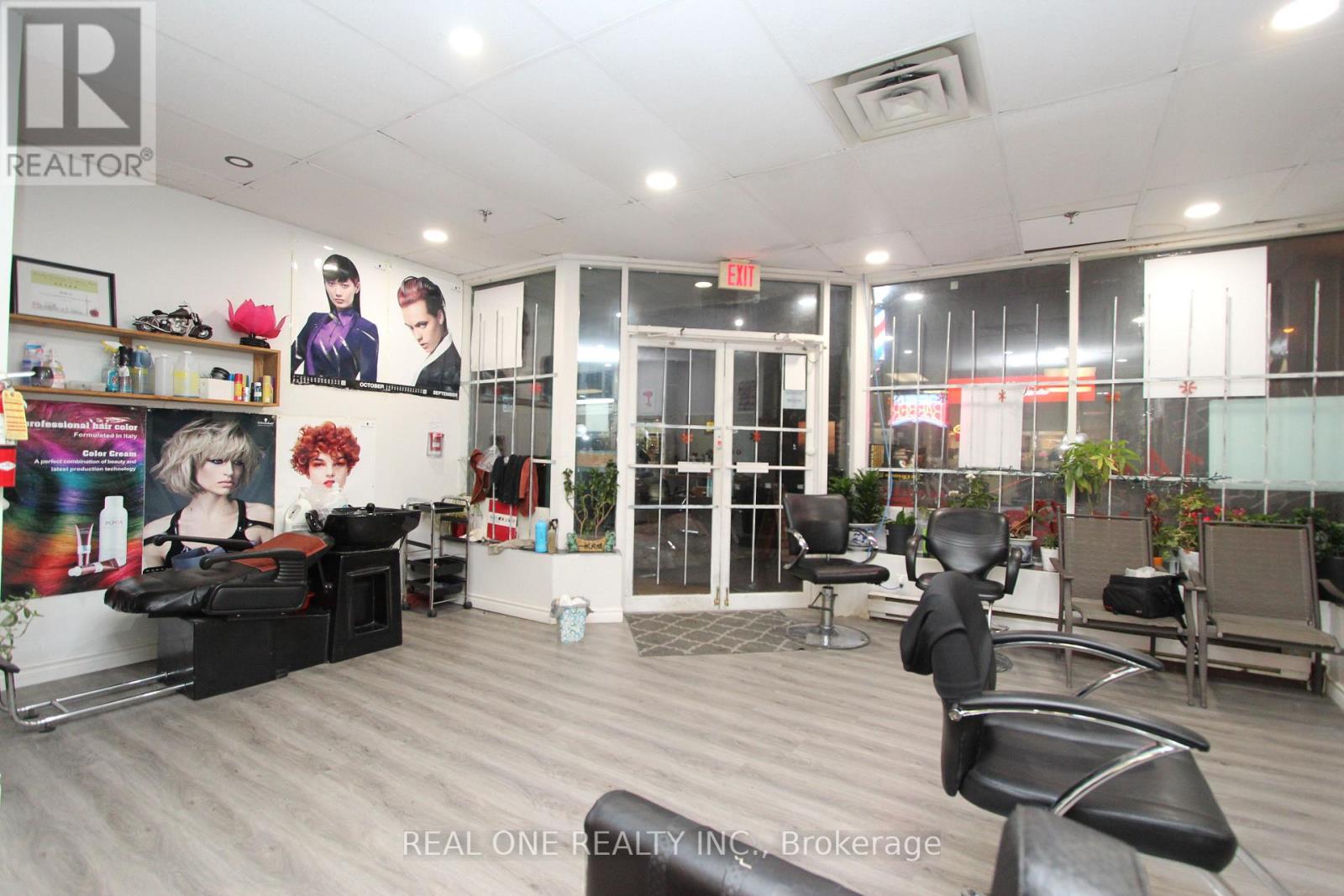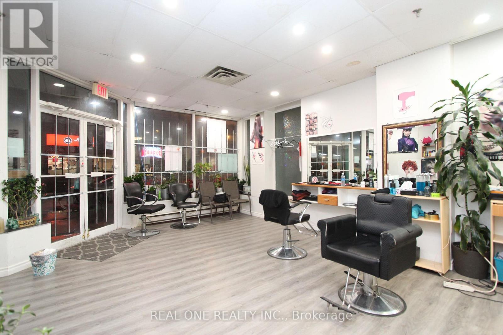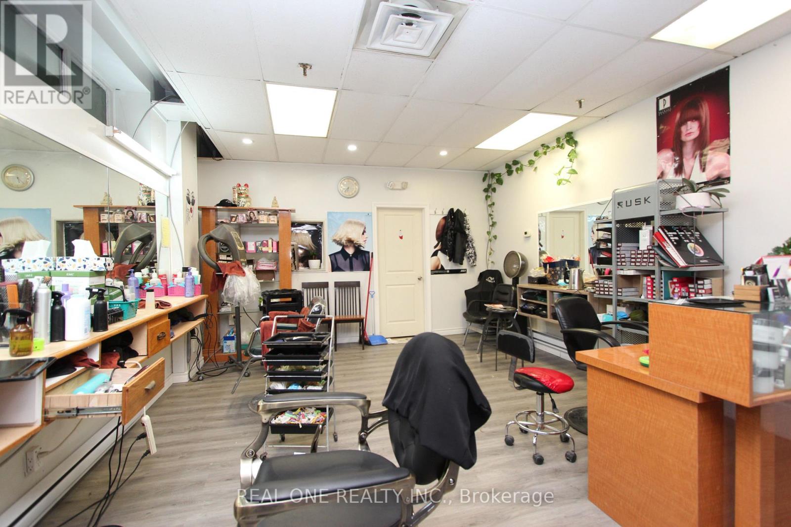 Excellent location near major street, easy access, prominent location, wider frontage, appoxi. 900 square feet, currently used as a hair salon. Spacious layout, bright, large windows, double entrance doors, two rooms at the back, 1 washroom. This is a lease assignment. (id:4555)