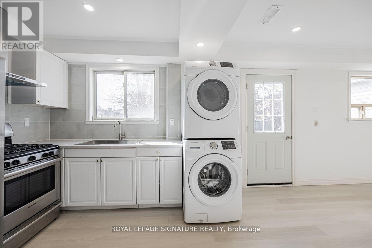2-bedroom apartment (NOT a basement). Renovated, main/ ground floor unit, with 8 ft ceiling, ground-floor access with no stairs, direct access to the backyard, your own private laundry (washer & dryer) machine, and steps away from your unobstructed parking spot. Very safe quiet neighbourhood, few minutes walk from Finch or Victoria Park TTC bus stops, direct bus to subway, close walk to Our Lady of Mount Carmel, Cherokee Public, Epiphany of our Lord, Seneca, Shawnee Park with tennis courts, trail and a new playground. Virtual staging is done in the living room. (id:4555)