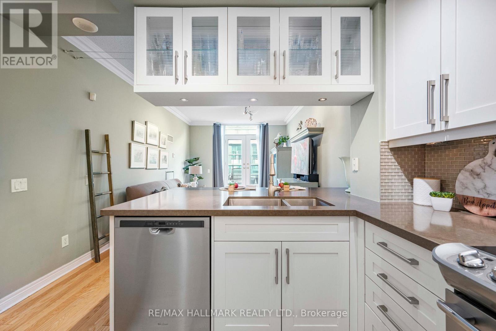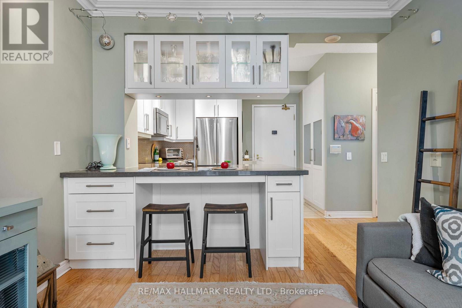 Amazing opportunity for a rare one bedroom condo of its type in one of the most sought after buildings in the Beach(es). This is an ideal unit for downsizers, starters, investors, or someone looking for a pied a terre. This excellent space includes an updated kitchen with newer white cabinets, caesar stone counters, stainless steel appliances and breakfast bar. There are two walkouts to a sun drenched balcony with both east and south exposure for seasonal views of Lake Ontario. Hardwood floors throughout, and ensuite laundry. This wonderful unit also comes with parking and a locker. Upscale building amenities include exercise room, library, guest suites, and 24 hour concierge for added safety. It's just steps from the beach and boardwalk, cycling trails, the 28 acre Woodbine Park with its pond, vast greenspace and many wildlife sightings, various TTC options, and the Queen Street retail strip.Short commute to downtown core. (id:4555)