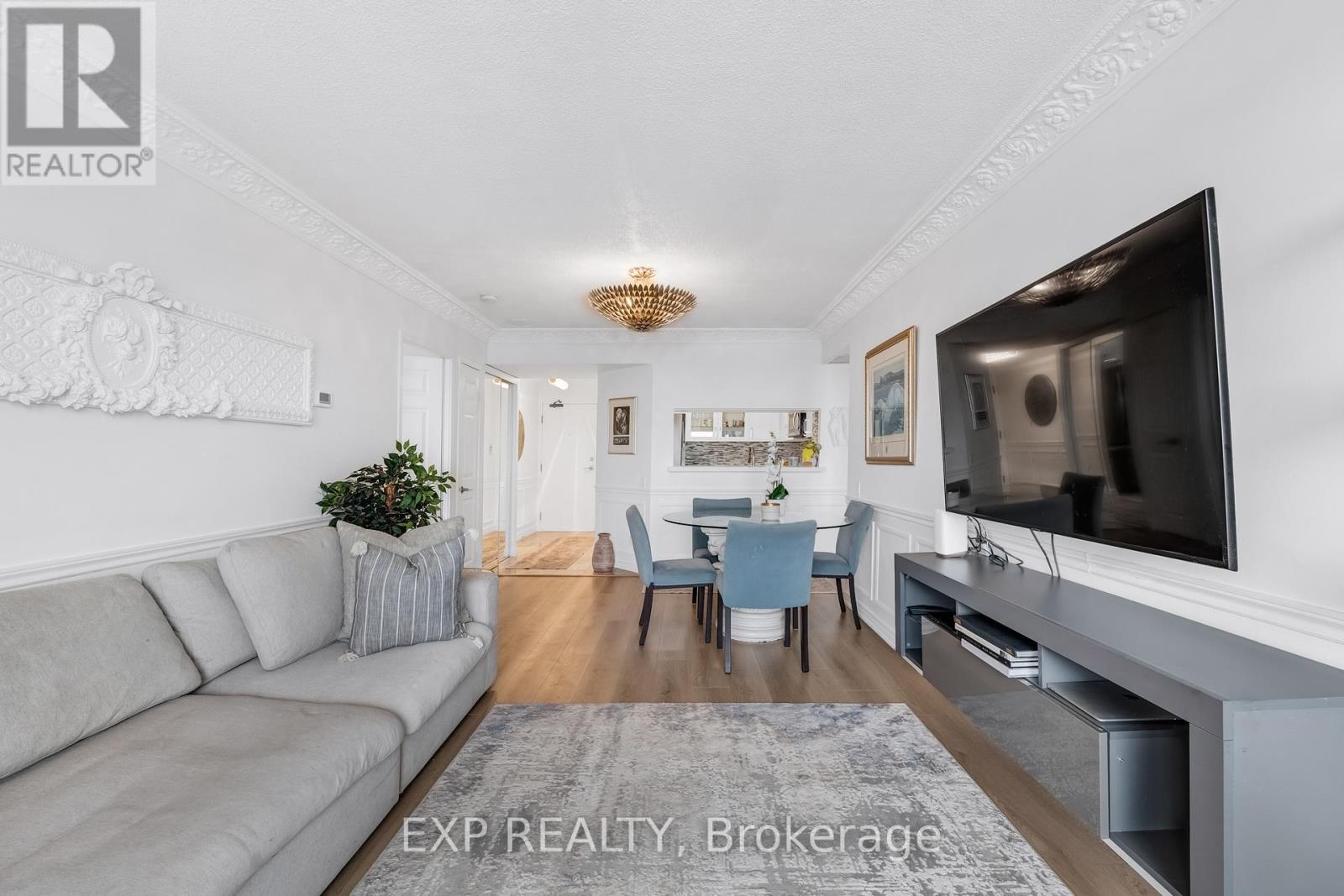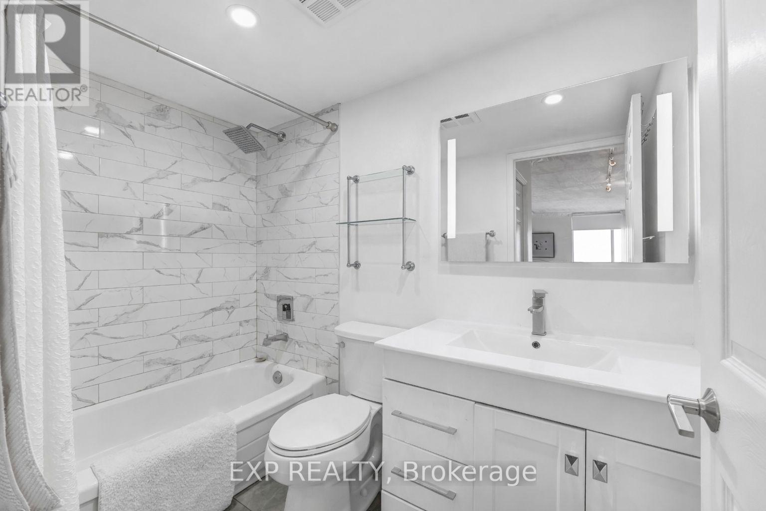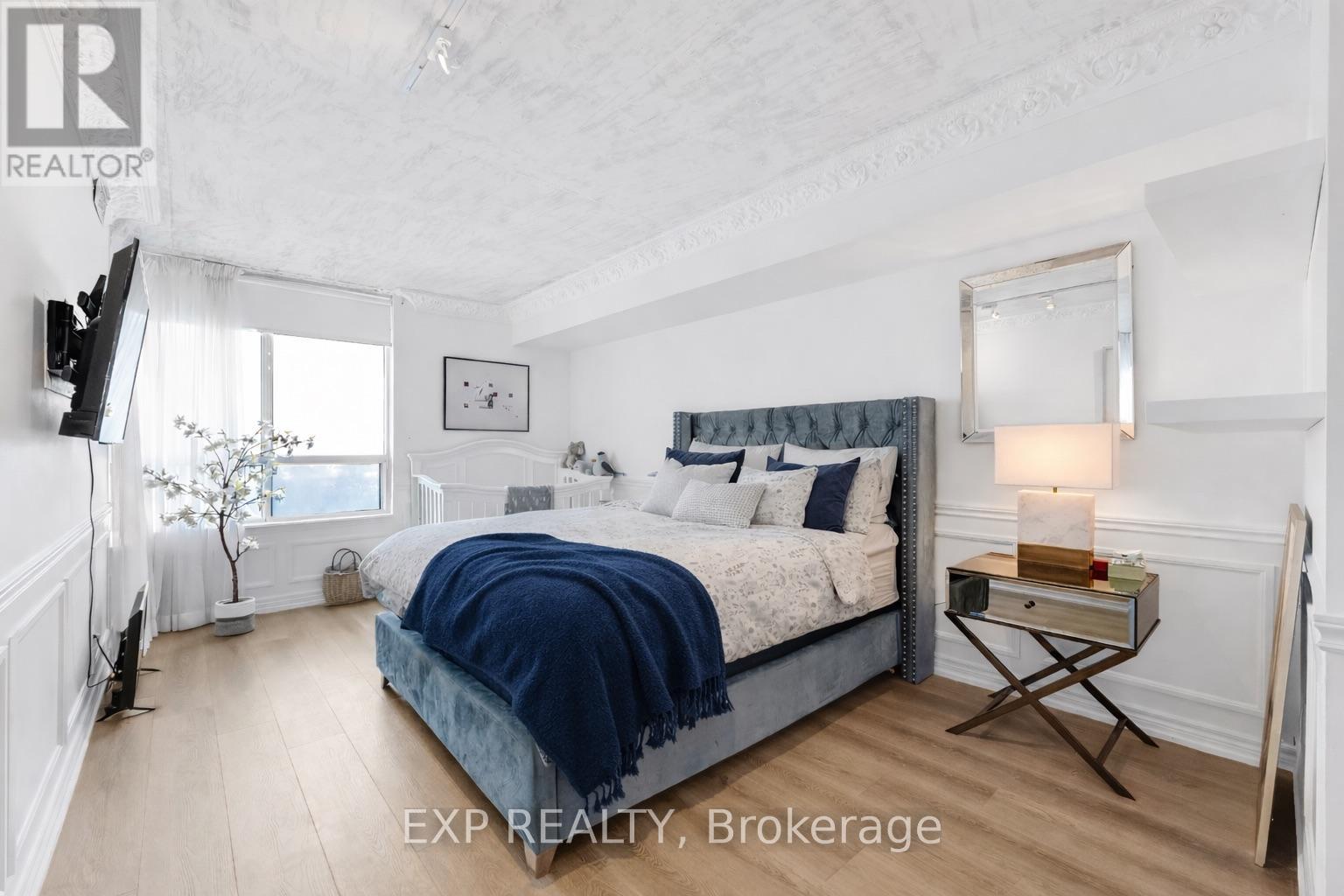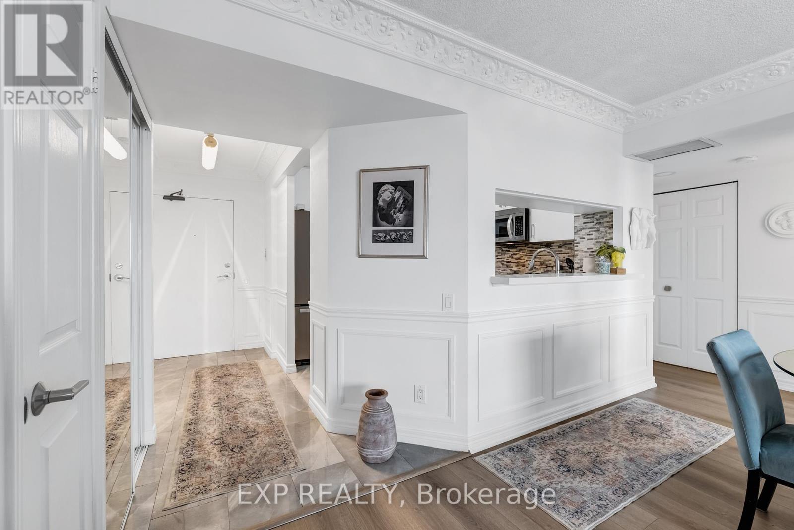 Experience boutique condo living at the highly regarded Crystal Towers, ideally located at 2 Covington Rd in the heart of Englemount-Lawrence. This spacious 2-bed, 2-bath residence offers a bright, functional layout in one of Toronto's most established and walkable neighbourhoods. Boasting 938 sq. ft. of interior space plus a private balcony, this beautifully updated suite features an open-concept layout with 9-ft ceilings and oversized windows with unobstructed eastern exposure, filling the home with natural morning light and skyline views. Updates include new flooring (2025), freshly painted walls, wainscoting & crown mouldings in crisp white, and custom drapery throughout, adding a polished, designer touch. The split-bedroom layout ensures privacy ideal for families, guests, or a home office. The primary bedroom offers a walk-in closet and a fully renovated ensuite (2025) with a modern vanity, while the 2nd bath was also remodelled in 2025 with contemporary finishes. A full-size Samsung front-load W/D adds convenience and move-in-ready appeal. The renovated kitchen (2025) features modern finishes, ample storage, and stainless steel appliances, perfect for everyday living and entertaining. Crystal Towers is a well-managed, amenity-rich building with 24-hr concierge, indoor parking, Sabbath elevator, fitness centre, indoor pool, sauna, party room, and media/theatre room. In a true walker's paradise, this home is steps to Lawrence Plaza (Metro, LCBO, Shoppers Drug Mart) and the vibrant Kosher Corridor (United Bakers Dairy, Bubby's NY Diner, Richmond Kosher Bakery). Families enjoy proximity to Ledbury Park ES/MS and Bialik Hebrew Day School, while commuters have quick access to Allen Rd, Hwy 401, and TTC transit. (id:4555)