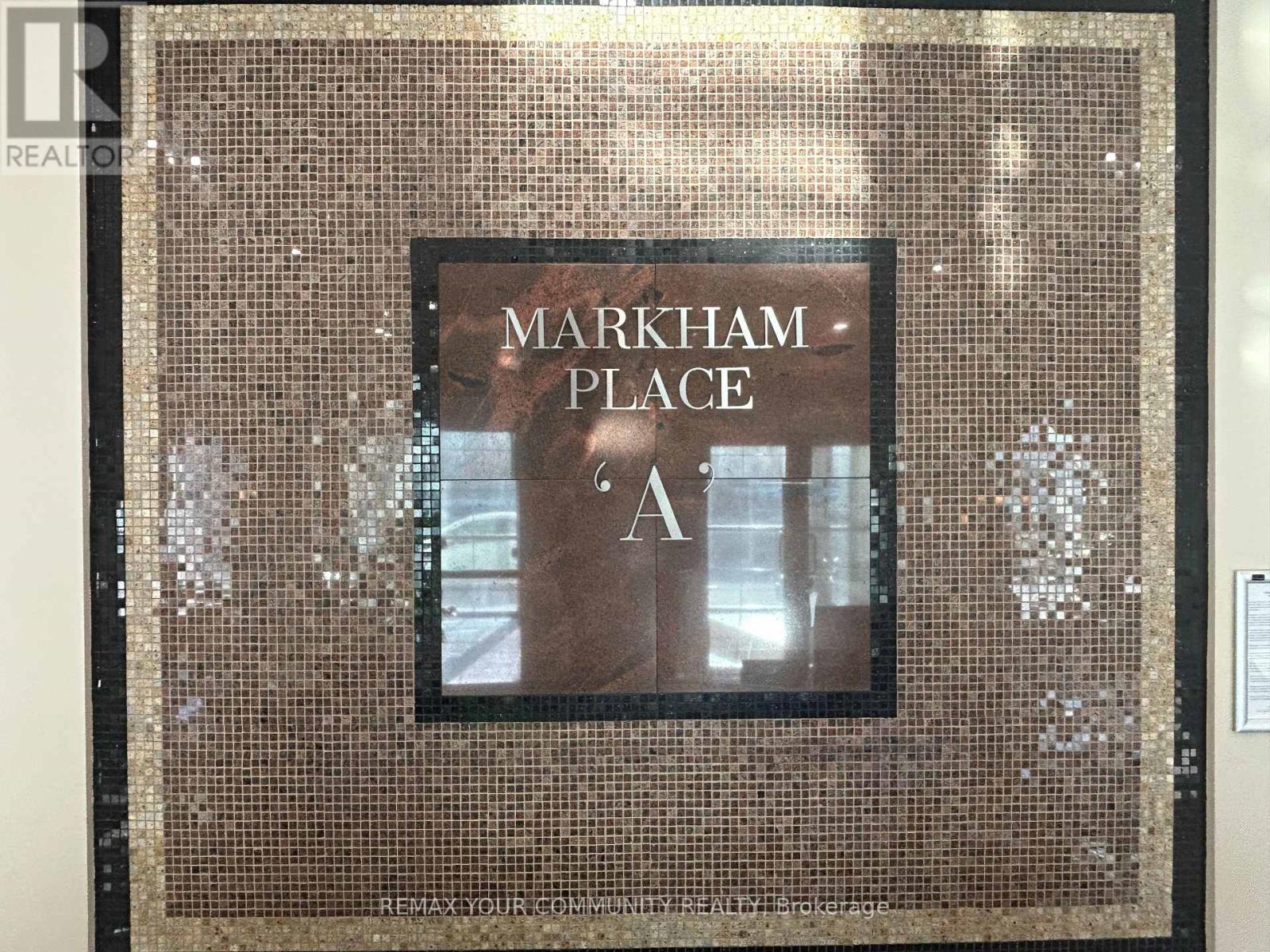 Be pleasantly surprised by this bright, spacious corner condominium suite in the desirable Markham Place community. This thoughtfully designed split-bedroom layout offers privacy, comfort, and abundant natural light from oversized windows facing east and south. Plus rarity of two 4 pc bathrooms and 4 oversized closets in this 850 SF unit! Recent updates-including new laminate flooring, fresh paint throughout, electronic thermostats, and a kitchen faucet-create a clean, move-in-ready experience that perfectly complements a low-maintenance condo lifestyle. Lovingly maintained and lightly lived in! The sensibly sized rooms provide comfortable everyday living, while floor-to-ceiling living room windows frame expansive views and fill the home with natural light. Both bedrooms also enjoy large windows and generous closet space, creating a bright and uncluttered environment enhanced by easy-care hard surface flooring throughout. The open kitchen features granite countertops, a convenient breakfast bar, and four matching appliances-ideal for preparing meals while staying connected with guests and overlooking the living area and panoramic views beyond. Step outside to the impressive near 75-square-foot corner balcony with glass railings, the perfect place to start your morning coffee or unwind in the evening while enjoying sweeping views to the east, south, and west. Residents of Markham Place enjoy a full range of amenities designed for comfortable condo living, including a spacious fitness centre, party room, games room, media room, and a convenient visitor suite for overnight guests. Add the exceptional convenience with just minutes to 401 access! Be sure to explore the media link video and photo gallery to fully appreciate everything this inviting suite has to offer. (id:4555)