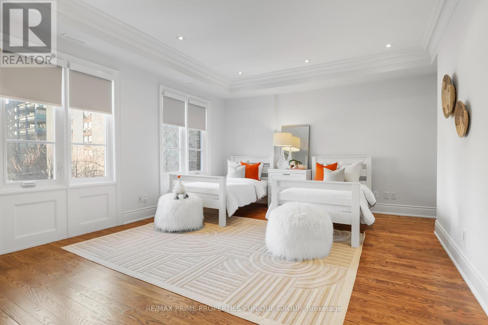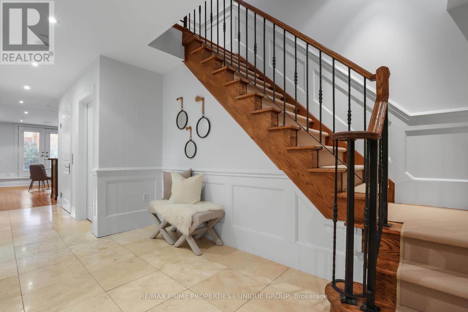 Luxurious Midtown Property. A Detached 2 1/2-storey Georgian-style home with 4,960 sq ft of beautifully finished living space.Custom built in 2008, this exceptional property showcases soaring ceilings, expansive principal rooms, and an open-concept layout ideal for both everyday living and elegant entertaining.Situated on a premium 30 x 174 ft pool-sized lot, set back from the street for added privacy, this remarkable home is located north of St. Clair in prime Midtown Toronto, between Yonge Street and Avenue Road.This 4-bedroom, 5-bathroom residence has been extensively updated, including a stunning new kitchen (2025) featuring quartz counters and modern cabinetry. The main floor offers a private den, and an impressive open-concept dining room, kitchen, and family room. Three sets of double doors open from the great room to a spectacular west-facing terrace - perfect for seamless indoor-outdoor living. Gas fireplaces are located in both the living room and family room.The second floor features a luxurious primary retreat with abundant closet space and a spa-inspired 5-piece ensuite. A second bedroom on this level includes a walk-in closet and private 3-piece ensuite.The third floor offers a beautiful third bedroom suite with a 4-piece ensuite and sliding glass doors leading to a secluded west-facing terrace. A spacious den/storage area on this level presents the option for an additional bedroom.The bright, above-grade lower level boasts a large recreation room and a fourth (or fifth)bedroom. Three double doors lead to an expansive deck with stairs descending to a generous fenced backyard - ideal for family enjoyment and entertaining. Elevator access from the garage services all levels of the home, providing exceptional convenience. A long private driveway with side parking pad and garage offers ample parking options. Steps to fine restaurants, banks, subway, groceries, LCBO, and premier shopping. (id:4555)