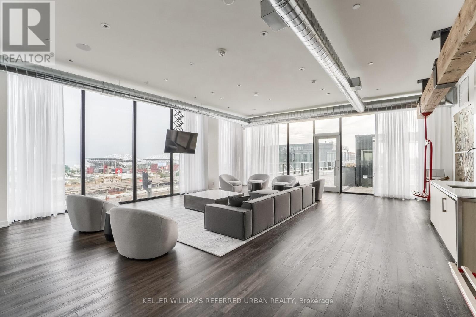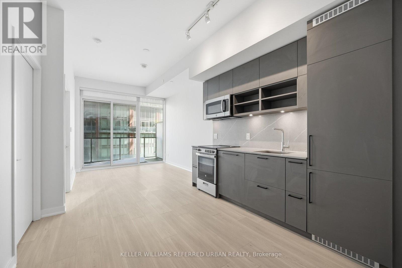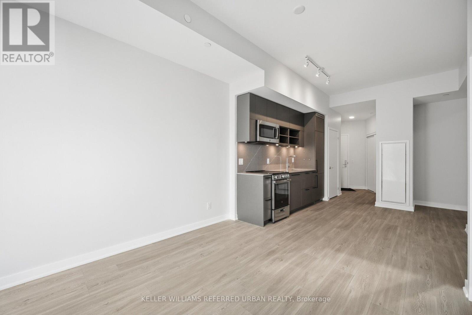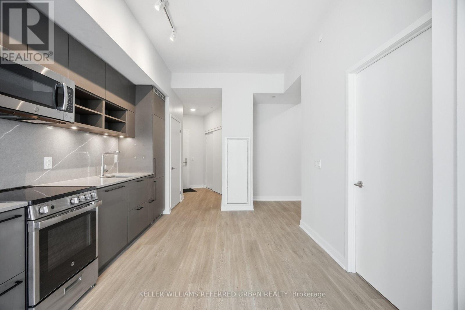 Welcome to Liberty Village's Market Tower. This 1+den, 1-bathroom suite offers 611 sq'. of thoughtfully-designed interior space offering newly installed quality flooring and fresh paint, ideally located on the 15th floor with unobstructed eastern views. Large windows flood the suite with natural light and open onto a sunny private balcony, the perfect spot to enjoy expansive city views and morning sun. The modern kitchen features soft-close cabinetry, built-in appliances, and granite countertops, seamlessly blending style and functionality. The versatile den is ideal for a home office or guest space, while the thoughtfully designed layout maximizes both comfort and usability. Situated in Toronto's vibrant West End, you're just steps from Liberty Village dining and cafes, King West nightlife, Trinity Bellwoods Park, and waterfront trails. Commuters will appreciate easy access to the Gardiner Expressway and DVP, Exhibition GO Station, and the Waterfront streetcar loop, making travel throughout the city effortless. (id:4555)