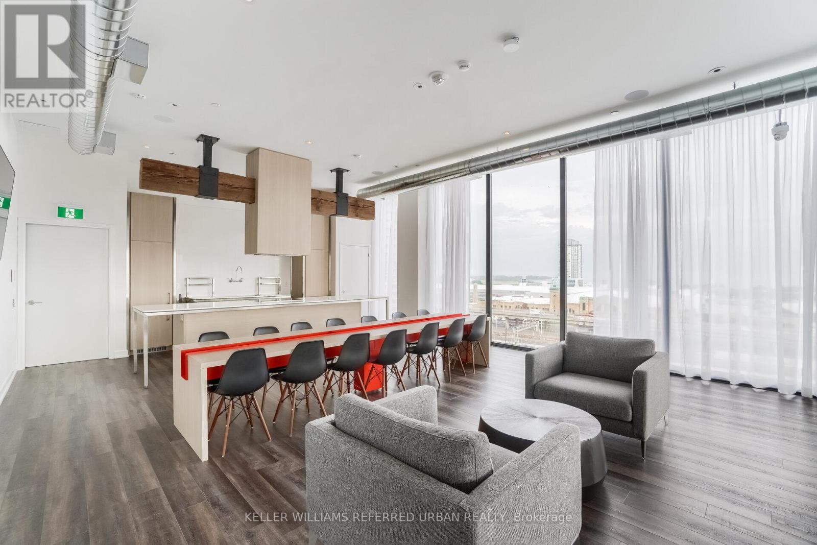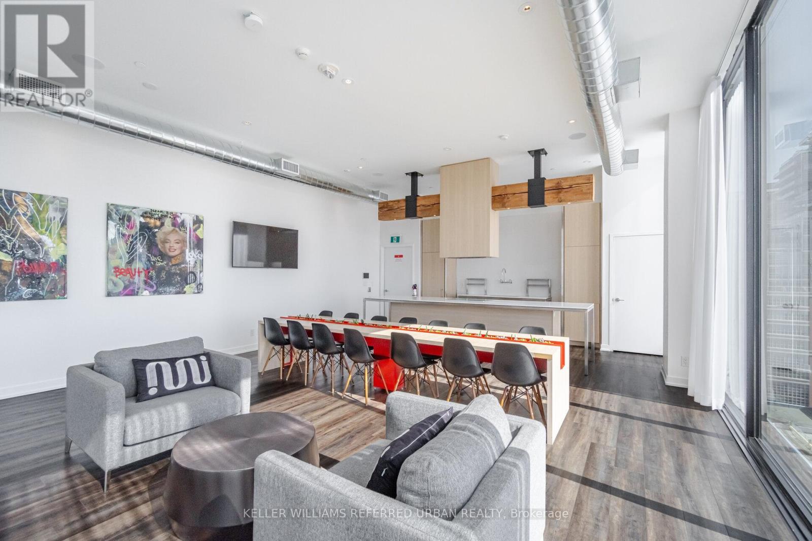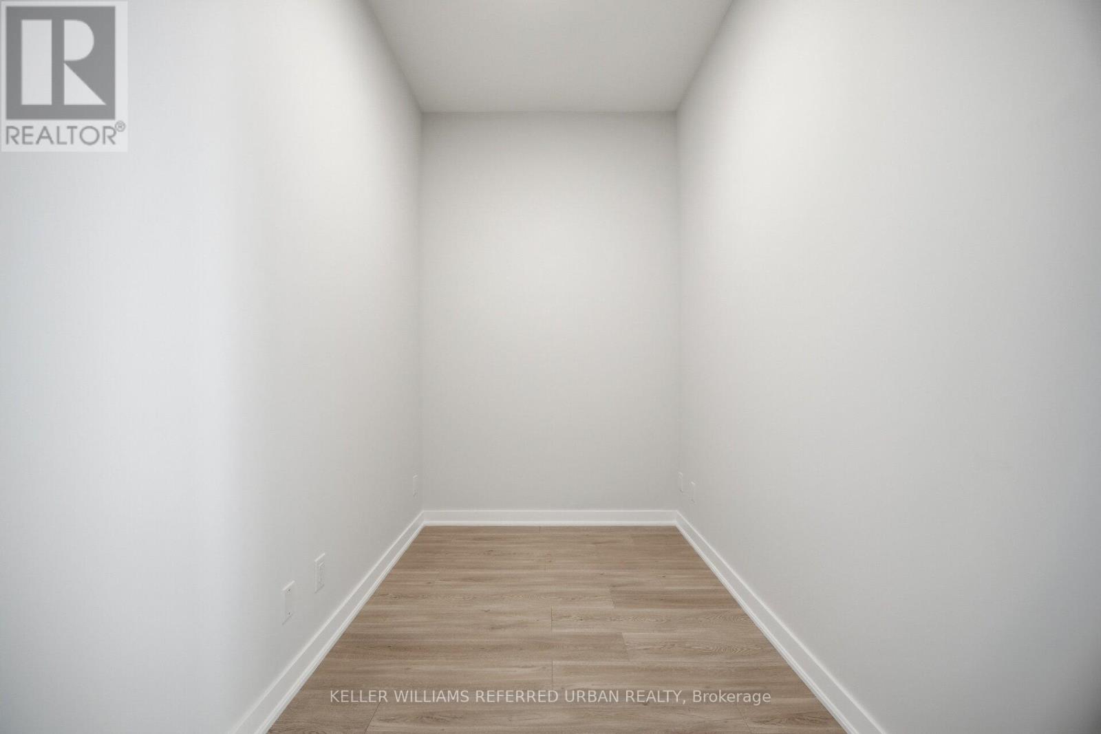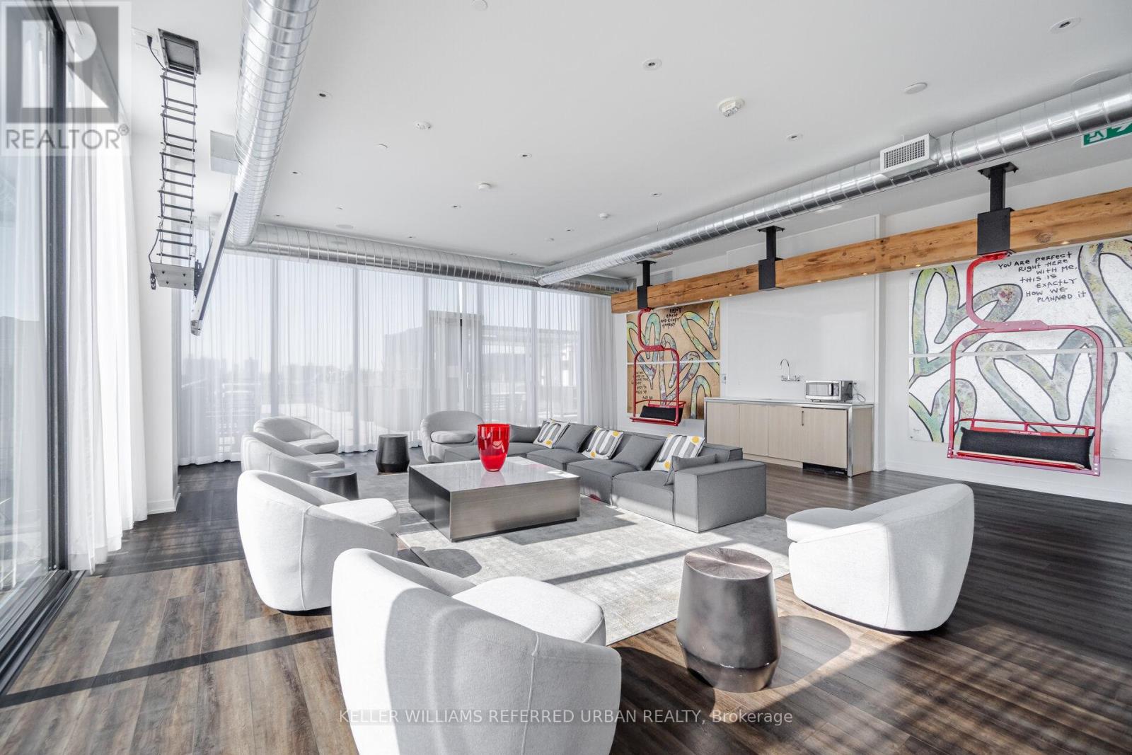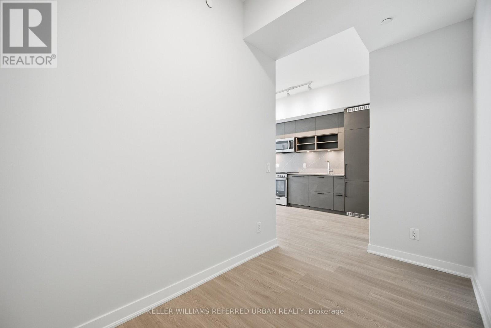 Welcome to Liberty Village's Market Tower. This 1+den, 1-bathroom suite offers 611 sq'. of thoughtfully-designed interior space offering newly installed quality flooring and fresh paint, ideally located on the 15th floor with unobstructed eastern views. Large windows flood the suite with natural light and open onto a sunny private balcony, the perfect spot to enjoy expansive city views and morning sun. The modern kitchen features soft-close cabinetry, built-in appliances, and granite countertops, seamlessly blending style and functionality. The versatile den is ideal for a home office or guest space, while the thoughtfully designed layout maximizes both comfort and usability. Situated in Toronto's vibrant West End, you're just steps from Liberty Village dining and cafes, King West nightlife, Trinity Bellwoods Park, and waterfront trails. Commuters will appreciate easy access to the Gardiner Expressway and DVP, Exhibition GO Station, and the Waterfront streetcar loop, making travel throughout the city effortless. (id:4555)
