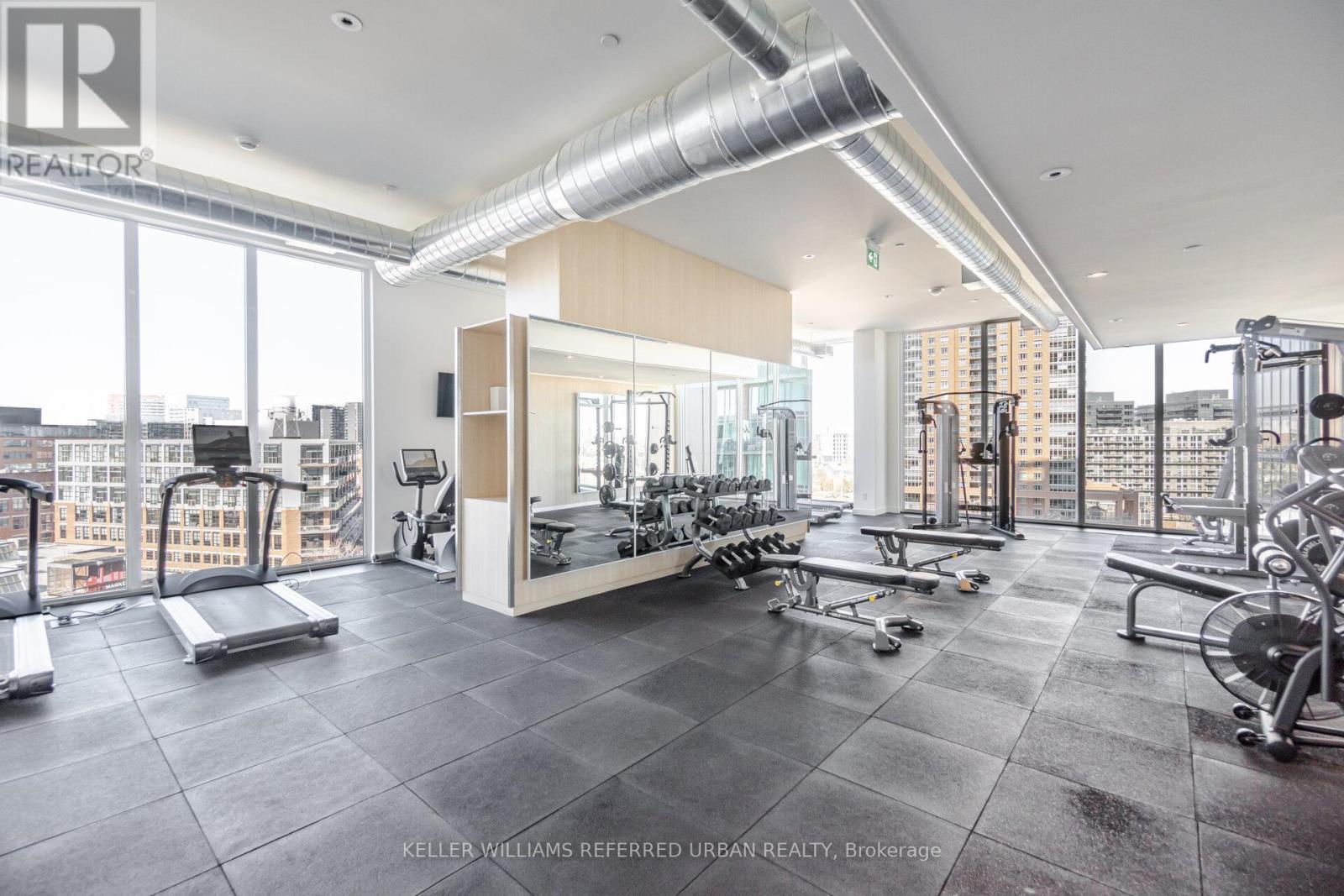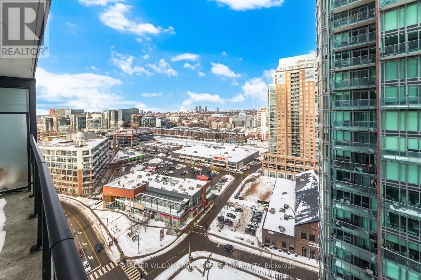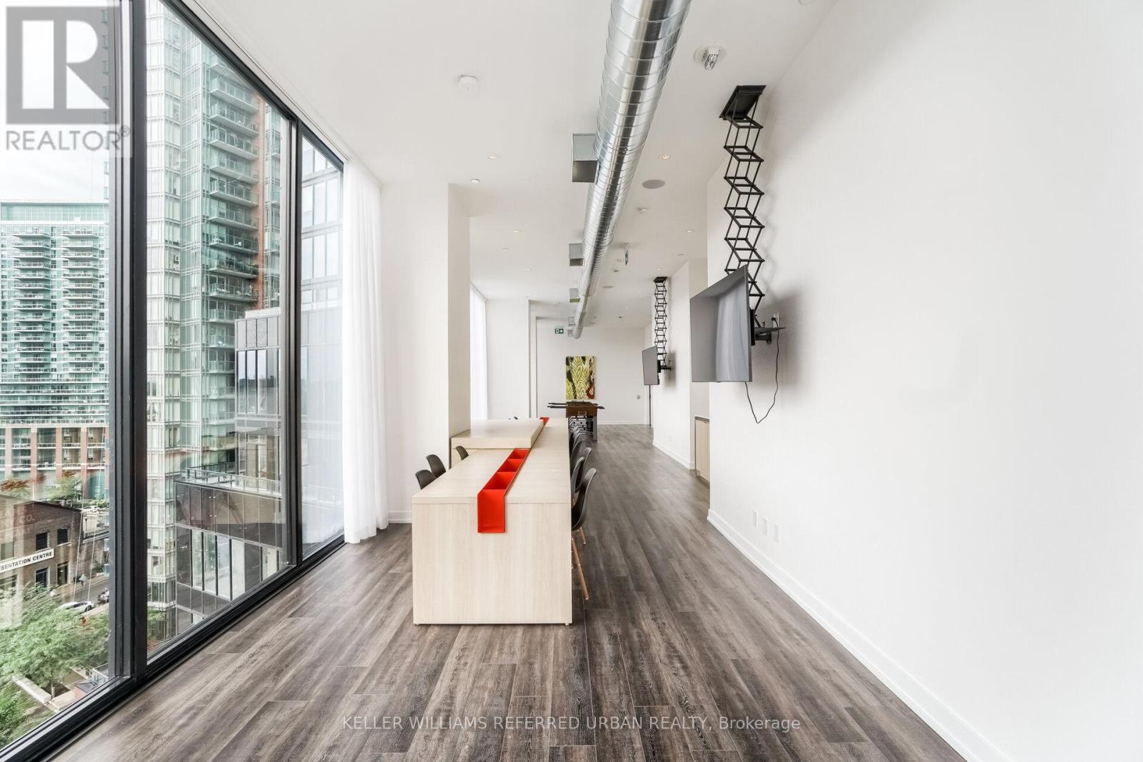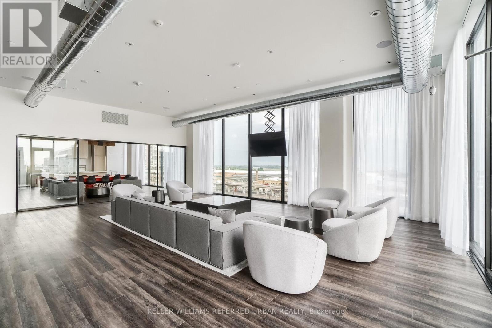 Welcome to Liberty Village's Market Tower. This 1+den, 1-bathroom suite offers 611 sq'. of thoughtfully-designed interior space offering newly installed quality flooring and fresh paint, ideally located on the 15th floor with unobstructed eastern views. Large windows flood the suite with natural light and open onto a sunny private balcony, the perfect spot to enjoy expansive city views and morning sun. The modern kitchen features soft-close cabinetry, built-in appliances, and granite countertops, seamlessly blending style and functionality. The versatile den is ideal for a home office or guest space, while the thoughtfully designed layout maximizes both comfort and usability. Situated in Toronto's vibrant West End, you're just steps from Liberty Village dining and cafes, King West nightlife, Trinity Bellwoods Park, and waterfront trails. Commuters will appreciate easy access to the Gardiner Expressway and DVP, Exhibition GO Station, and the Waterfront streetcar loop, making travel throughout the city effortless. (id:4555)