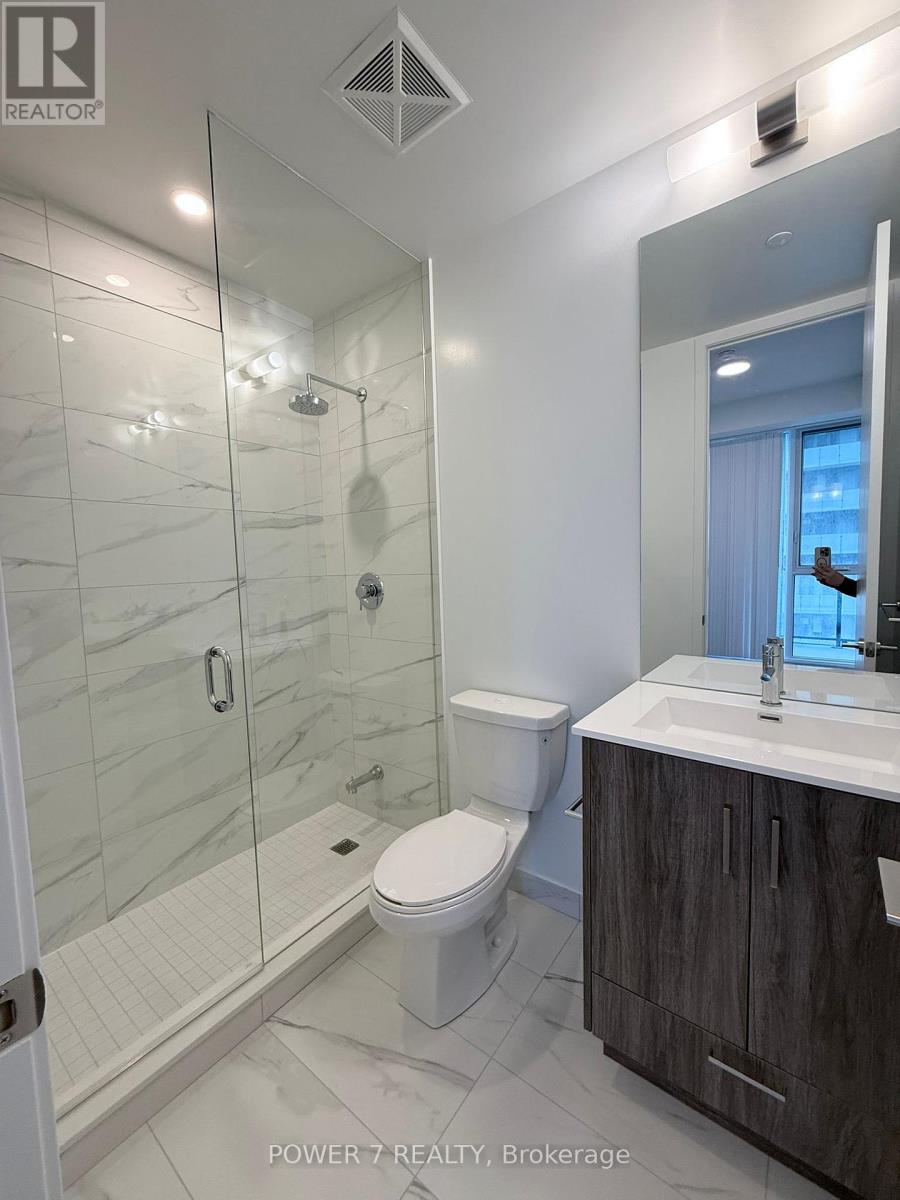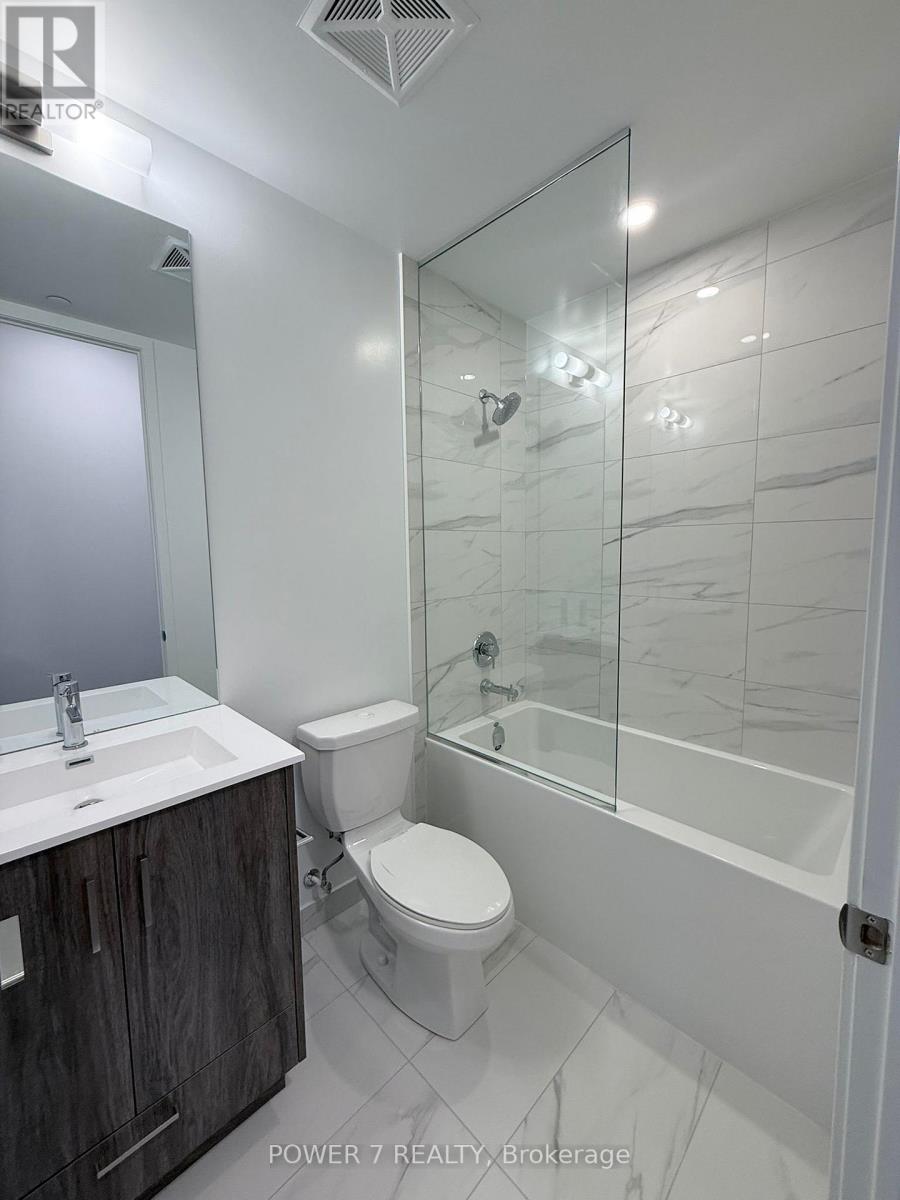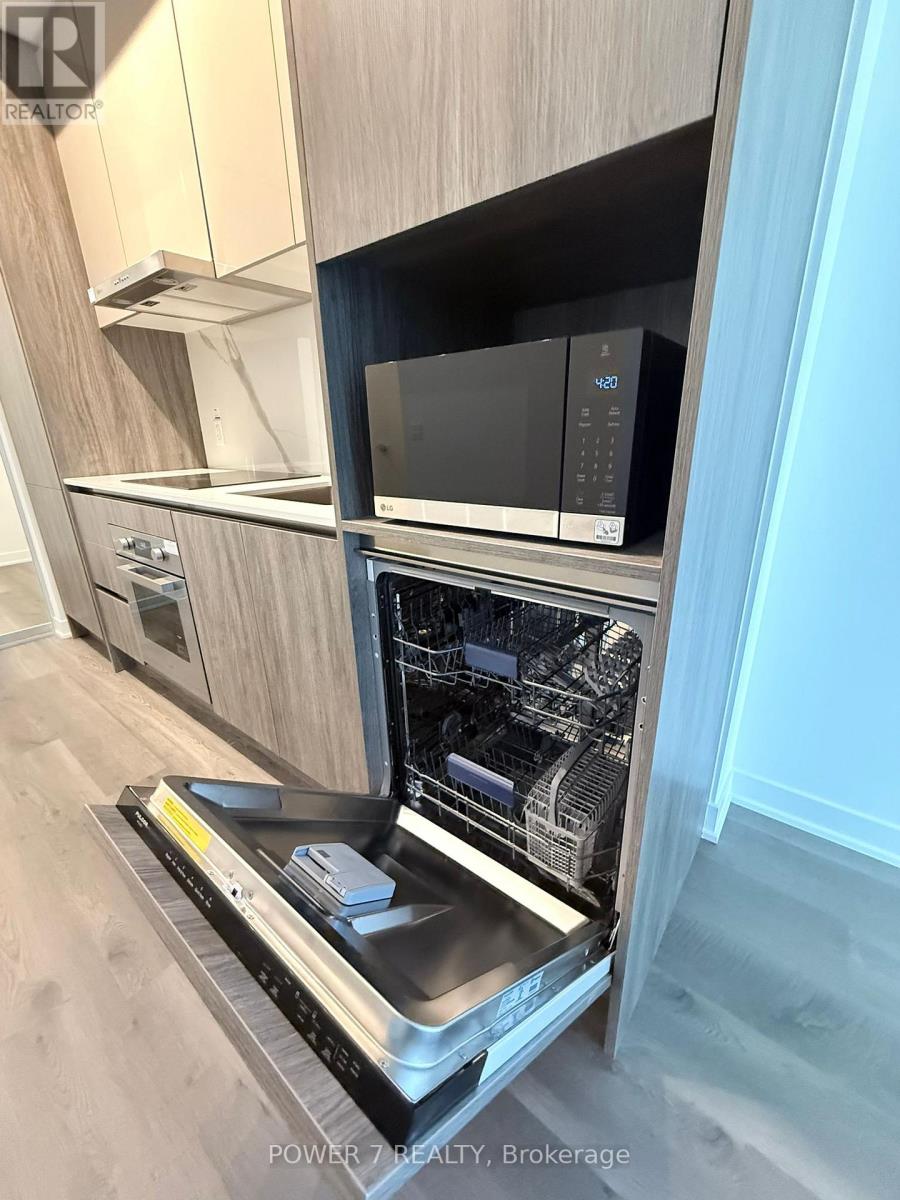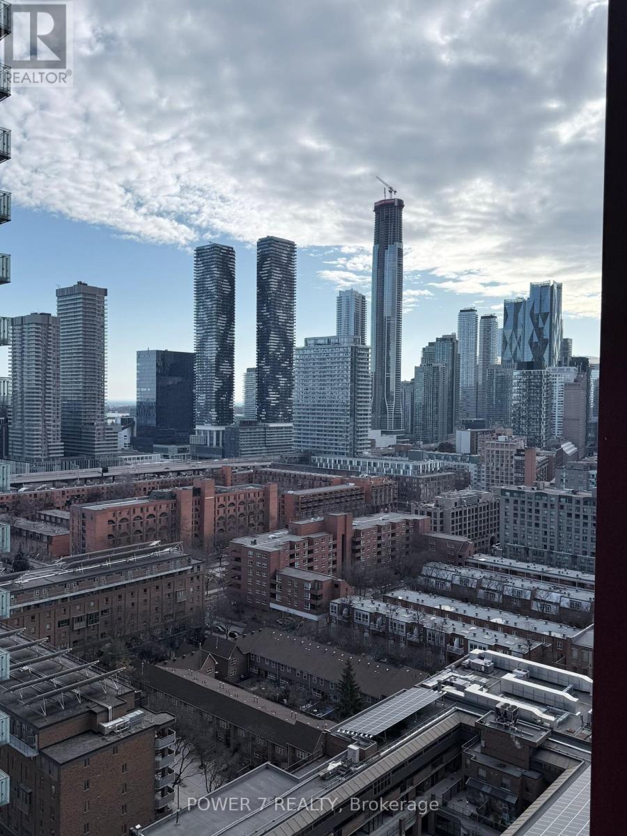 One-of-a-kind 1+den, 2-bath suite at The Whitfield by Menkes, offering contemporary finishes, smart layout and a private balcony in the heart of downtown's St. Lawrence neighborhood. Welcome to 180 Front St E #2308 at The Whitfield Residences on Front, a striking 45-storey landmark by Menkes and Core Development, perfectly positioned at Front & Sherborne with effortless access to the Financial District, Union Station, the Esplanade, St. Lawrence Market, Distillery District, Scotiabank Arena and the waterfront. This well-designed "Distillery 581" floor plan offers approximately 581 sq.ft. of interior living space plus a generous 102 sq.ft. balcony (total 683 sq.ft.), featuring an open-concept kitchen/dining/living area, separate bedroom with closet, two full bathrooms and a highly functional den that works beautifully as a home office or guest space. The sleek linear kitchen showcases custom two-tone cabinetry, quartz counters, porcelain slab backsplash, integrated brand-name appliances and an Energy Star stacked washer/dryer, all framed by floor-to-ceiling, energy-efficient windows that flood the suite with natural light. (id:4555)