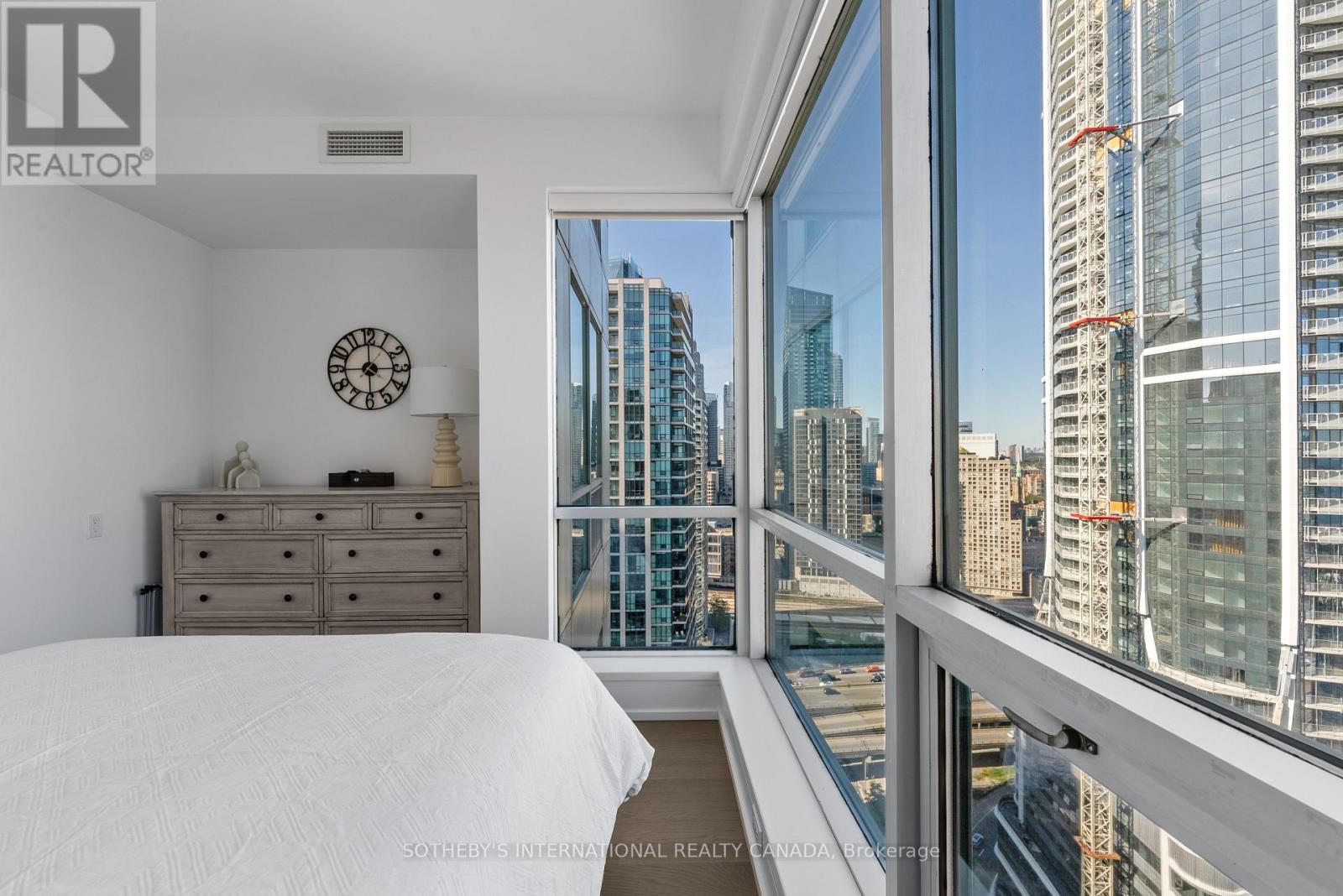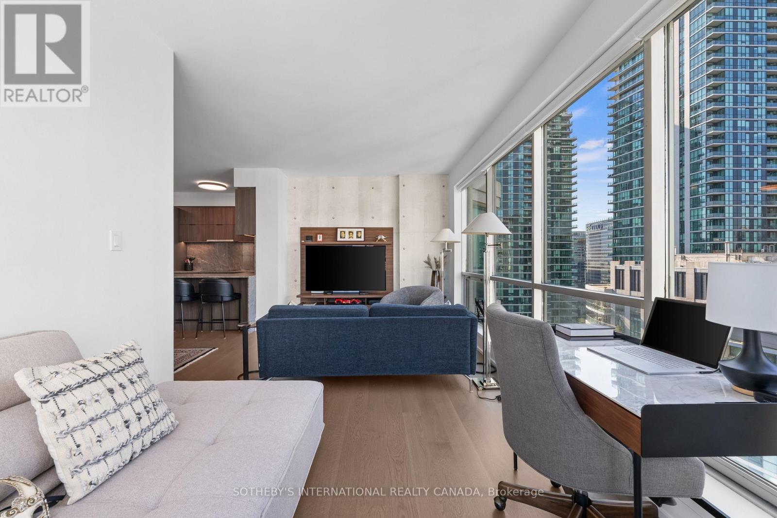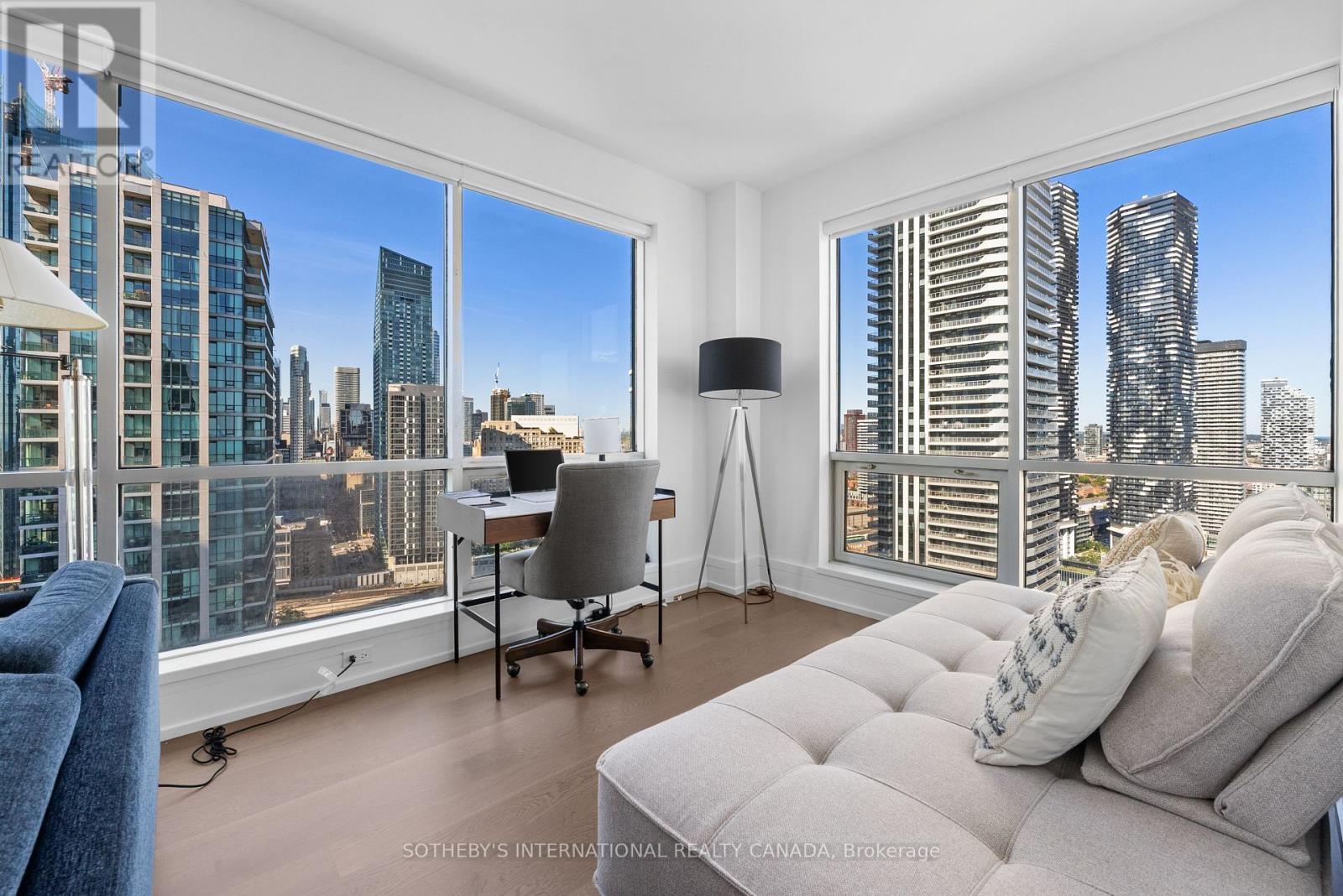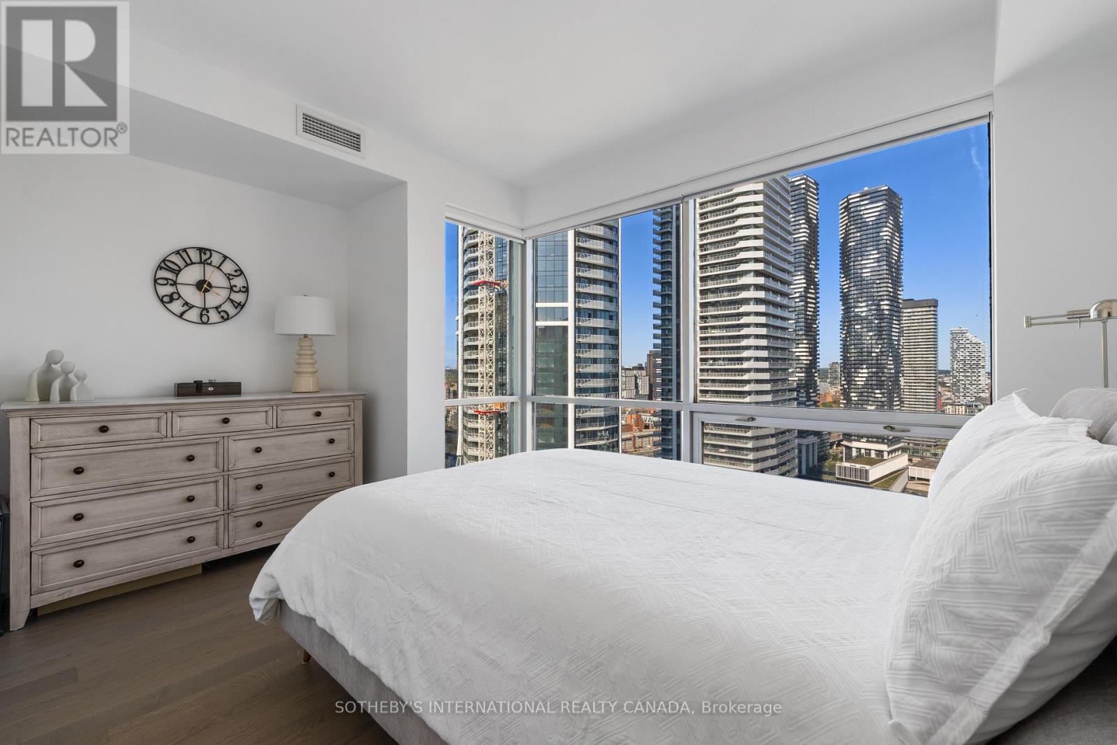 Experience unparalleled luxury in this stunning, recently renovated sub-penthouse corner unit at Toronto's prestigious Residences of the World Trade Centre. This is more than a condo; it's a lifestyle statement. Step into a sophisticated interior boasting Manhattan-inspired design and breathtaking panoramic city views through expansive floor-to-ceiling windows. Meticulously renovated with designer finishes, this magazine-worthy suite features a gourmet kitchen with custom cabinetry, integrated Fisher & Paykel appliances (Fridge, Oven, Microwave, Dishwasher), a Blomberg stacked Washer/Dryer, leather-finish countertops, a polished backsplash, and a striking island waterfall. The spa-like bathroom offers matching vanity and top from the kitchen units, ceramic tile flooring, and floor-to-ceiling tiling. Elegant details abound, including a designer lighting package, exquisite custom trim (8"), wood window sills, and custom doors. Smart features enhance convenience with a built-in closet and TV centre, auto blinds, and a release camera. Ample storage, an oversized parking spot, and a dedicated storage locker ensure a clutter-free lifestyle. Indulge in resort-style amenities, including indoor/outdoor pools, a golf simulator, a state-of-the-art gym, guest suites, multiple party rooms, billiards, a carwash, visitor parking, squash/basketball courts, a library, games room, board room, and theatre. Enjoy ultimate convenience with access to transit, Union Station, PATH, Scotiabank Arena, Rogers Centre, Centre Island, Sugar Beach, Distillery District, and St. Lawrence Market. This is your chance to own an extraordinary sub-penthouse in one of Toronto's most coveted locations. Schedule your private viewing today! (id:4555)
