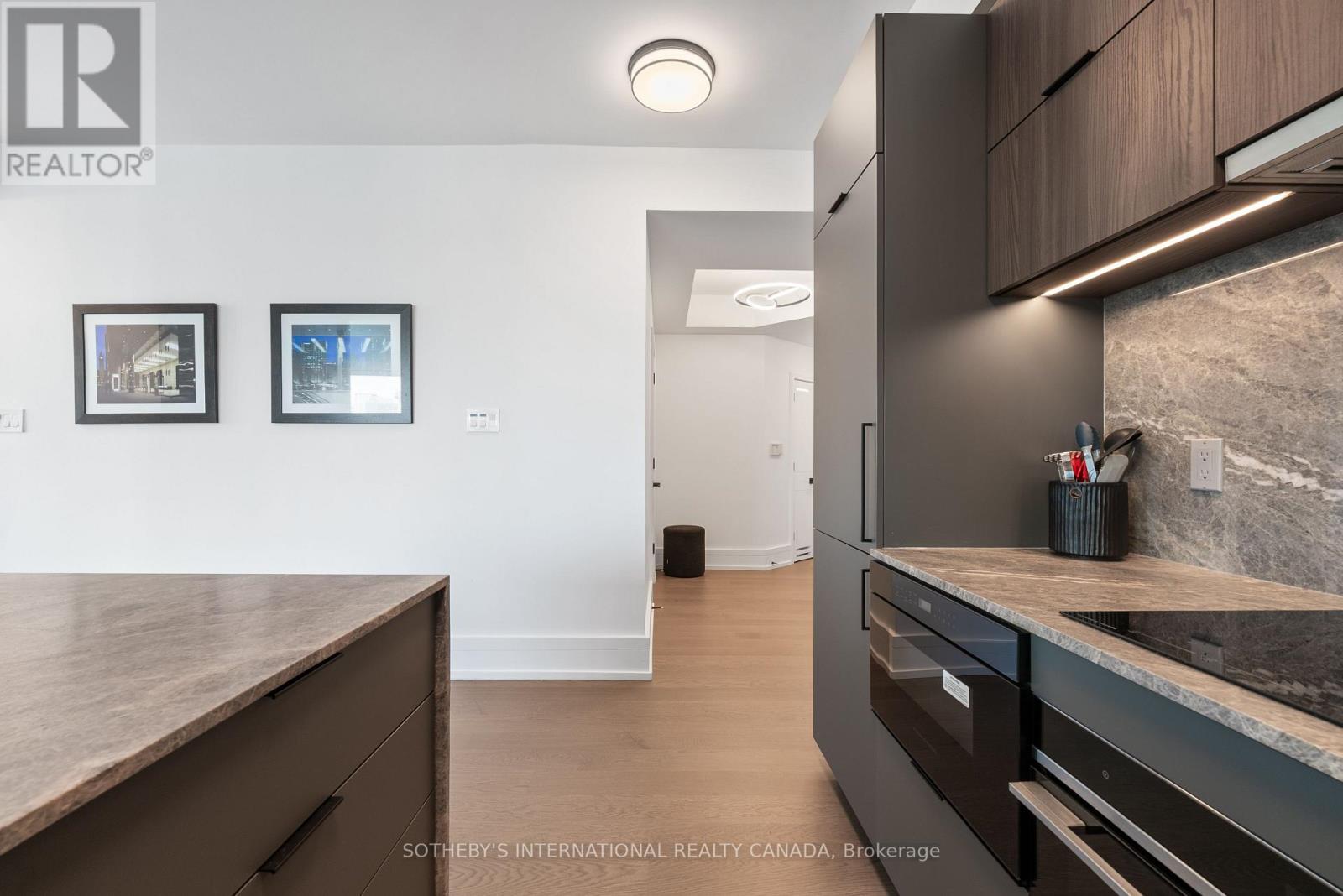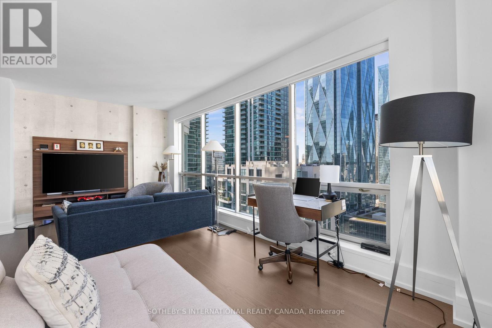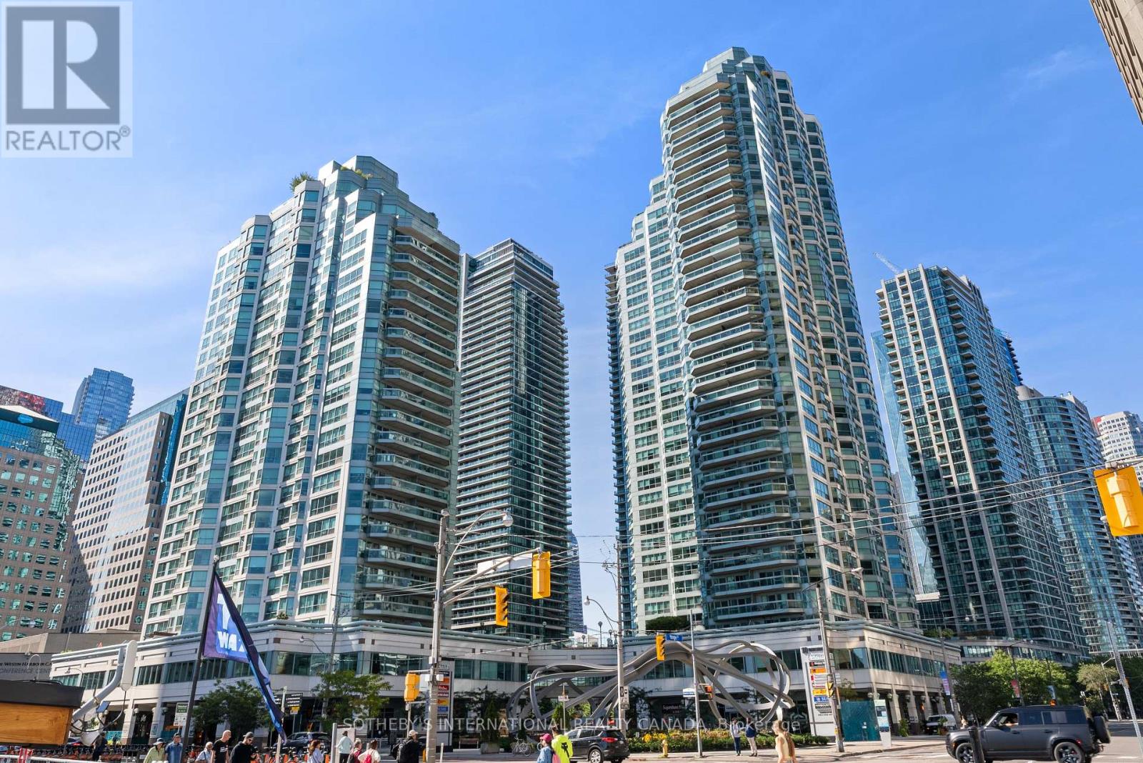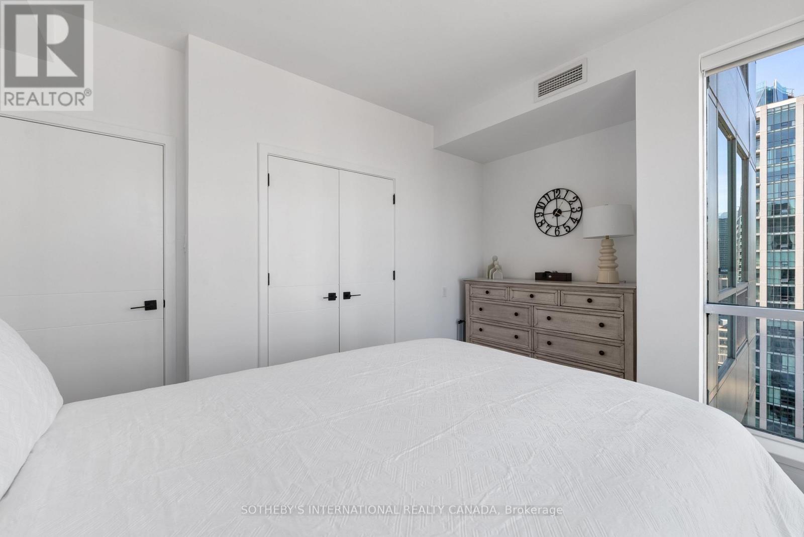 Experience unparalleled luxury in this stunning, recently renovated sub-penthouse corner unit at Toronto's prestigious Residences of the World Trade Centre. This is more than a condo; it's a lifestyle statement. Step into a sophisticated interior boasting Manhattan-inspired design and breathtaking panoramic city views through expansive floor-to-ceiling windows. Meticulously renovated with designer finishes, this magazine-worthy suite features a gourmet kitchen with custom cabinetry, integrated Fisher & Paykel appliances (Fridge, Oven, Microwave, Dishwasher), a Blomberg stacked Washer/Dryer, leather-finish countertops, a polished backsplash, and a striking island waterfall. The spa-like bathroom offers matching vanity and top from the kitchen units, ceramic tile flooring, and floor-to-ceiling tiling. Elegant details abound, including a designer lighting package, exquisite custom trim (8"), wood window sills, and custom doors. Smart features enhance convenience with a built-in closet and TV centre, auto blinds, and a release camera. Ample storage, an oversized parking spot, and a dedicated storage locker ensure a clutter-free lifestyle. Indulge in resort-style amenities, including indoor/outdoor pools, a golf simulator, a state-of-the-art gym, guest suites, multiple party rooms, billiards, a carwash, visitor parking, squash/basketball courts, a library, games room, board room, and theatre. Enjoy ultimate convenience with access to transit, Union Station, PATH, Scotiabank Arena, Rogers Centre, Centre Island, Sugar Beach, Distillery District, and St. Lawrence Market. This is your chance to own an extraordinary sub-penthouse in one of Toronto's most coveted locations. Schedule your private viewing today! (id:4555)
