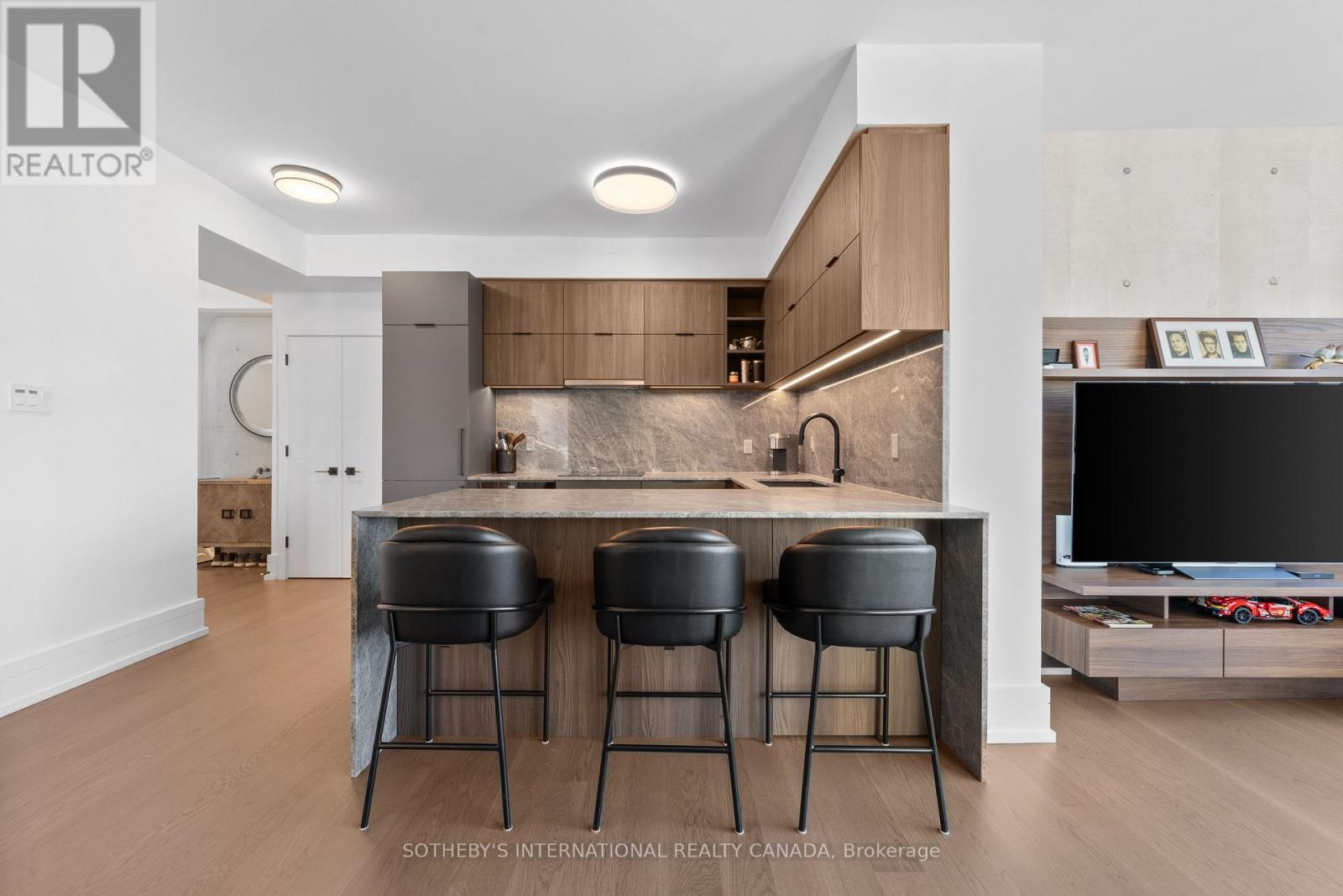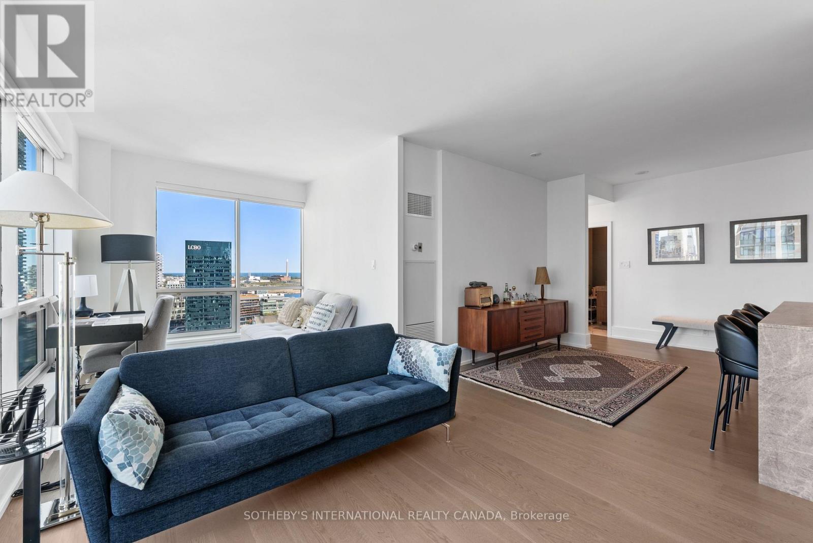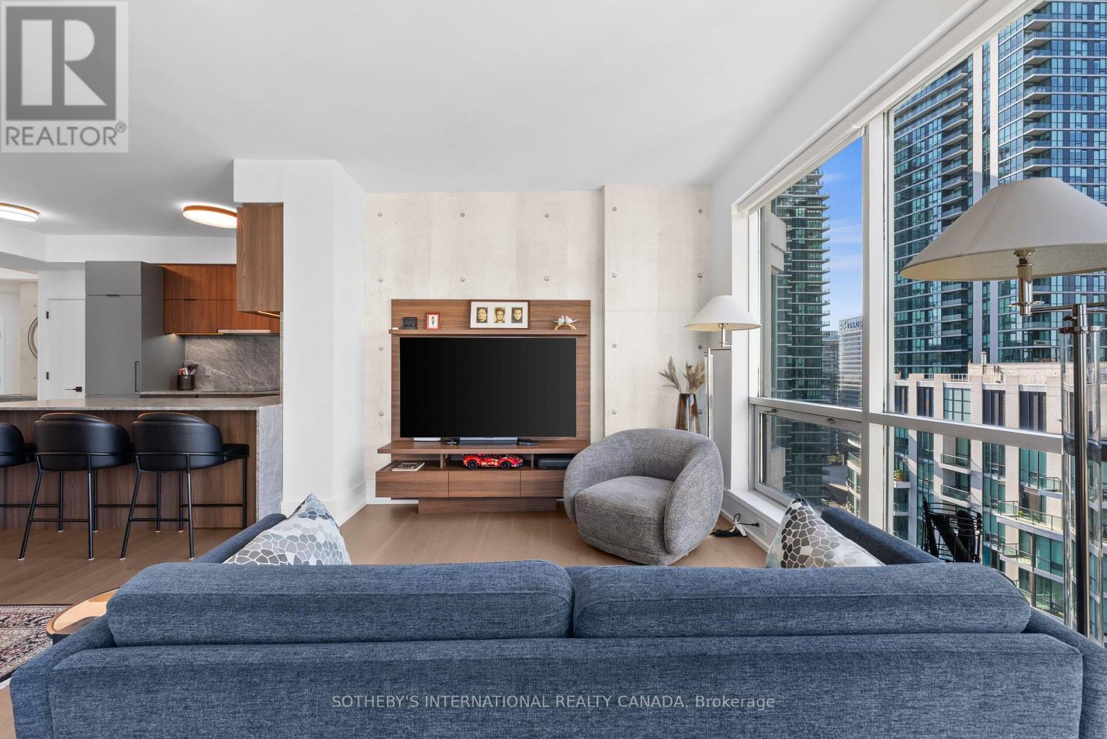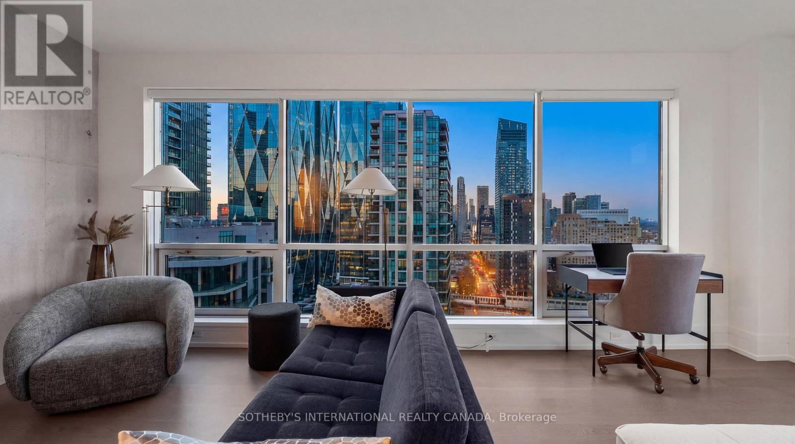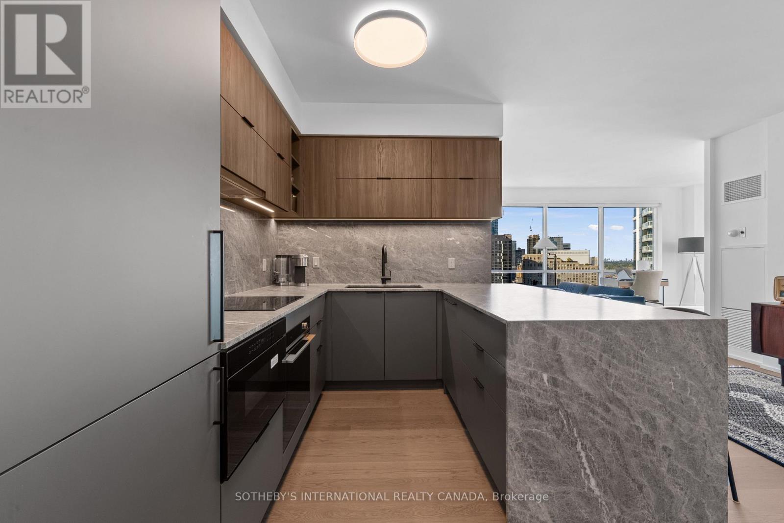 Experience unparalleled luxury in this stunning, recently renovated sub-penthouse corner unit at Toronto's prestigious Residences of the World Trade Centre. This is more than a condo; it's a lifestyle statement. Step into a sophisticated interior boasting Manhattan-inspired design and breathtaking panoramic city views through expansive floor-to-ceiling windows. Meticulously renovated with designer finishes, this magazine-worthy suite features a gourmet kitchen with custom cabinetry, integrated Fisher & Paykel appliances (Fridge, Oven, Microwave, Dishwasher), a Blomberg stacked Washer/Dryer, leather-finish countertops, a polished backsplash, and a striking island waterfall. The spa-like bathroom offers matching vanity and top from the kitchen units, ceramic tile flooring, and floor-to-ceiling tiling. Elegant details abound, including a designer lighting package, exquisite custom trim (8"), wood window sills, and custom doors. Smart features enhance convenience with a built-in closet and TV centre, auto blinds, and a release camera. Ample storage, an oversized parking spot, and a dedicated storage locker ensure a clutter-free lifestyle. Indulge in resort-style amenities, including indoor/outdoor pools, a golf simulator, a state-of-the-art gym, guest suites, multiple party rooms, billiards, a carwash, visitor parking, squash/basketball courts, a library, games room, board room, and theatre. Enjoy ultimate convenience with access to transit, Union Station, PATH, Scotiabank Arena, Rogers Centre, Centre Island, Sugar Beach, Distillery District, and St. Lawrence Market. This is your chance to own an extraordinary sub-penthouse in one of Toronto's most coveted locations. Schedule your private viewing today! (id:4555)