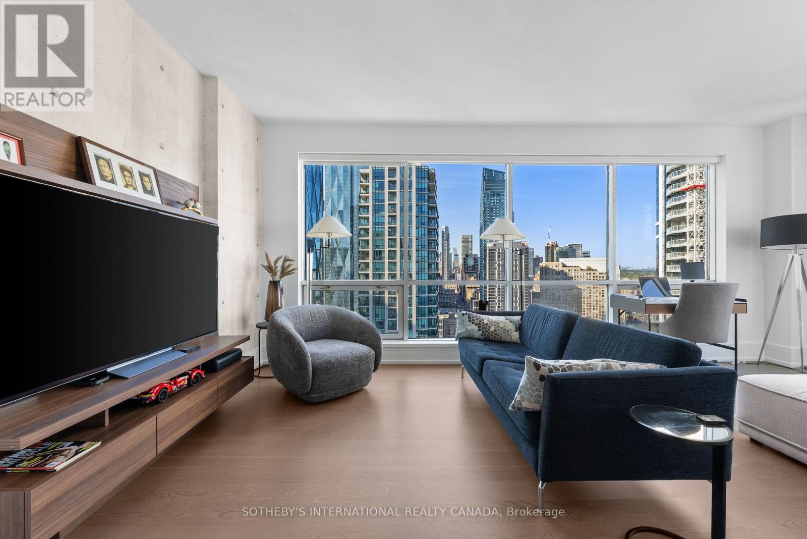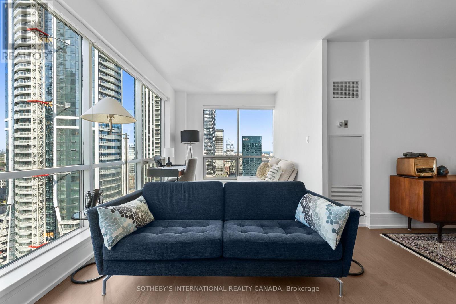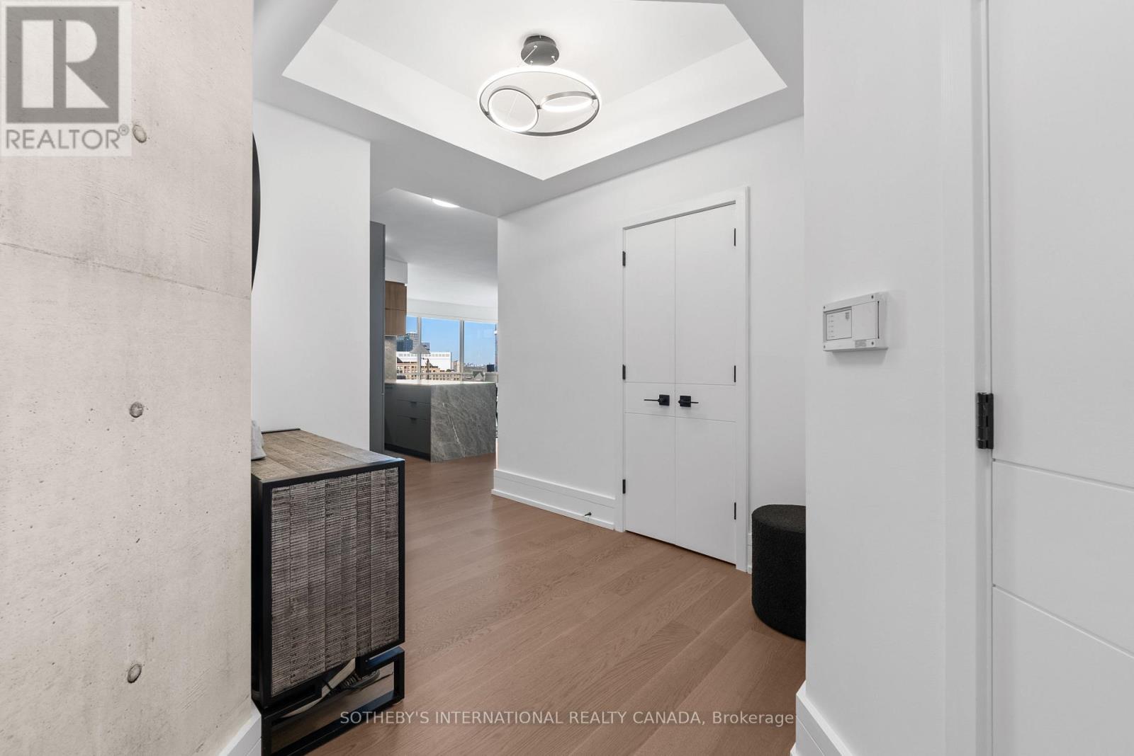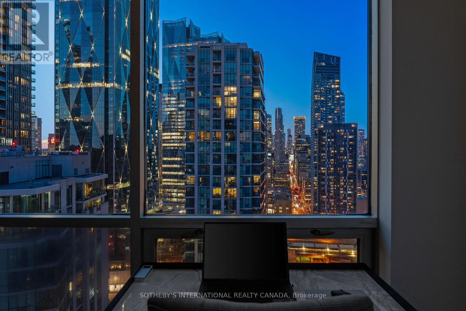 Experience unparalleled luxury in this stunning, recently renovated sub-penthouse corner unit at Toronto's prestigious Residences of the World Trade Centre. This is more than a condo; it's a lifestyle statement. Step into a sophisticated interior boasting Manhattan-inspired design and breathtaking panoramic city views through expansive floor-to-ceiling windows. Meticulously renovated with designer finishes, this magazine-worthy suite features a gourmet kitchen with custom cabinetry, integrated Fisher & Paykel appliances (Fridge, Oven, Microwave, Dishwasher), a Blomberg stacked Washer/Dryer, leather-finish countertops, a polished backsplash, and a striking island waterfall. The spa-like bathroom offers matching vanity and top from the kitchen units, ceramic tile flooring, and floor-to-ceiling tiling. Elegant details abound, including a designer lighting package, exquisite custom trim (8"), wood window sills, and custom doors. Smart features enhance convenience with a built-in closet and TV centre, auto blinds, and a release camera. Ample storage, an oversized parking spot, and a dedicated storage locker ensure a clutter-free lifestyle. Indulge in resort-style amenities, including indoor/outdoor pools, a golf simulator, a state-of-the-art gym, guest suites, multiple party rooms, billiards, a carwash, visitor parking, squash/basketball courts, a library, games room, board room, and theatre. Enjoy ultimate convenience with access to transit, Union Station, PATH, Scotiabank Arena, Rogers Centre, Centre Island, Sugar Beach, Distillery District, and St. Lawrence Market. This is your chance to own an extraordinary sub-penthouse in one of Toronto's most coveted locations. Schedule your private viewing today! (id:4555)