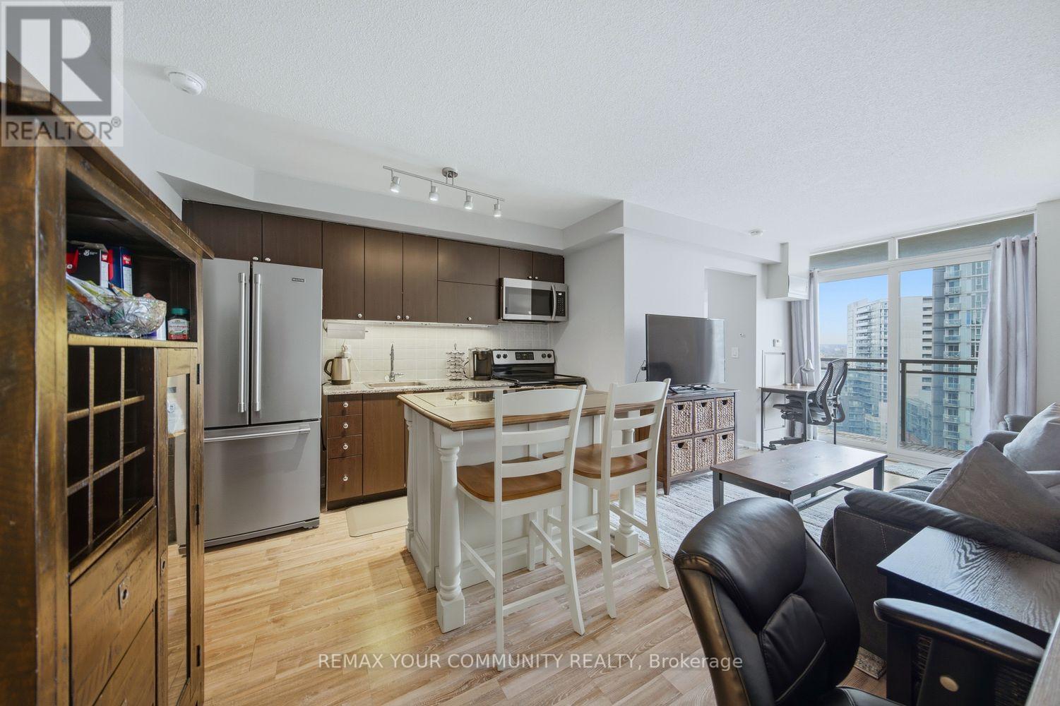 Welcome to The Bridge Condos, where the best of King West and Liberty Village collide. This bright and functional 2-bedroom, 1-bath suite offers a highly functional split-bedroom layout and breathtaking views of the CN Tower and Toronto skyline. The open-concept living and dining area is filled with natural light and has more than enough space for a desk! The kitchen features stainless steel appliances and ample storage. Both bedrooms are generously sized and share a convenient semi-ensuite 4-piece bathroom, creating a smart and functional layout for comfortable living. The best value for a 2-bedroom in the City of Toronto, this is an incredible opportunity to own a suite with spectacular views in one of the city's most vibrant and connected neighbourhoods. The unit includes 1 parking space and 1 locker. Residents enjoy excellent amenities including a gym & indoor pool. Just steps to shops, restaurants, and cafés. Grocery and TTC at your doorstep + the future King-Liberty SmartTrack GO Station. Easy access to the Gardiner Expressway makes commuting effortless. Sellers upgraded A/C in the unit to have vents in both bedrooms. (id:4555)