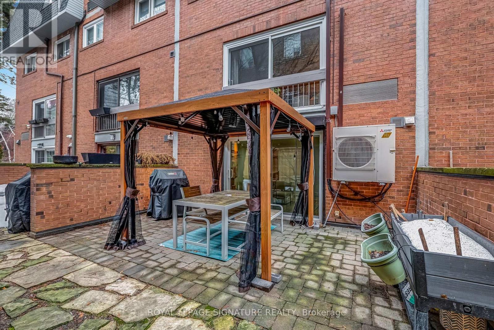 Some homes fit into the city. Others become part of its story. Welcome to the Annex. Tucked behind an understated brick façade, this beautifully renovated townhouse unfolds across four thoughtfully designed levels and more than 1,800 sq ft of living space. With 3 bedrooms and 3 washrooms, the layout strikes that rare balance: generous enough to grow into, yet effortless to live in every day. The main floor was designed for gathering. A modern kitchen with generous island and built-in banquette anchors the open-concept living and dining areas, while sliding doors invite in fresh air and leafy views. Upstairs, the top level becomes a private retreat. The spacious primary suite features a beautifully renovated ensuite, while a dedicated skylit office offers a bright work-from-home space. Two additional bedrooms and a second renovated washroom provide flexibility for family or guests. Downstairs, a cinematic family room with fireplace, projector and blackout screen creates a true movie-night experience. Walk out to an exclusive patio with screened-in gazebo - a private outdoor retreat made for summer barbecues and evening cocktails. Only ten homes share this secure boutique enclave, known for its warm community. Underground parking and a large storage locker make daily life wonderfully uncomplicated. Set on a quiet one-way street - noticeably calmer than nearby Bedford or St. George - yet steps to the subway, U of T, parks, groceries, restaurants, galleries and Yorkville's boutiques. In short: city living, written exactly the way it should be. (id:4555)
