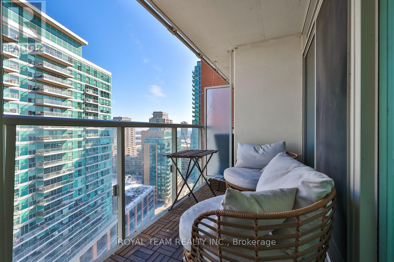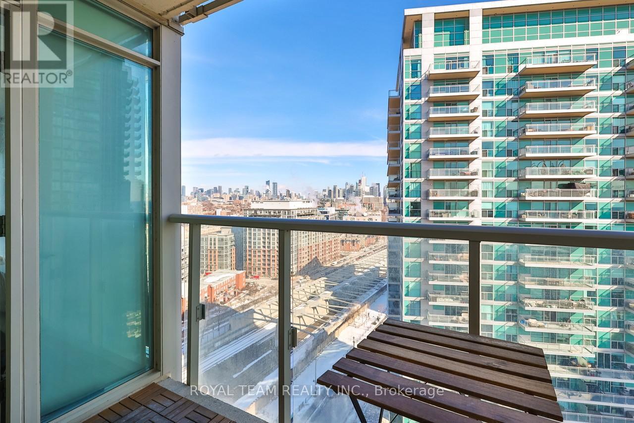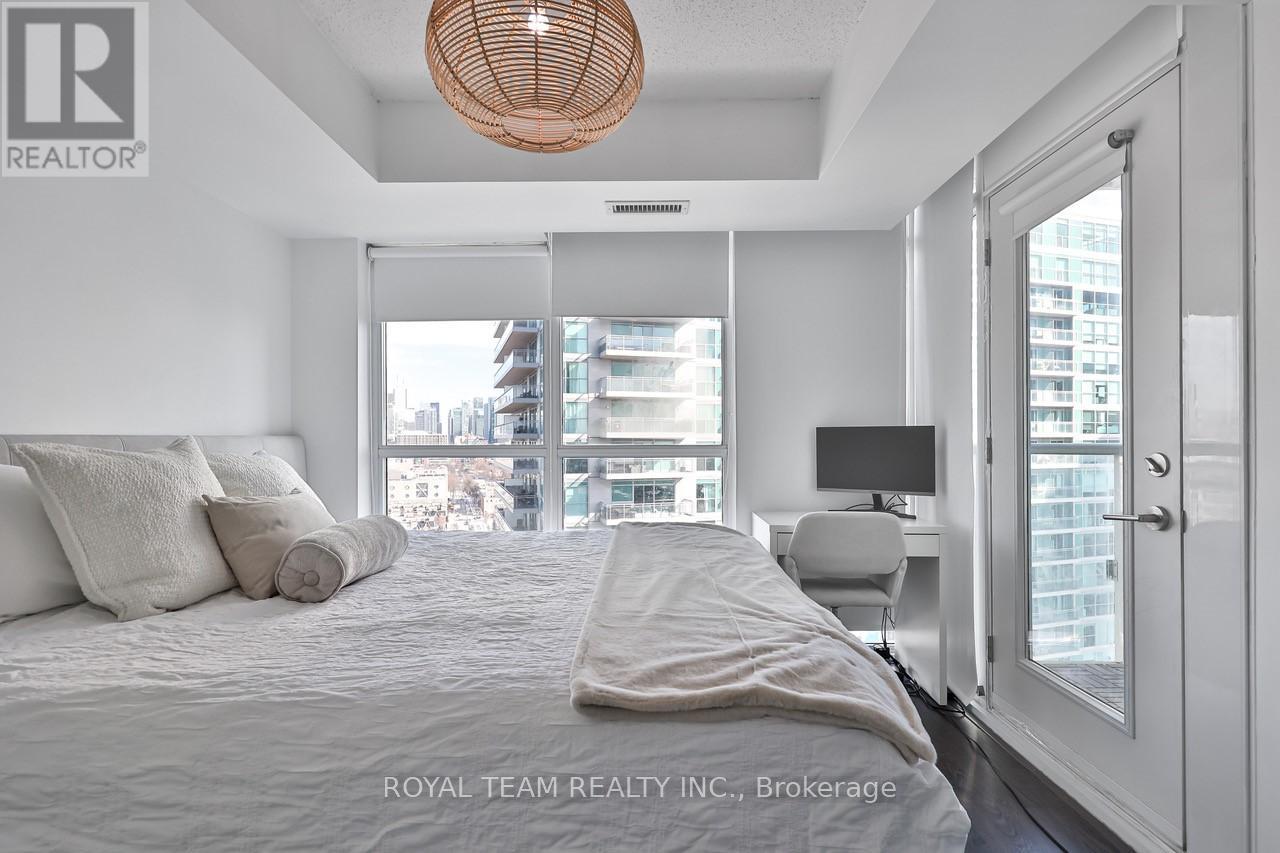 Welcome to stylish urban living in the heart of Liberty Village, one of Toronto's most vibrant and sought after neighbourhoods! Floor-to ceiling windows fill this bright, eastern-facing 1+den suite with natural light, creating a warm and inviting atmosphere. The versatile layout features a den perfect for a home office or second bedroom, complimented by two full bathrooms for comfort and functionality. Thoughtful upgrades include custom blinds installed in July 2024 and a brand-new furnace installed in December 2025, with a one year warranty. Adding to the convenience is a large private locker located right beside your parking spot. Just steps from Metro grocery store, trendy cafes, restaurants, dog parks, public transit, and more, this is your chance to enjoy modern living in an unbeatable location. (id:4555)