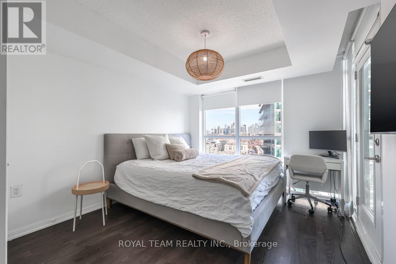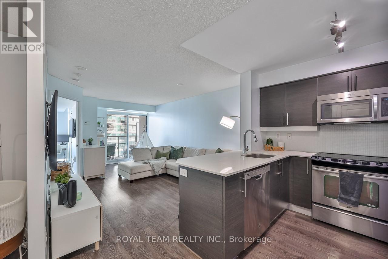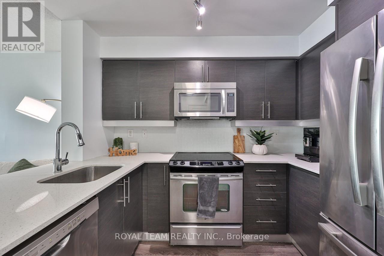 Welcome to stylish urban living in the heart of Liberty Village, one of Toronto's most vibrant and sought after neighbourhoods! Floor-to ceiling windows fill this bright, eastern-facing 1+den suite with natural light, creating a warm and inviting atmosphere. The versatile layout features a den perfect for a home office or second bedroom, complimented by two full bathrooms for comfort and functionality. Thoughtful upgrades include custom blinds installed in July 2024 and a brand-new furnace installed in December 2025, with a one year warranty. Adding to the convenience is a large private locker located right beside your parking spot. Just steps from Metro grocery store, trendy cafes, restaurants, dog parks, public transit, and more, this is your chance to enjoy modern living in an unbeatable location. (id:4555)