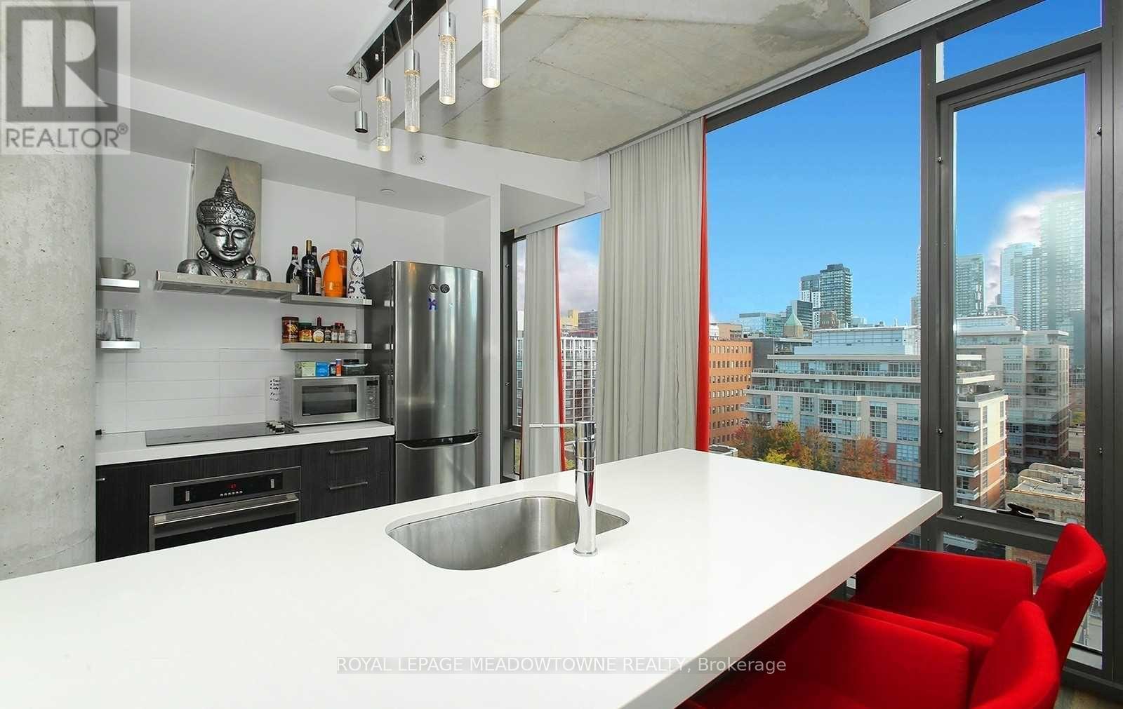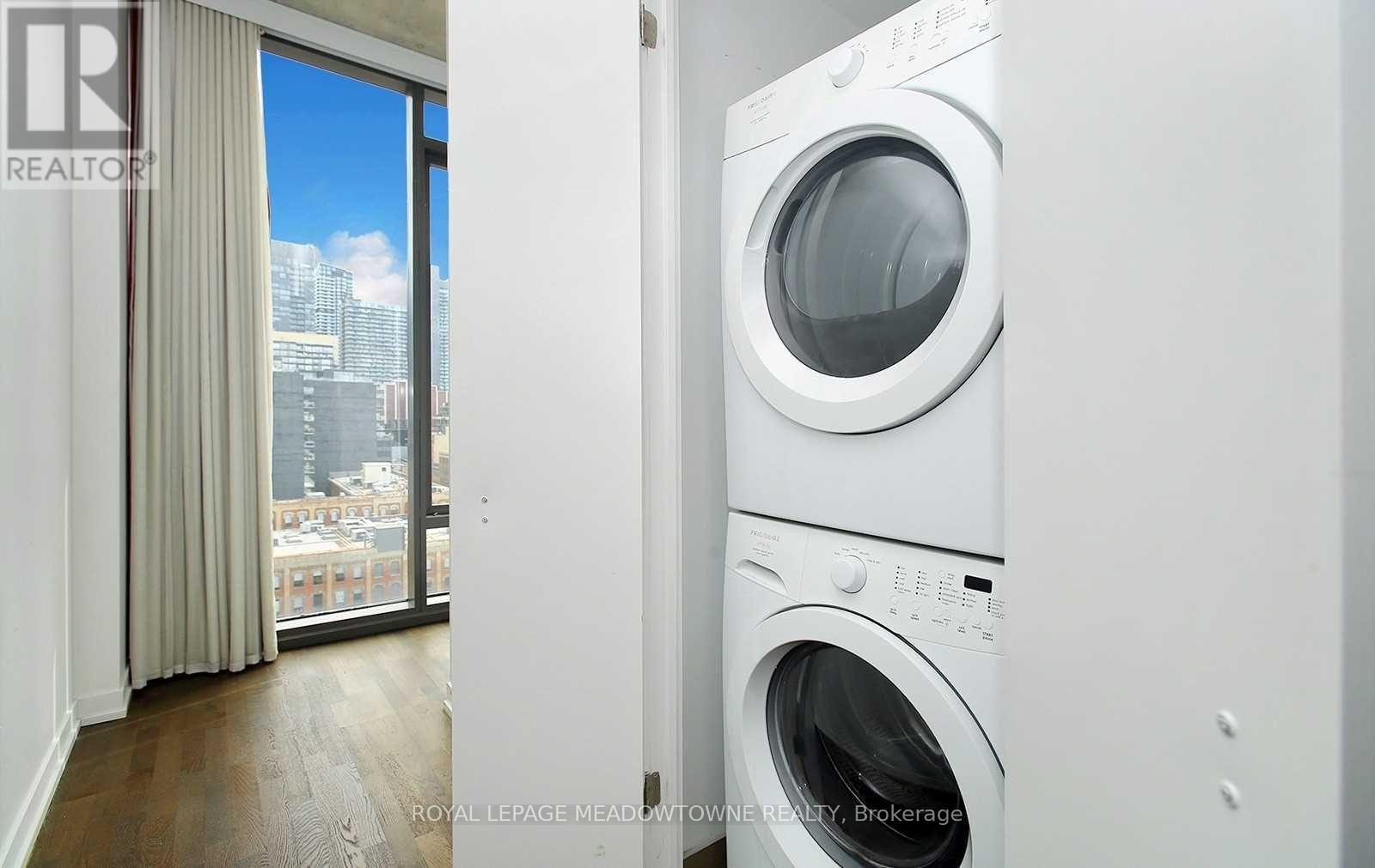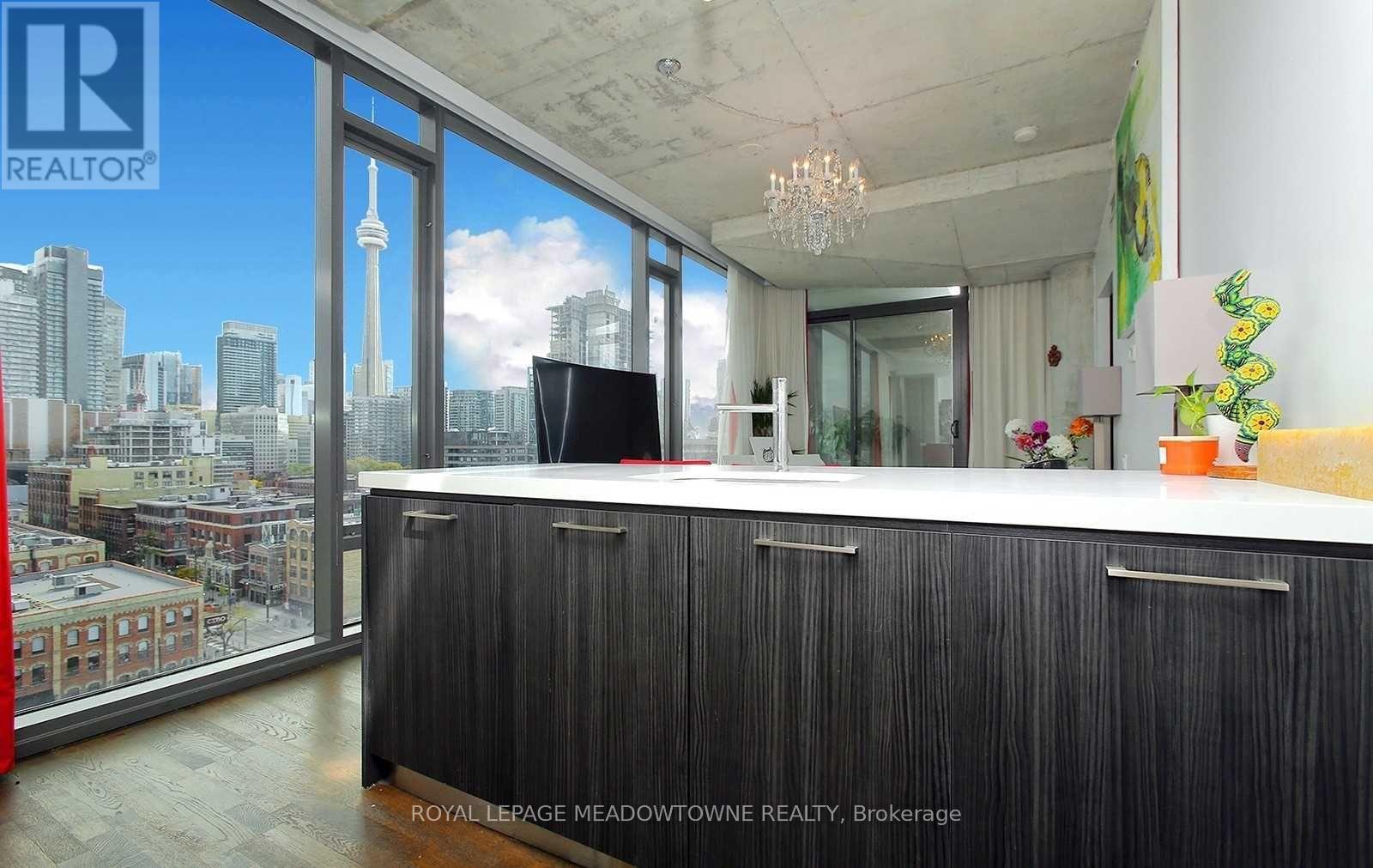Experience luxury living in this fully furnished 2-bedroom sub-penthouse corner suite at Fashion House, located in vibrant King St West. Enjoy breathtaking south-facing views of the CN Tower &Toronto's skyline from every window, W/direct views of the rooftop pool right in front of your spacious balcony. This bright & airy unit features an open-concept, split-layout design for privacy& comfort W/Floor-to-ceiling windows throughout, including the primary bedroom. The modern kitchen offers sleek stone countertops, stainless steel appliances, & a chic marble backsplash, while the recently renovated ensuite boasts all-marble finishes. Additional highlights include hardwood floors, exposed concrete ceilings, and a gas line for BBQs on the balcony, which includes an enclosed area for added versatility. Situated in one of Toronto's top neighborhoods with a 98 walk score, you're just steps from trendy restaurants, nightlife, and entertainment. This is urban living at its finest! (id:4555)